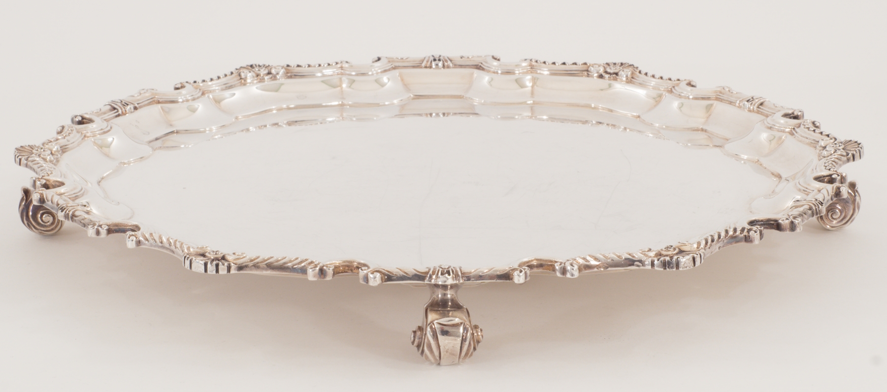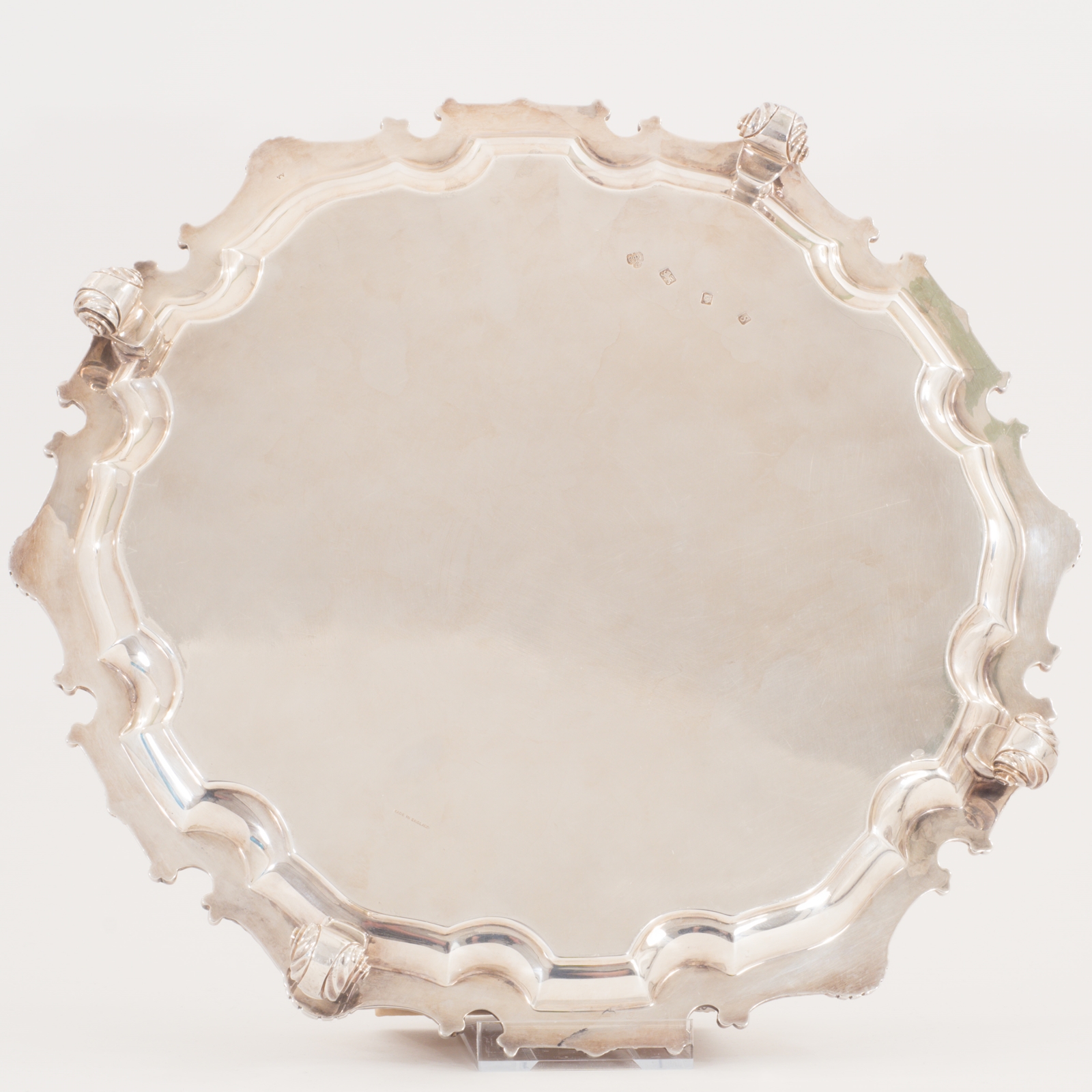 Englischer schwerer Salver auf vier Füßen in 925 Sterling Silber