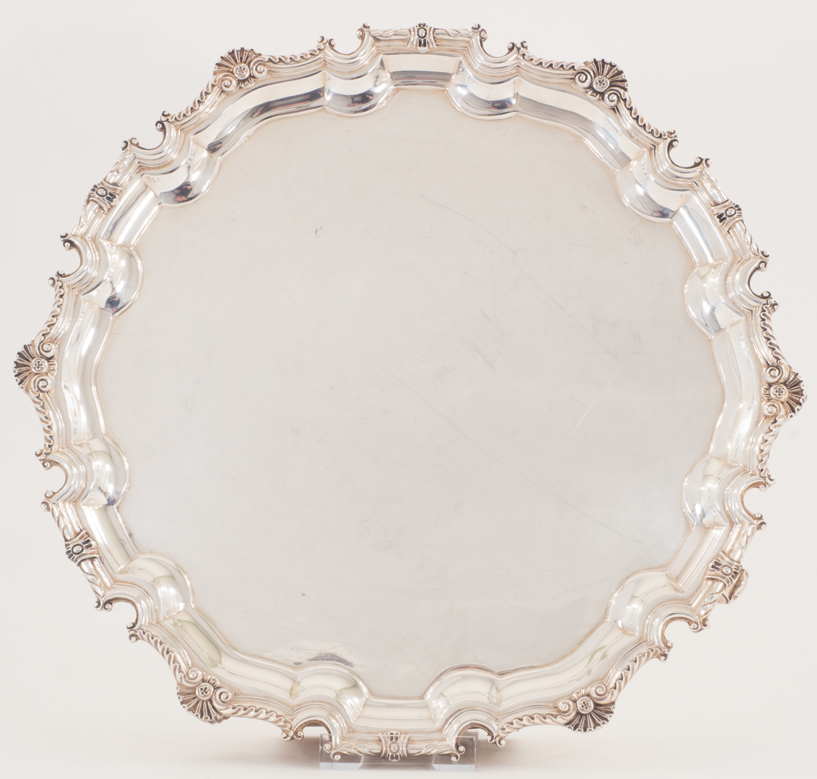Ein englischer schwerer Salver auf vier Füßen in 925 Sterling Silber, London 1973