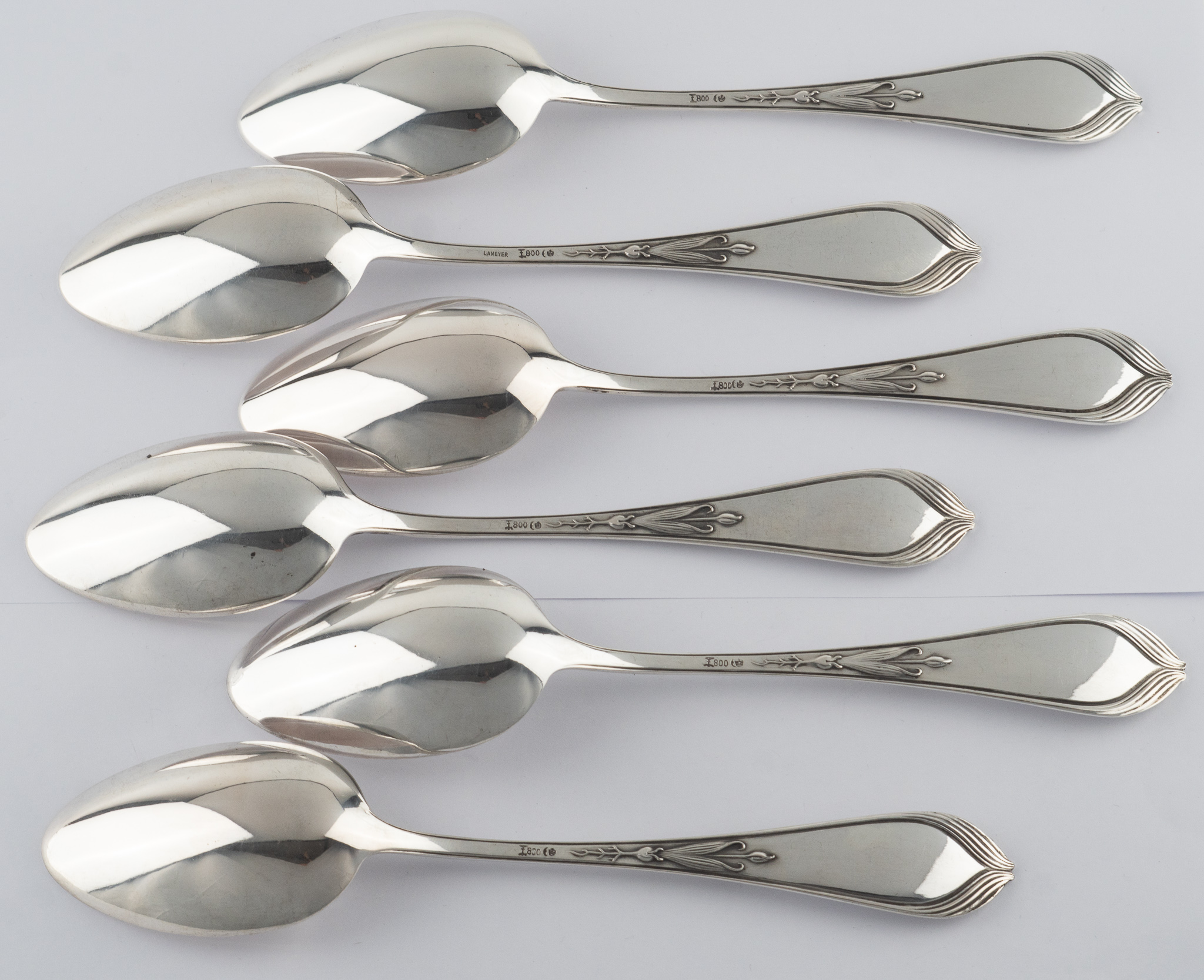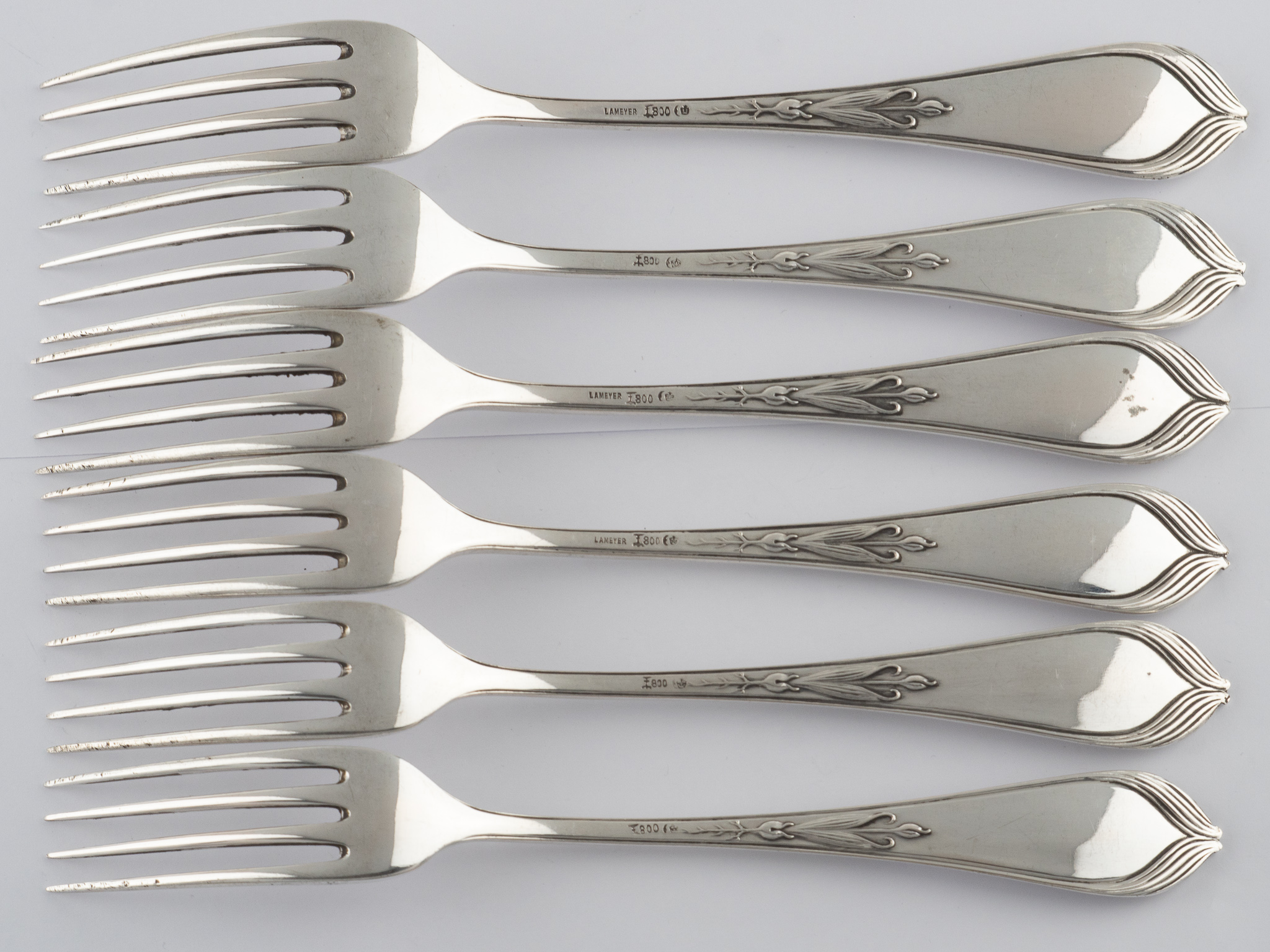 Ein 25-teiliges Silberbesteck für 6 Personen in 800er Silber im Dekor Bremer Lilie von Koch und Bergfeld