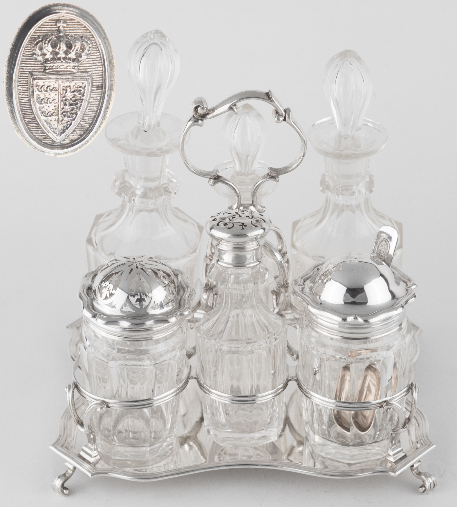 Eine elegante 7-teilige Menage in Silber aus dem herzoglichen Haus Württemberg