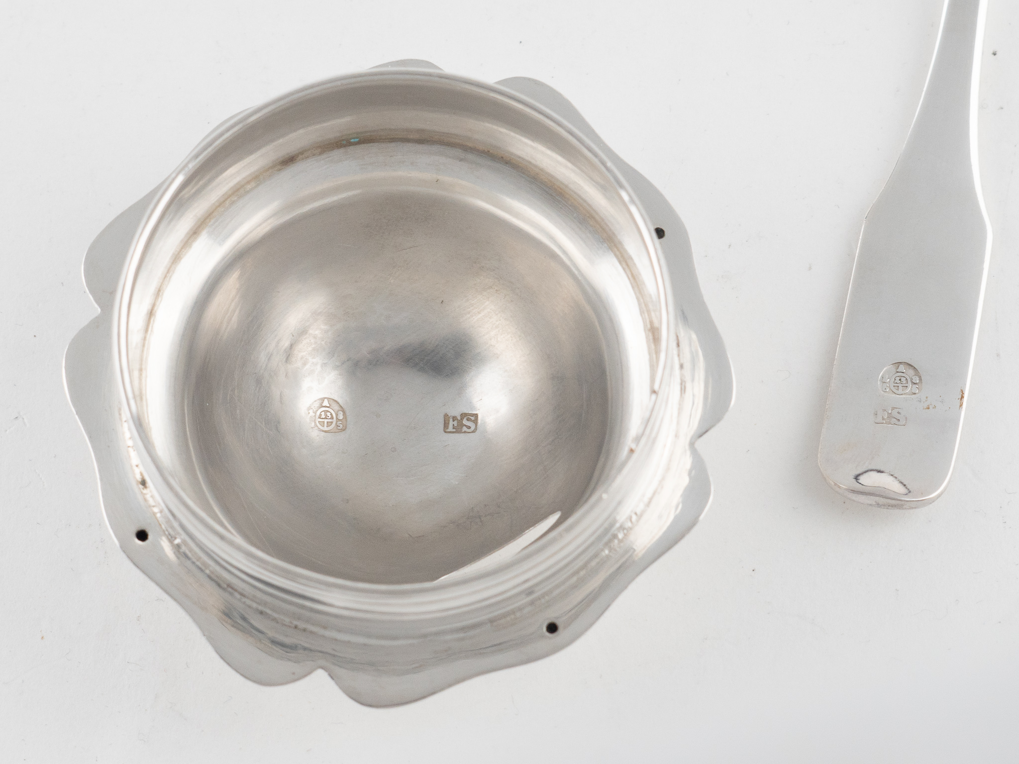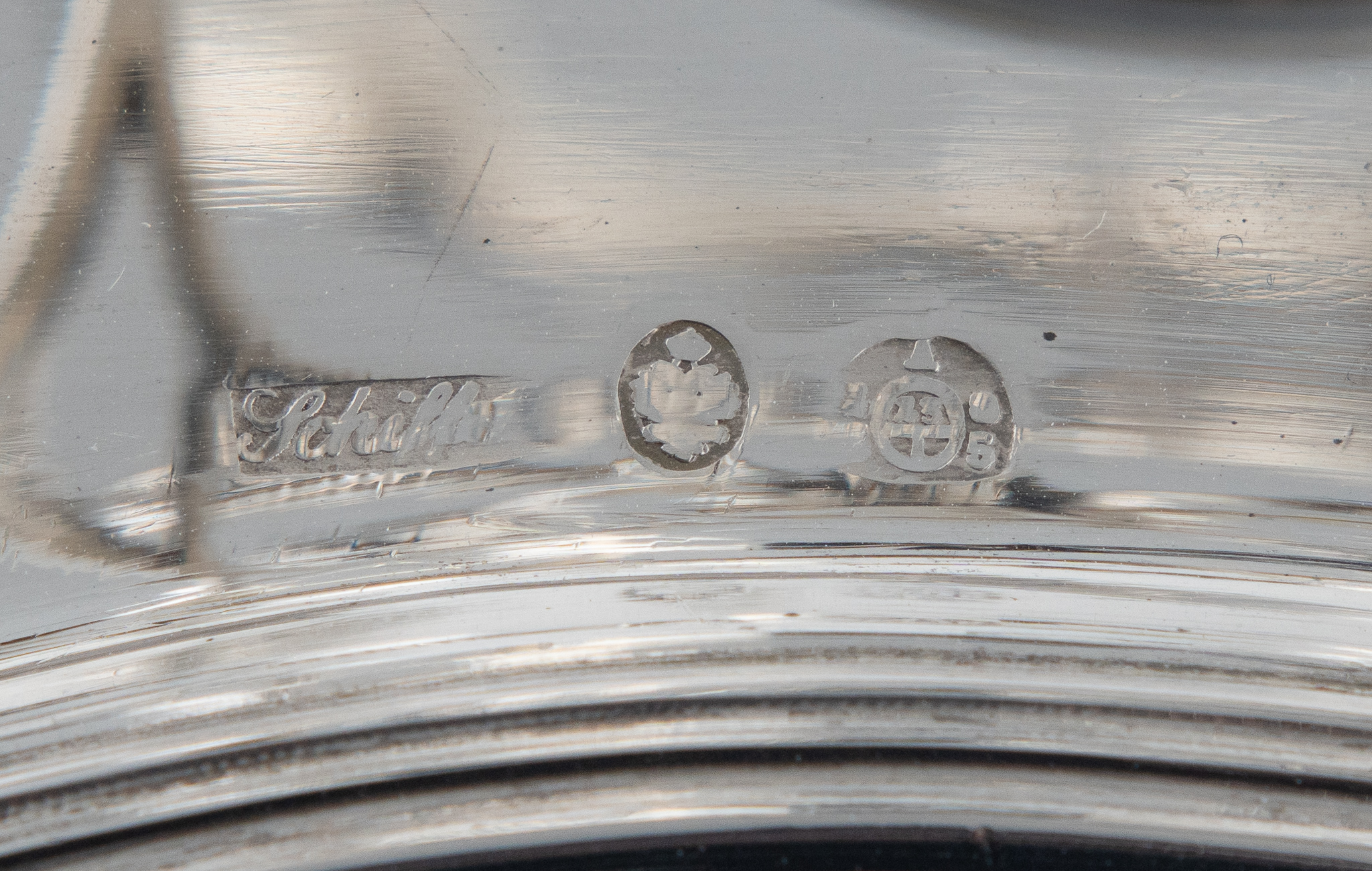Österreichische Radmarke mit 13 (für 13-lötiges Silber) und Datierung 1855. Meistermarke FS bzw. „Schiffer“ für Franz Schiffer Wien.