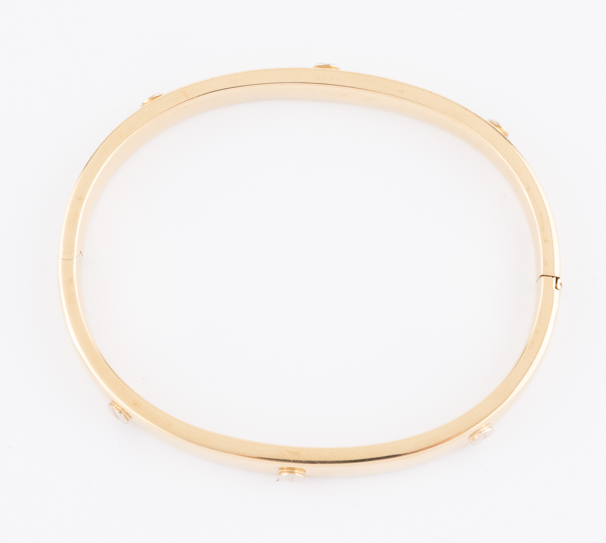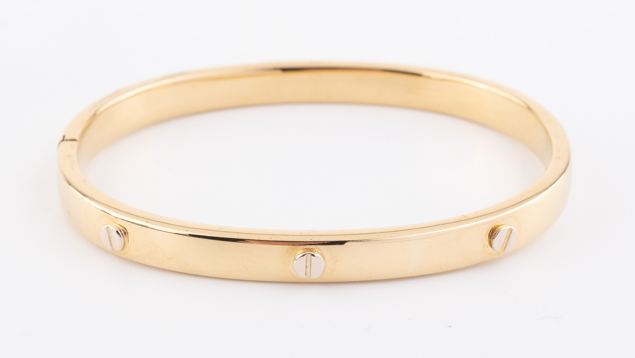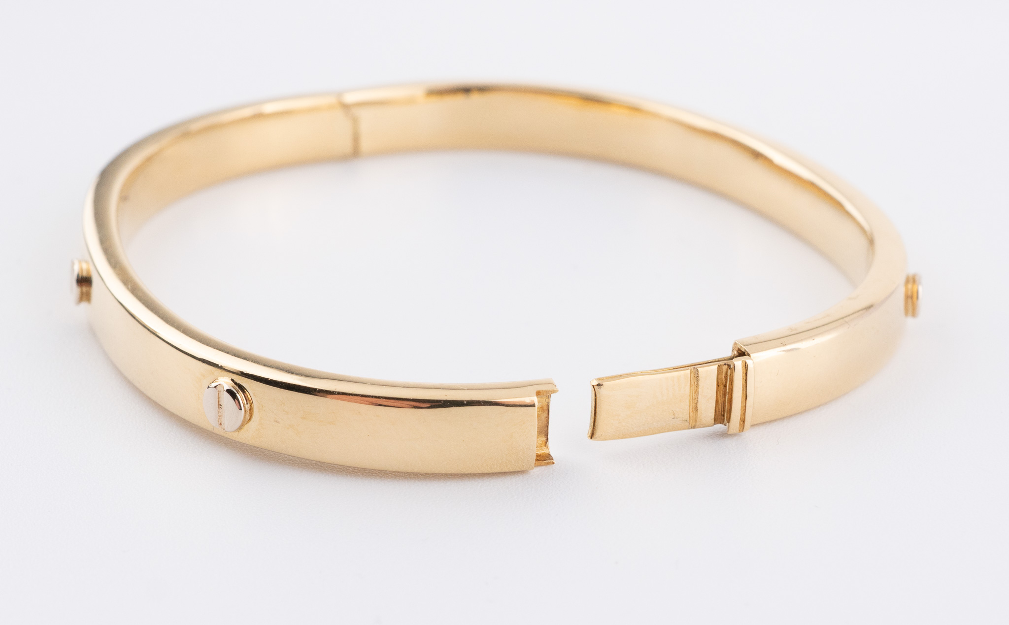 Ein Armreif in 18 Karat (750/1000) Gelbgold gearbeitet in der Art von Cartier „love“ Armreif.
