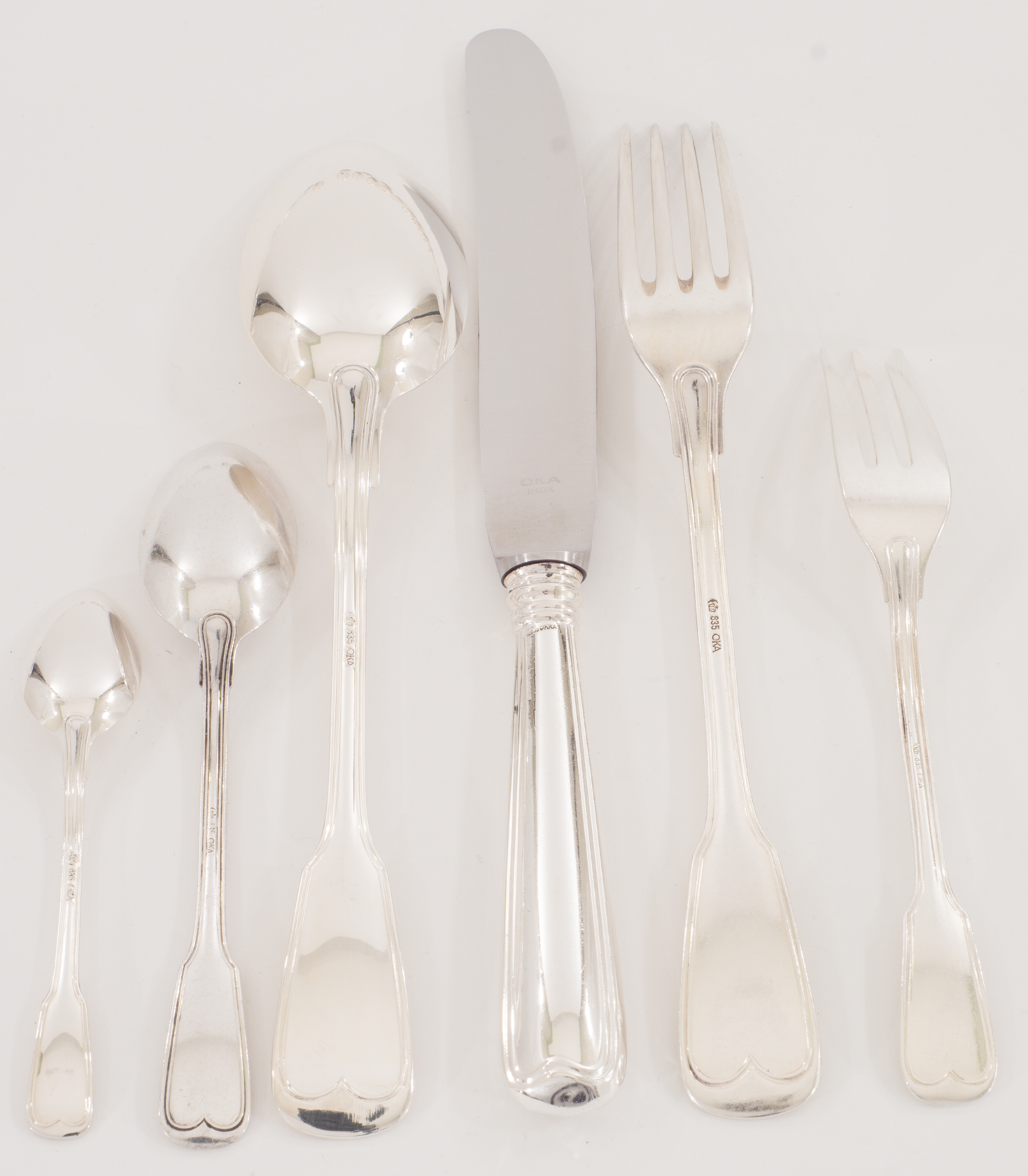 Besteck im Dekor "Augsburger Faden" in 835'er Silber für 12 Personen