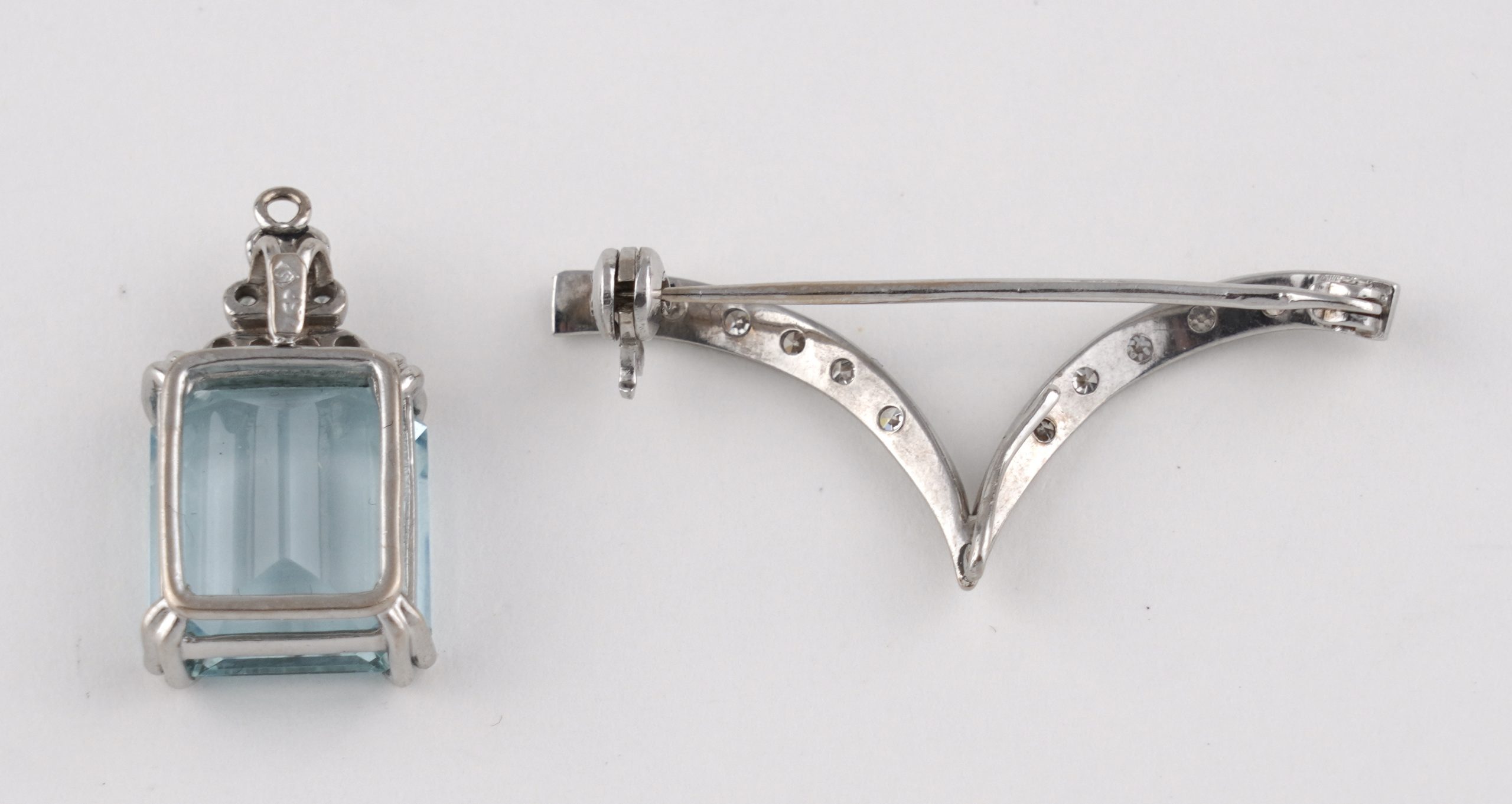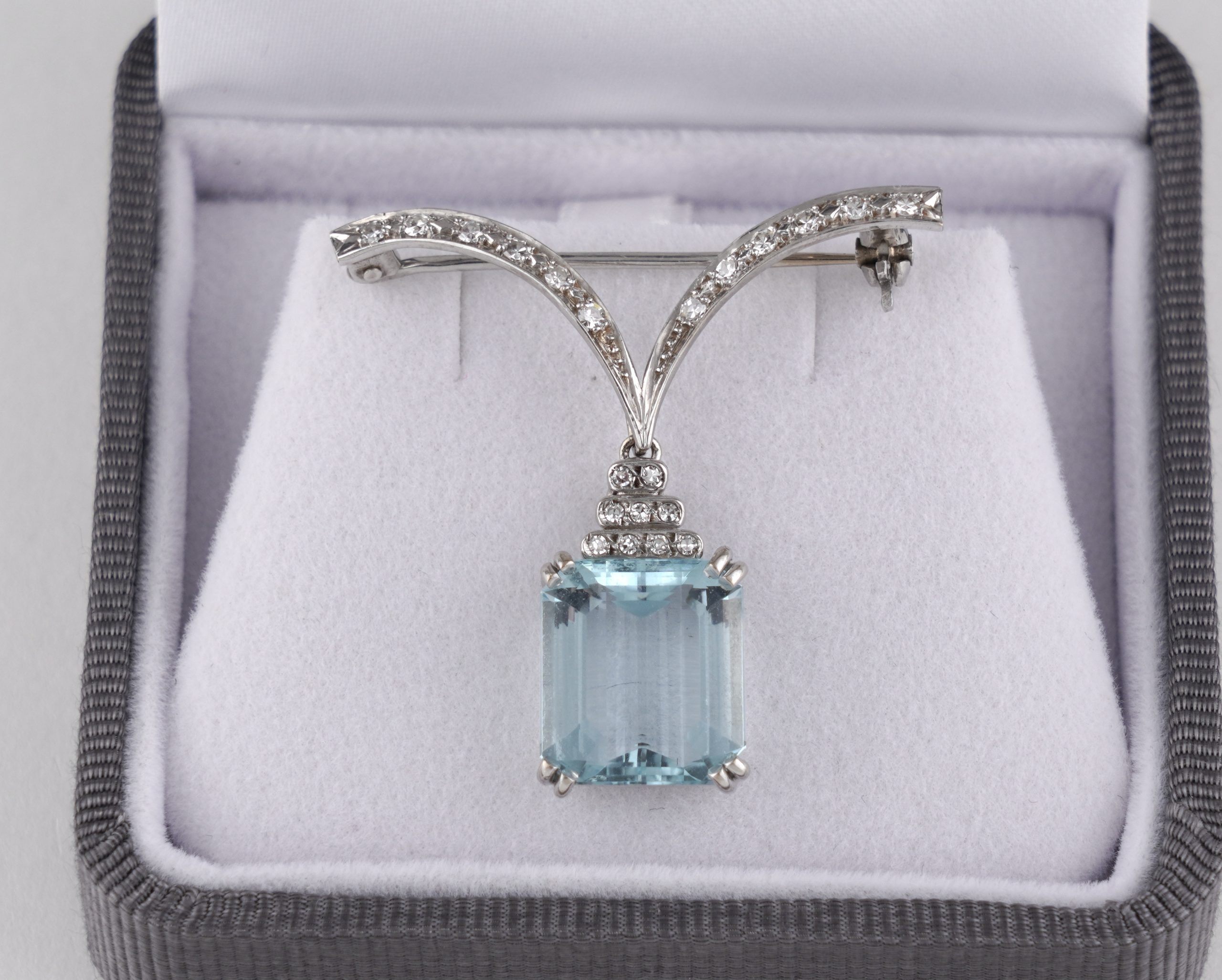 Die Broschierung ist abnehmbar und der Aquamarin seperat als Anhänger verwendbar.