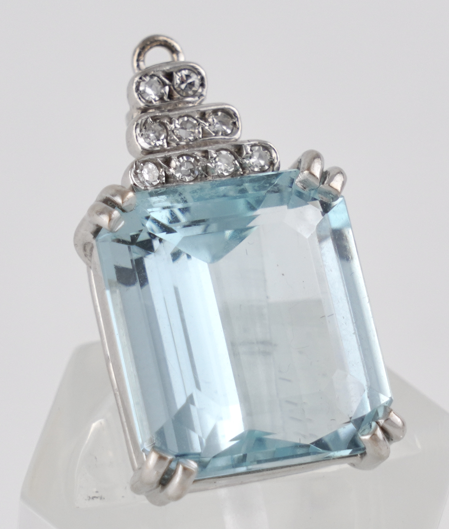Eine aparte Brosche/Anhänger in 18 Kt Weißgold mit einem Aquamarin von ca. 7 ct.
