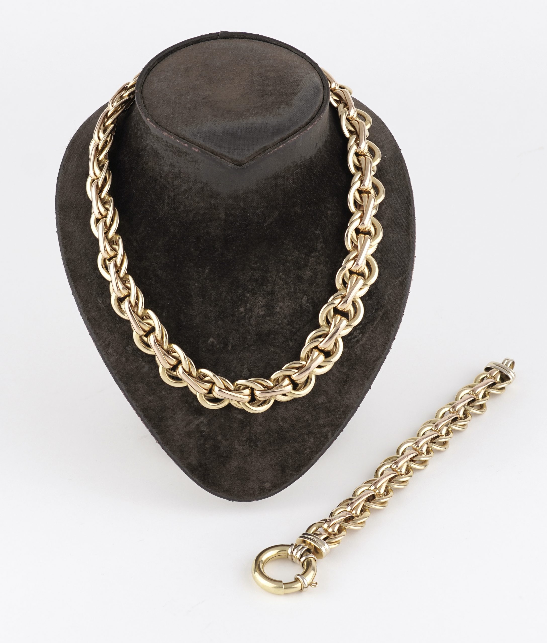 Ein Collier und ein Armband in 18 Karat Gelb- und Roségold