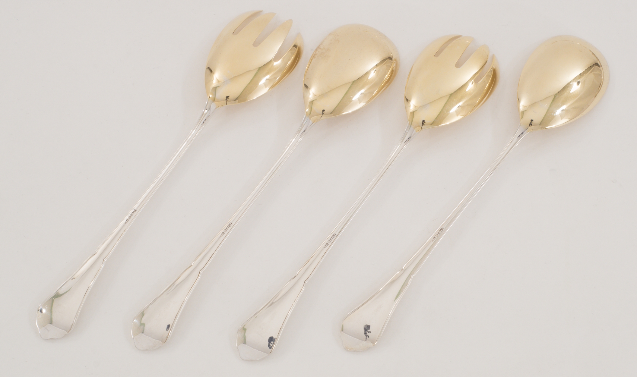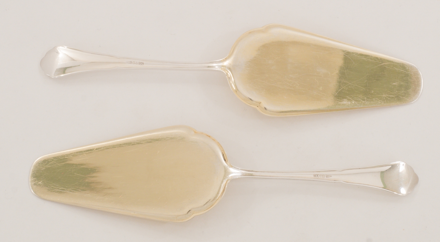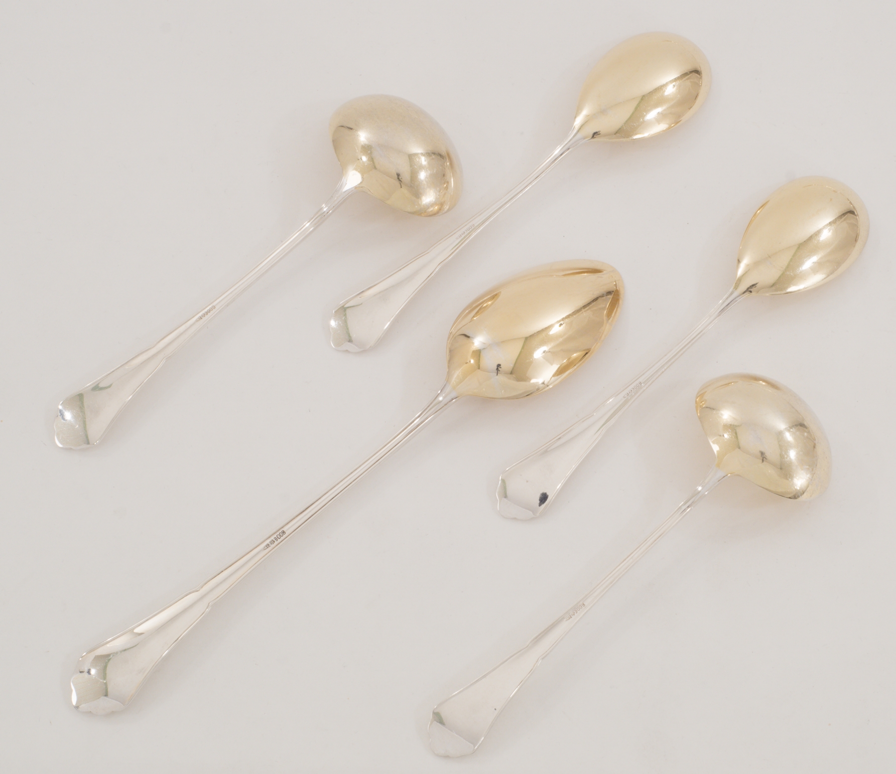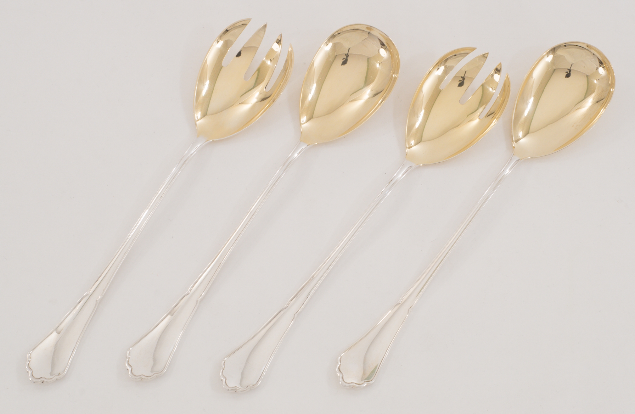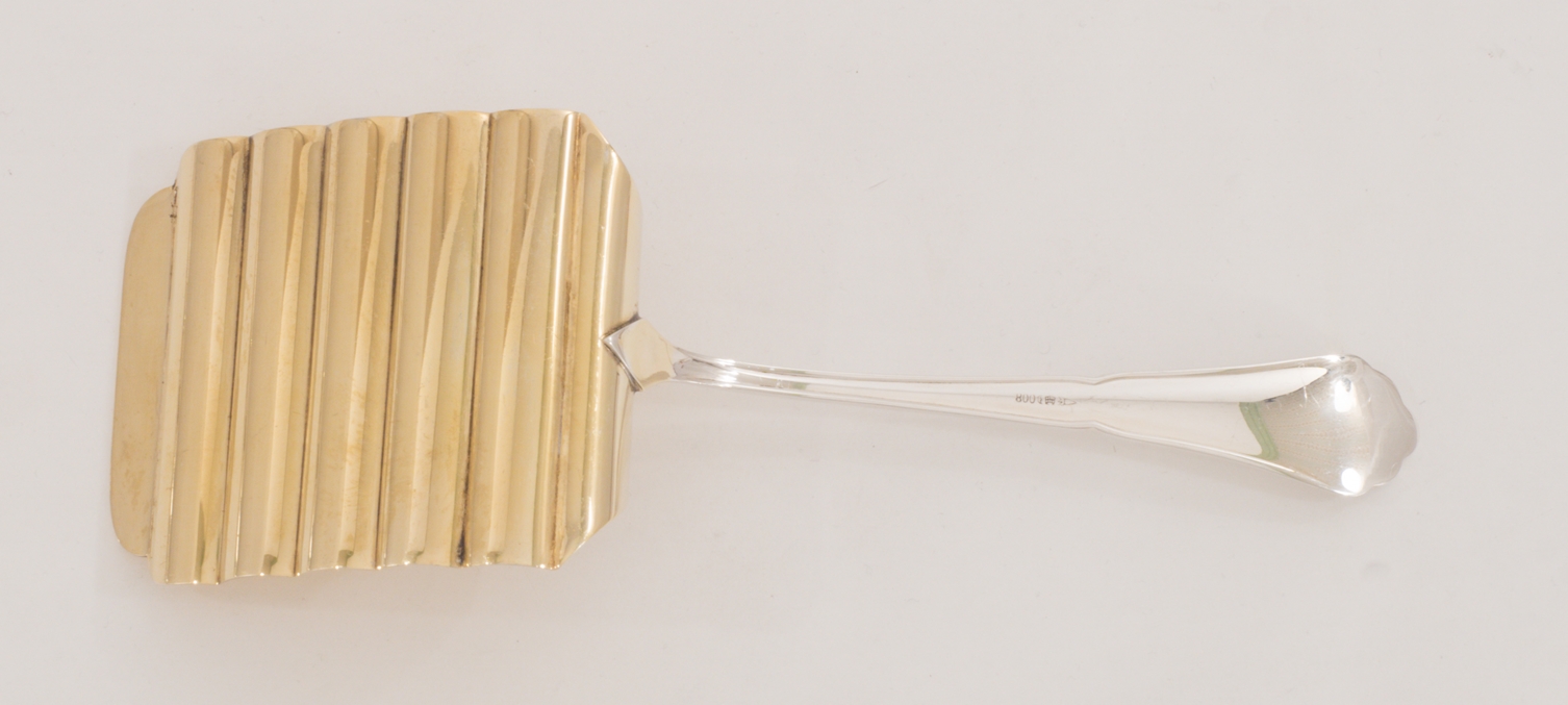 Ein extensives 158-teiliges Silberbesteck für 12 Personen gearbeitet in 800 Silber, Modell Chippendale von den Bremer Silberwarenfabriken. Teilweise vergoldete Laffen und Zinken.