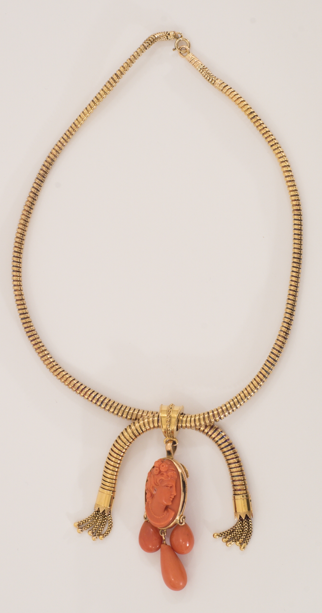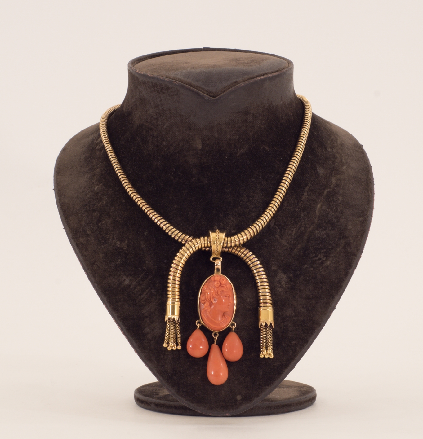 Ein antikes Korallencollier gearbeitet in 14 Karat Gelbgold