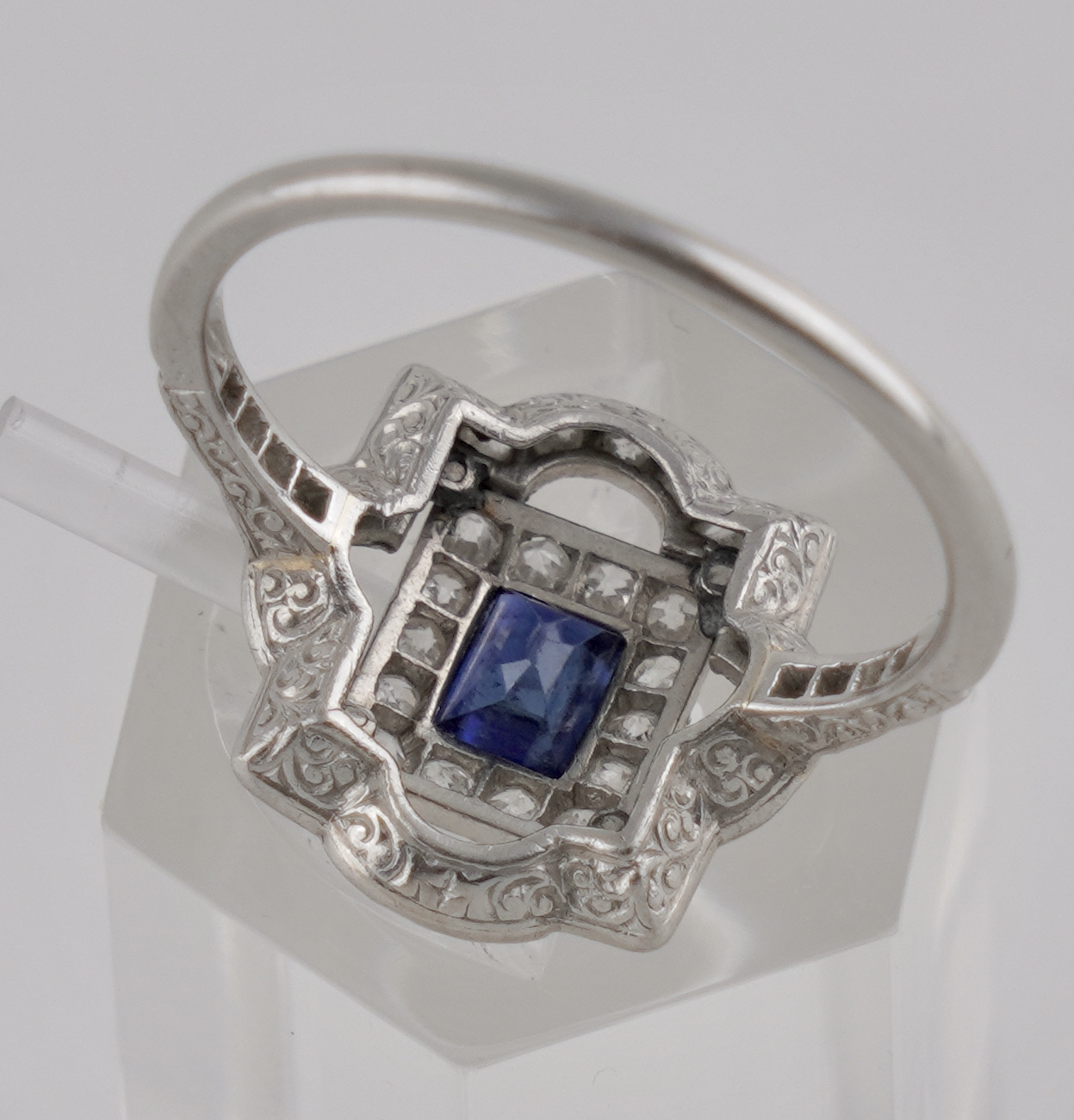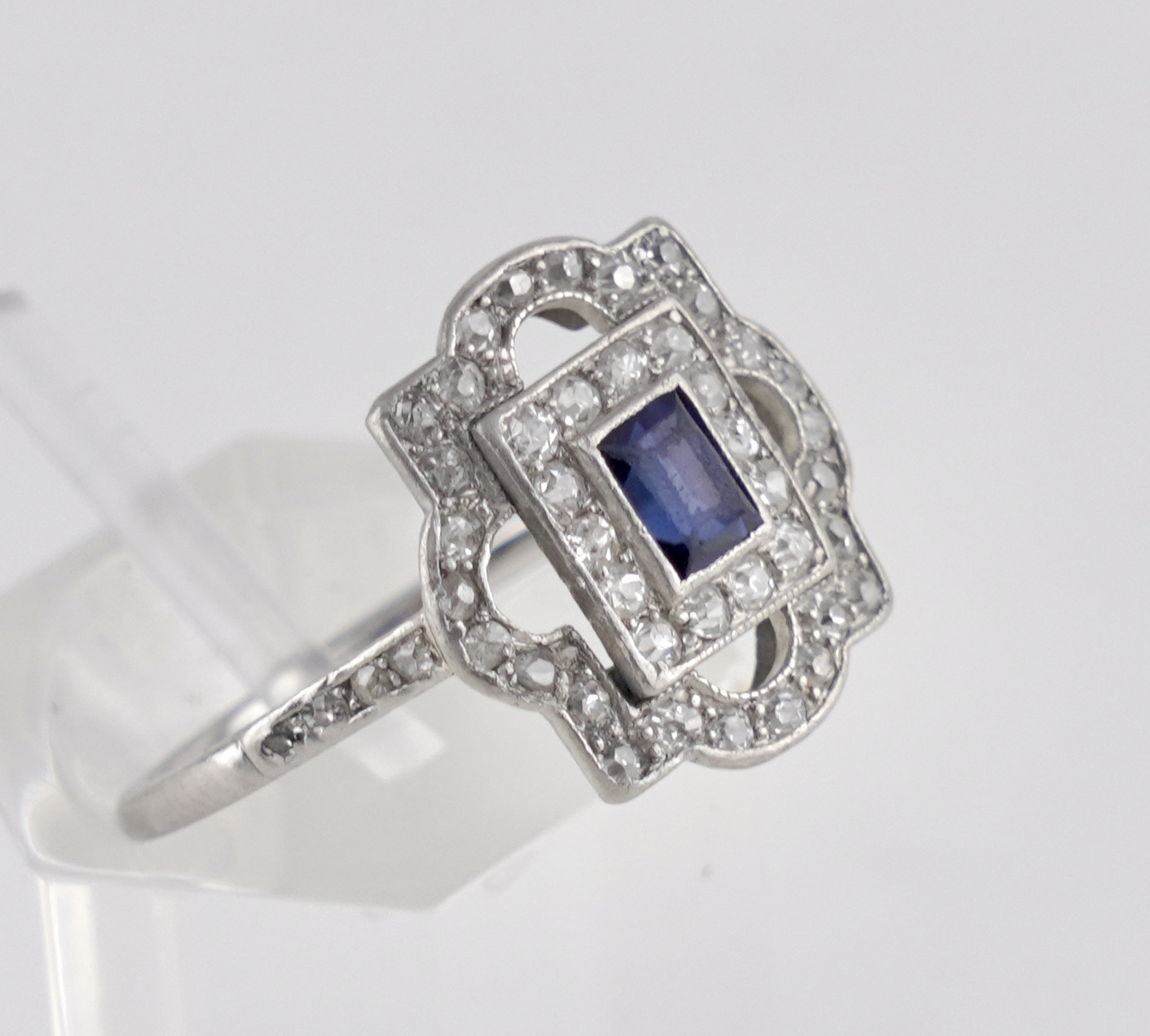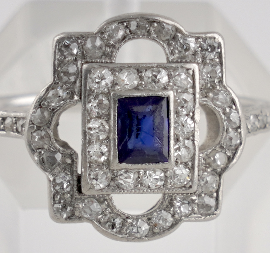Ein Art déco Ring in PLatin mit Saphir und Diamanten wohl deutsch um 1920/25