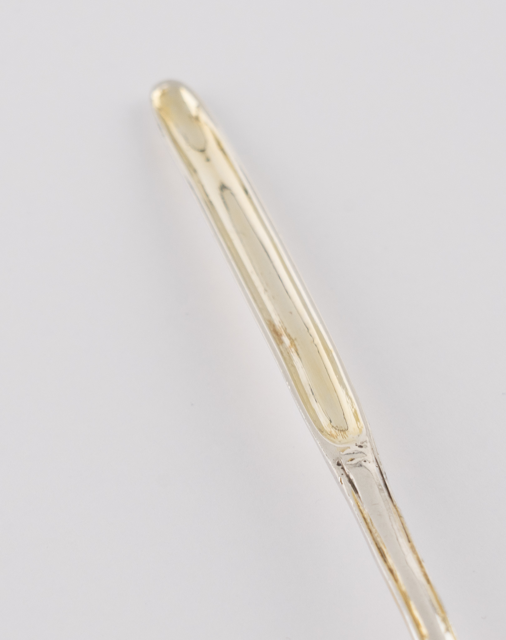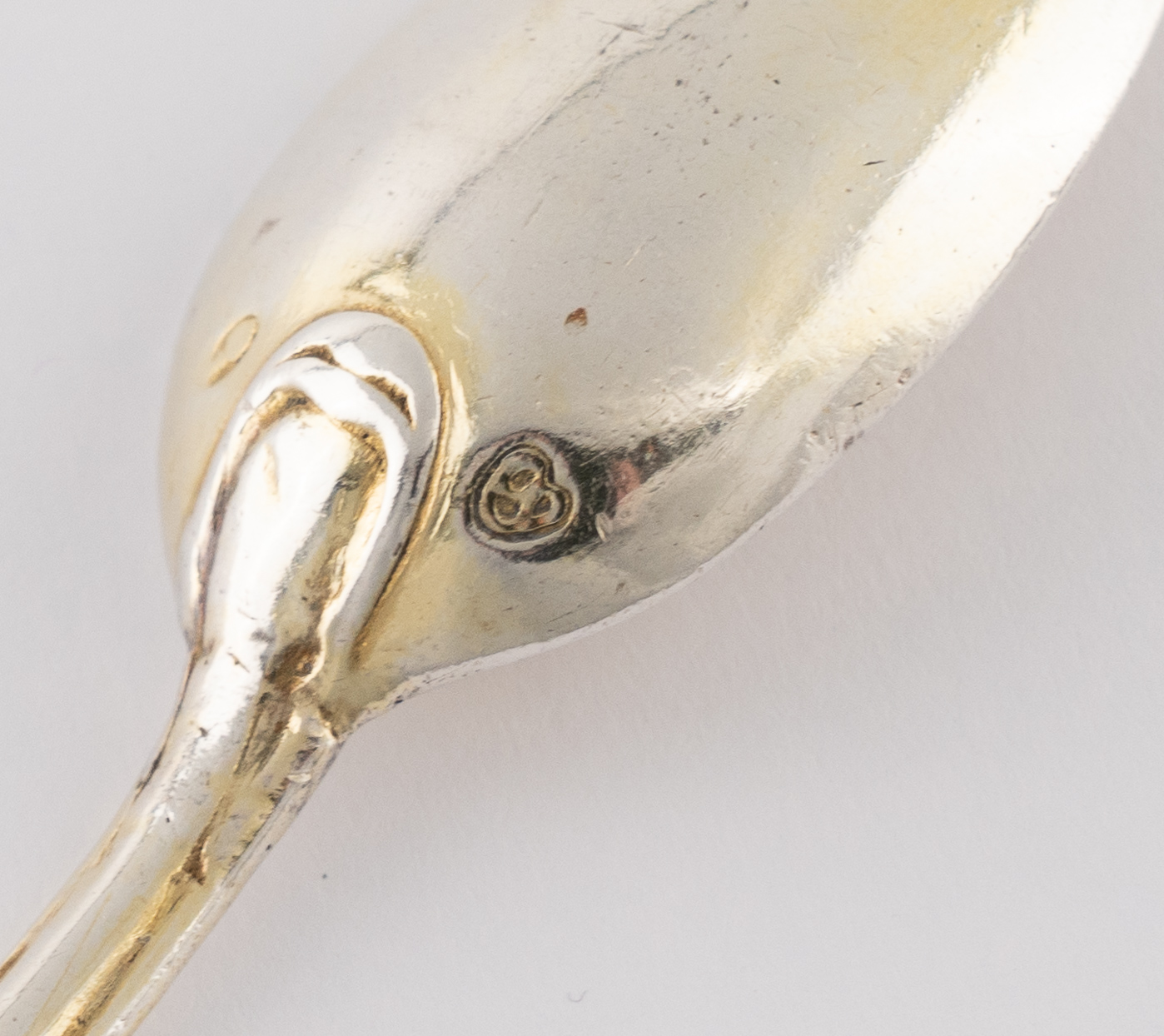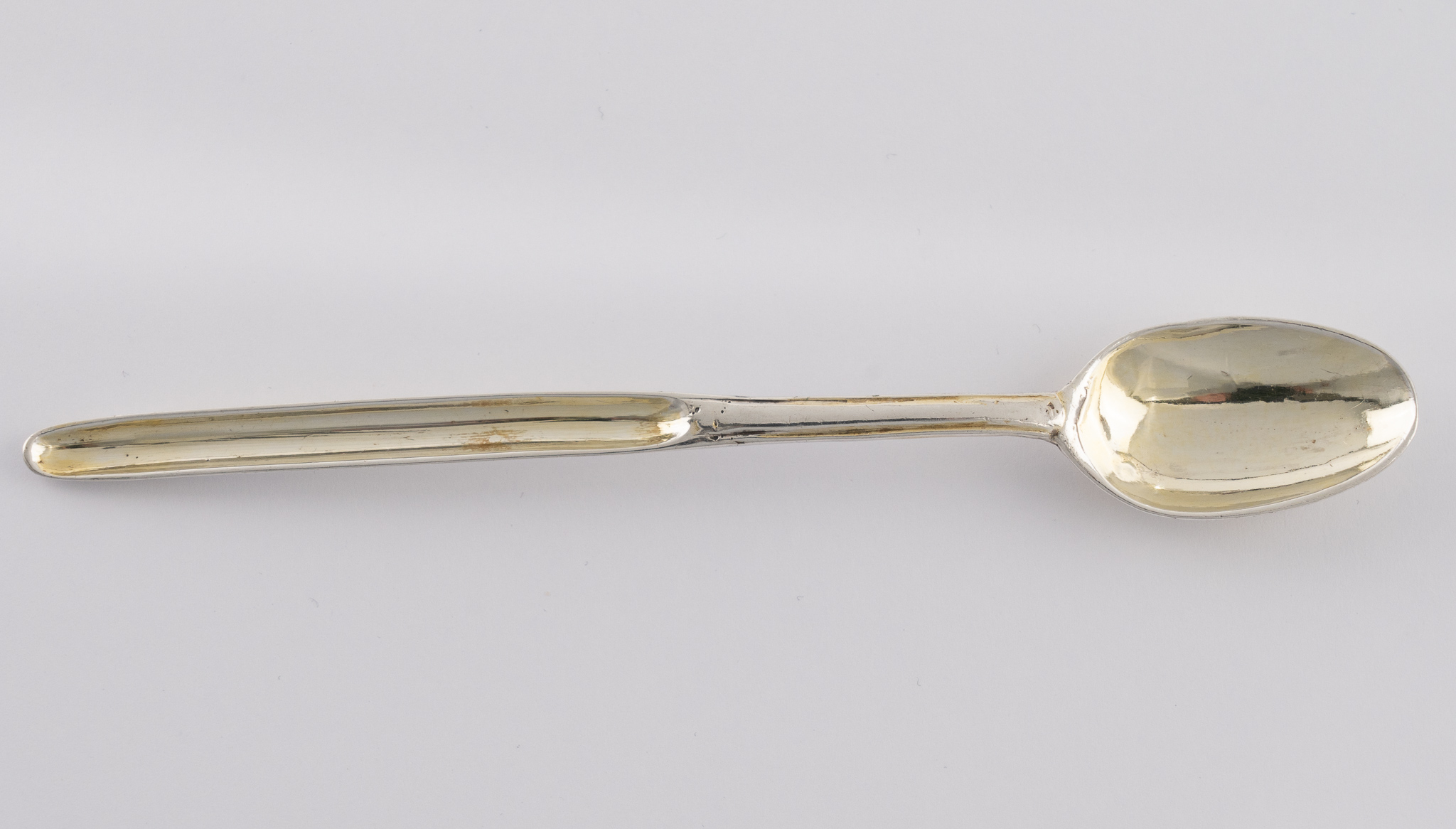 Ein barocker Augsburger Marklöffel aus dem Hause Württemberg gearbeitet in 13 Lot Silber (812,5/1000). Glatter hochpolierter Dekor, restvergoldung.