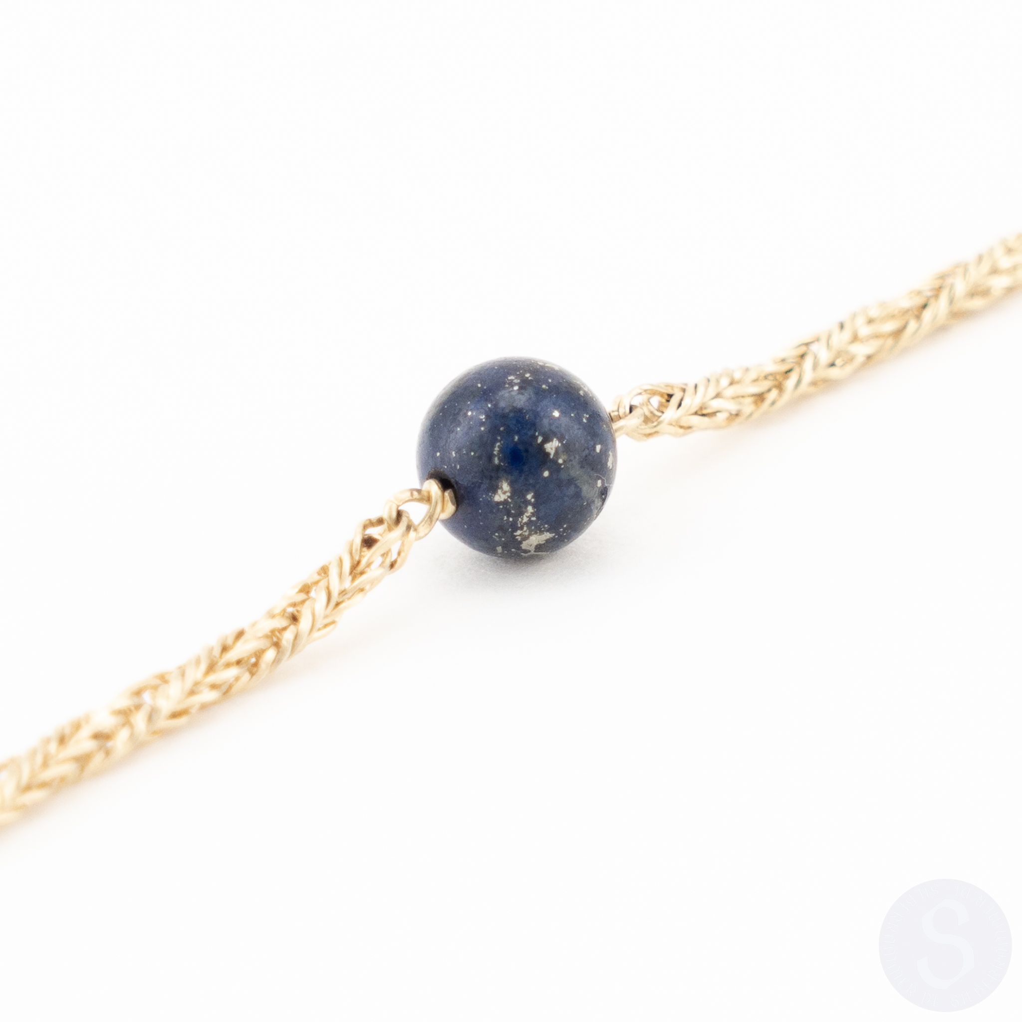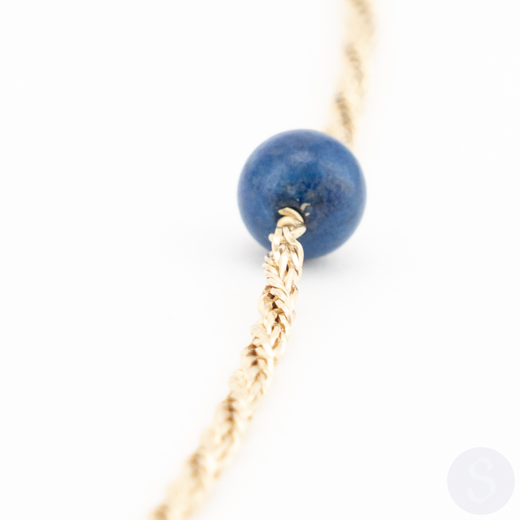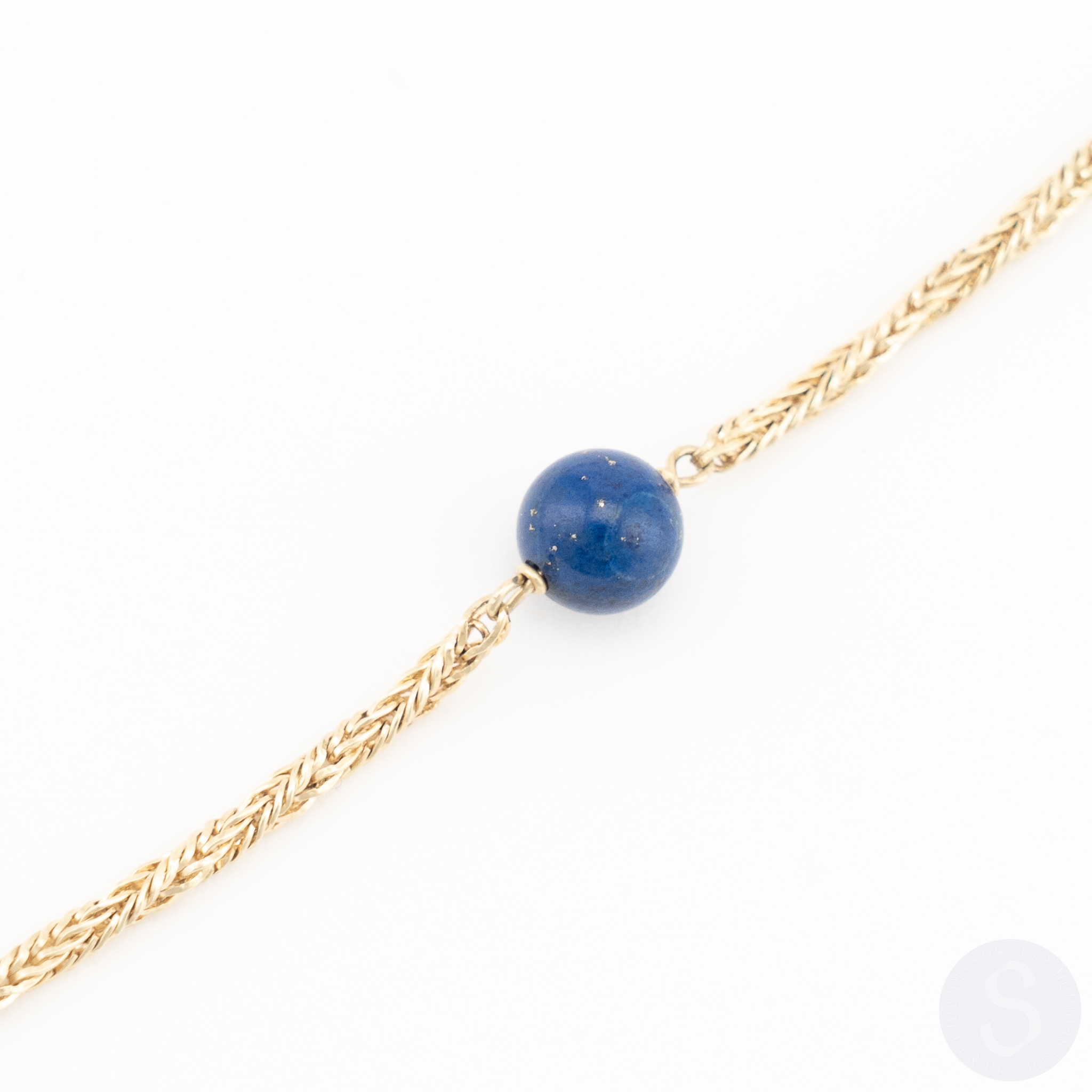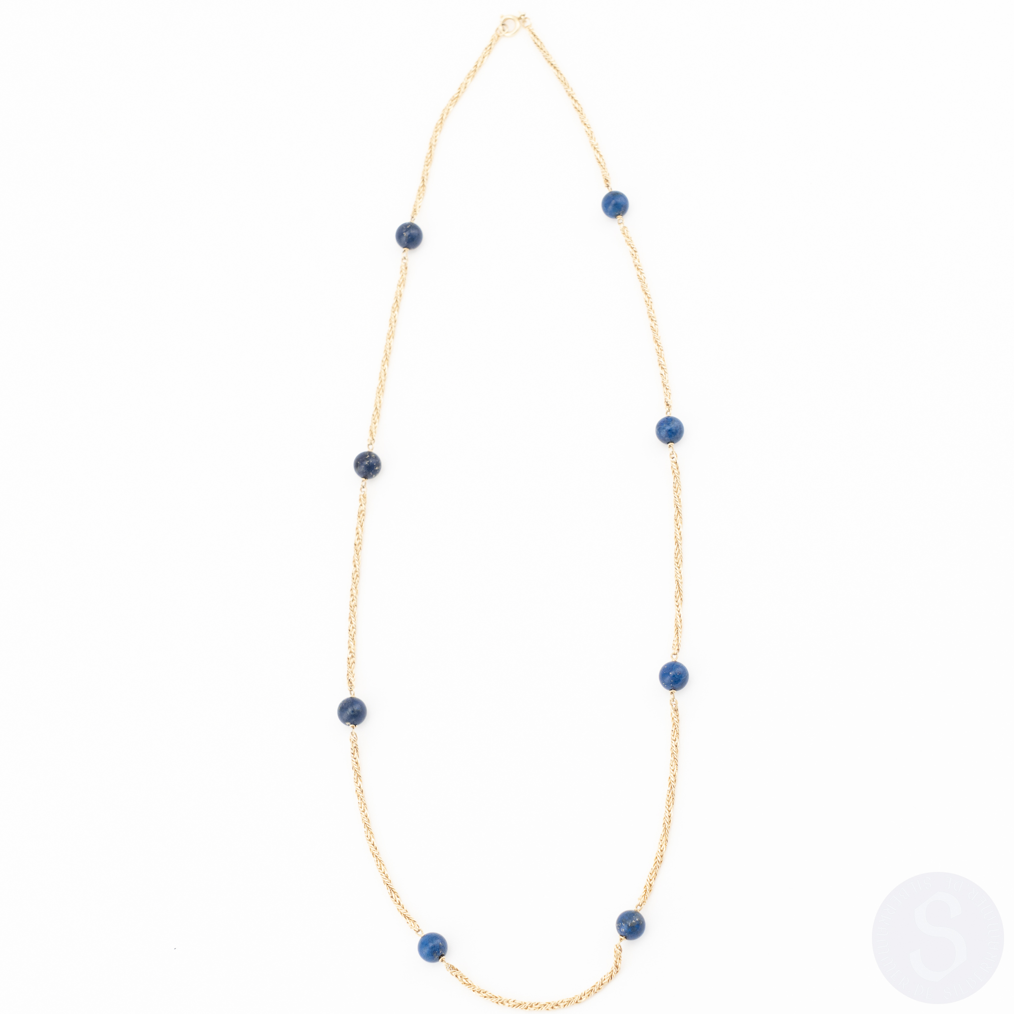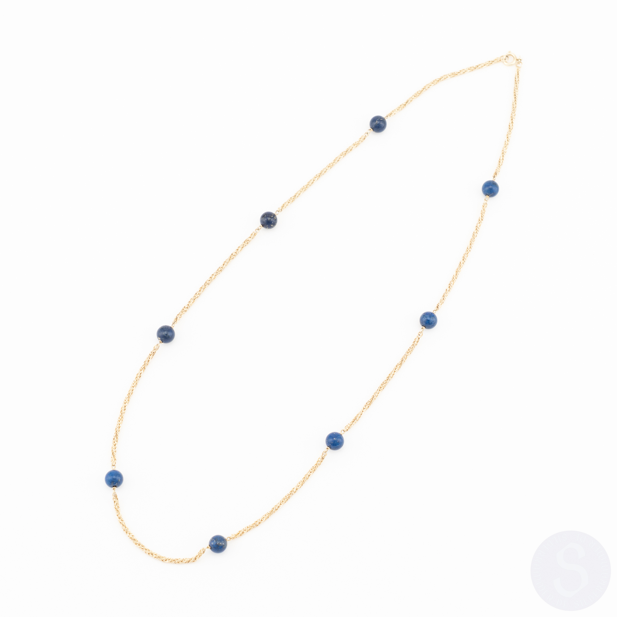 Ein Collier in 14 Karat Gelbgold mit acht Lapislazuli-Kugeln