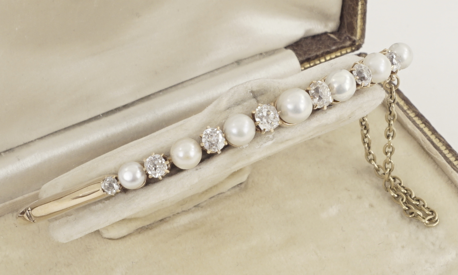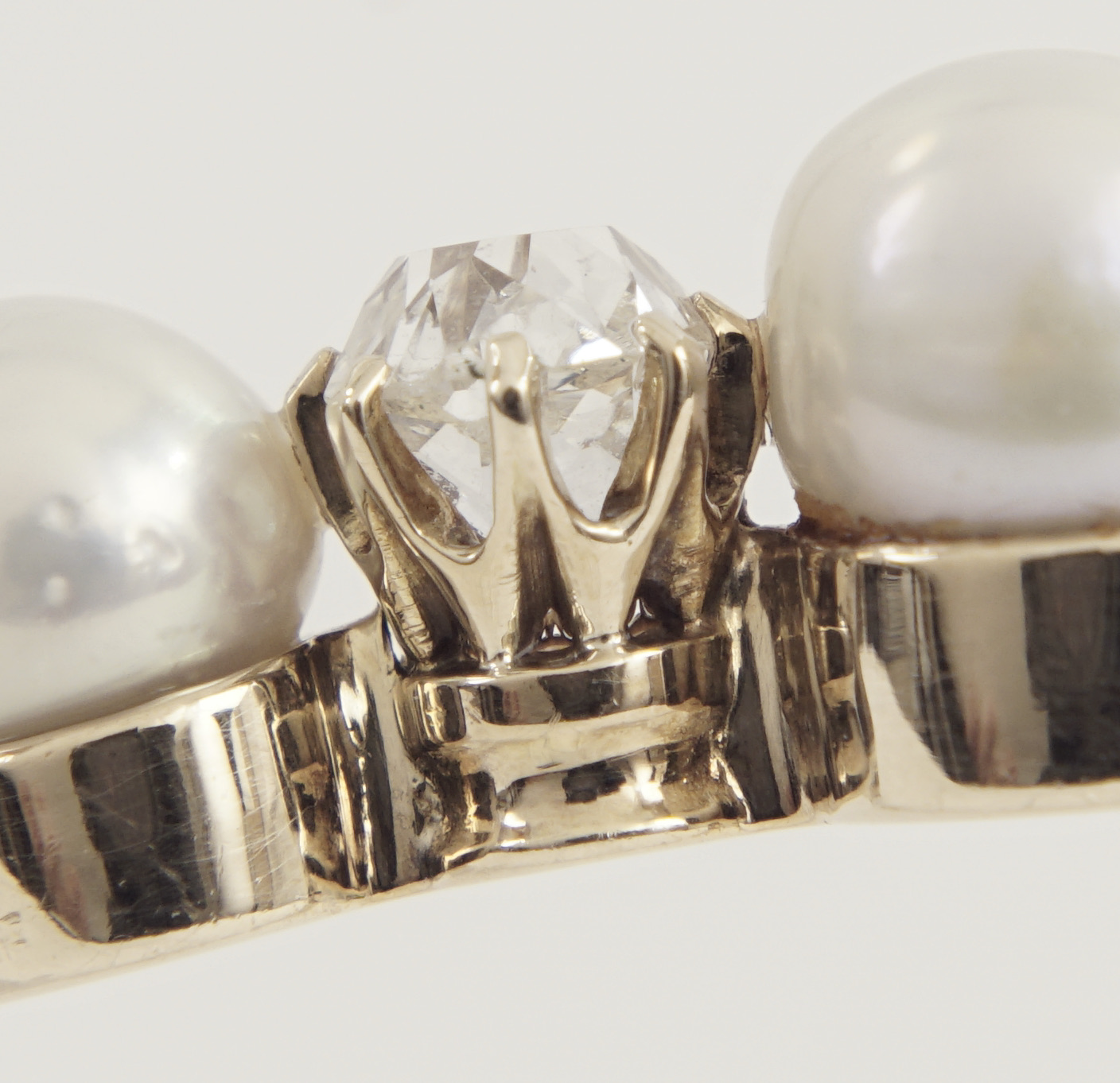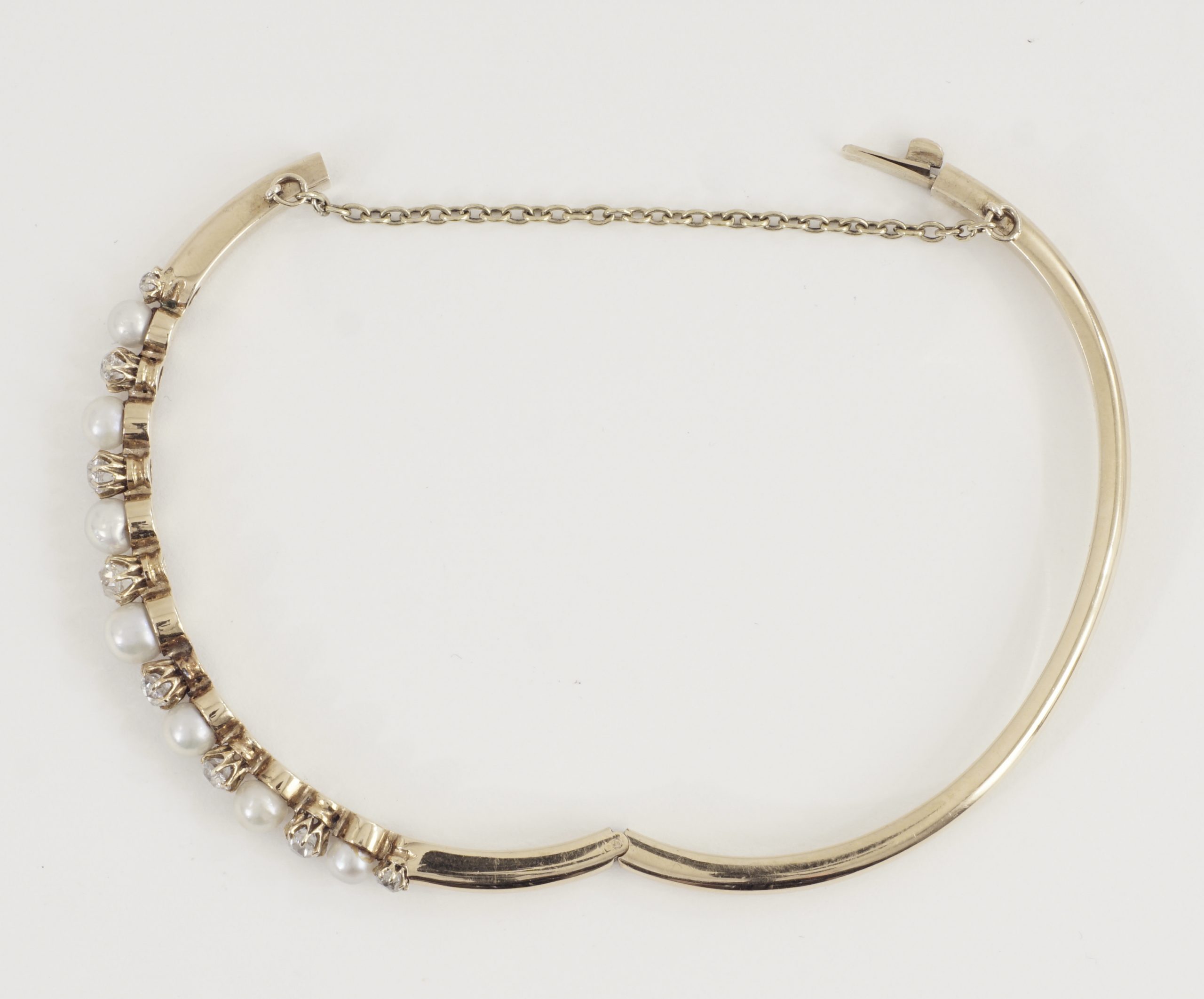Ein Diamant/Perl Armreif in 14 Karat Gold mit acht Altschliff-Diamanten