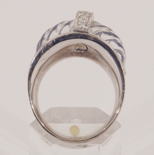 Ein eleganter Diamantring in 18 Karat(750/1000) Weißgold. Ausgefasst mit acht Diamanten, Bergkristall und blauem Email.