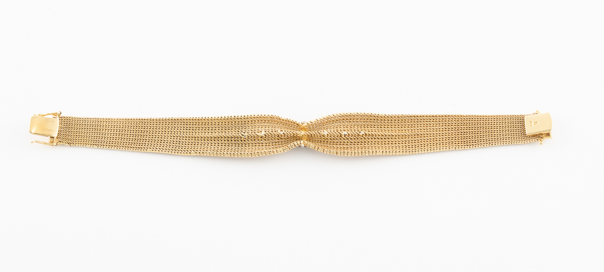 Das Armband zur Schließe sich verjüngend sowie mittig eingezogen.