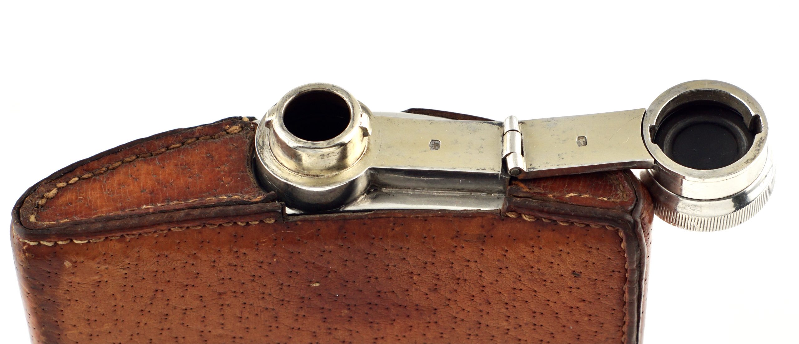 Ein großer Flachmann in 925er Sterlingsilber mit Becher und Lederbezug - Sheffield 1930