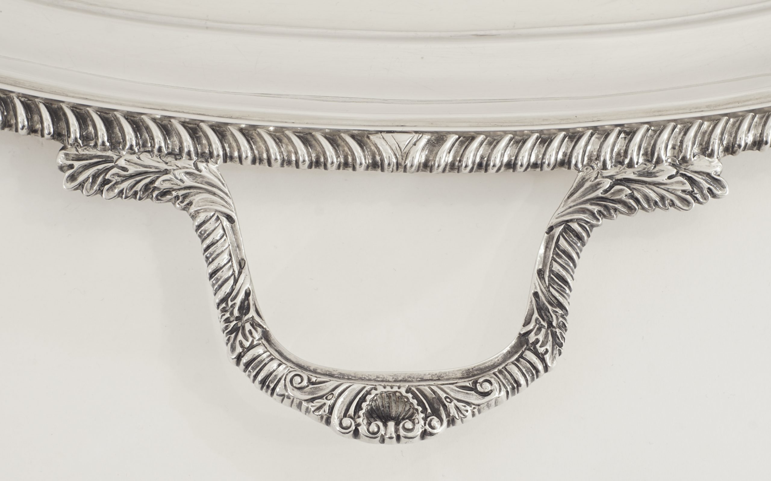 Griffe und Rand verziert mit Godronen, Muschelwerk und Akanthusblättern.