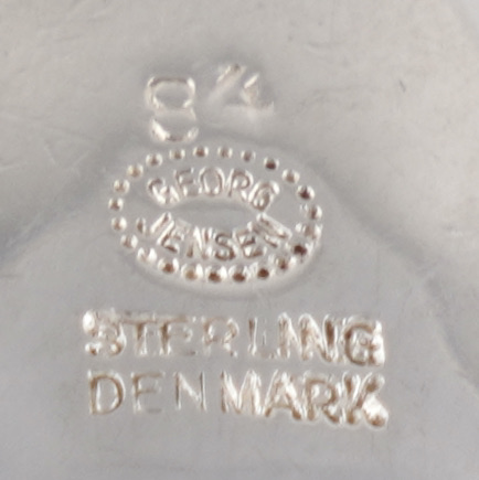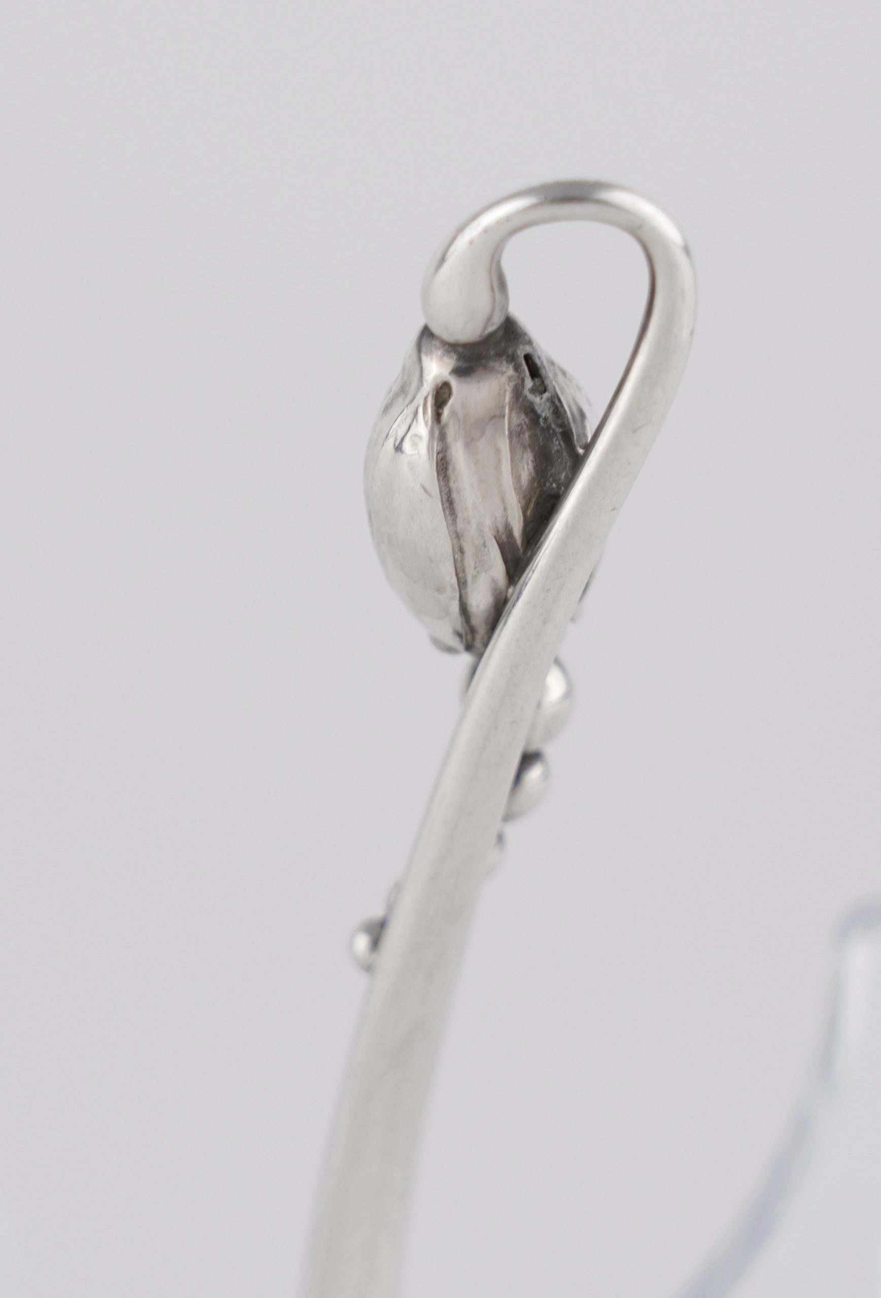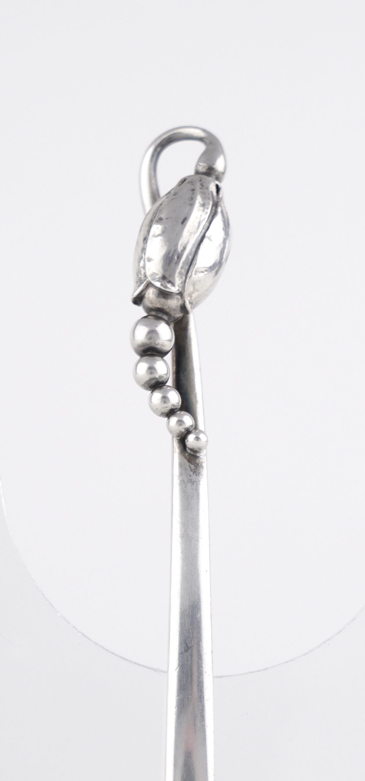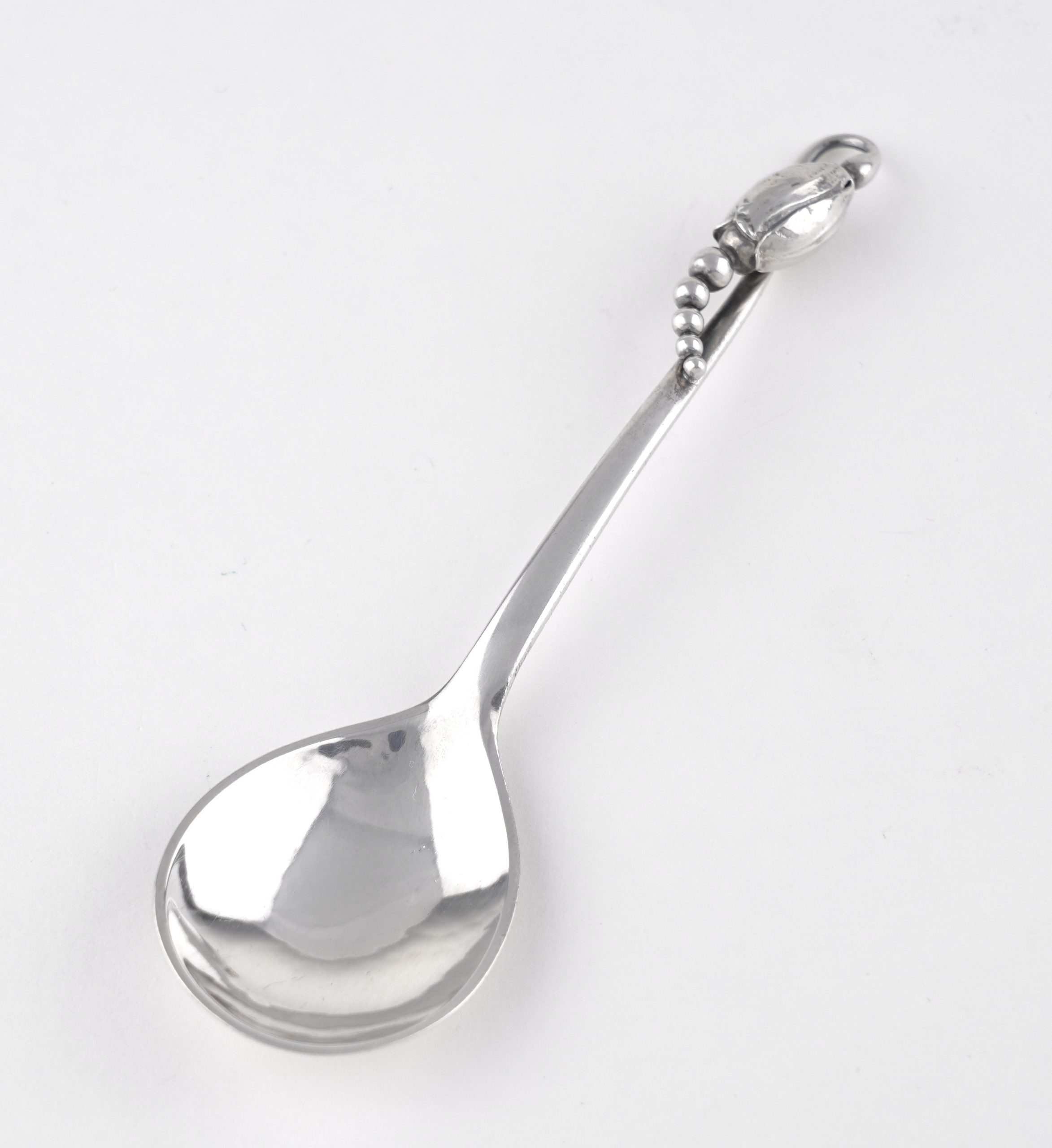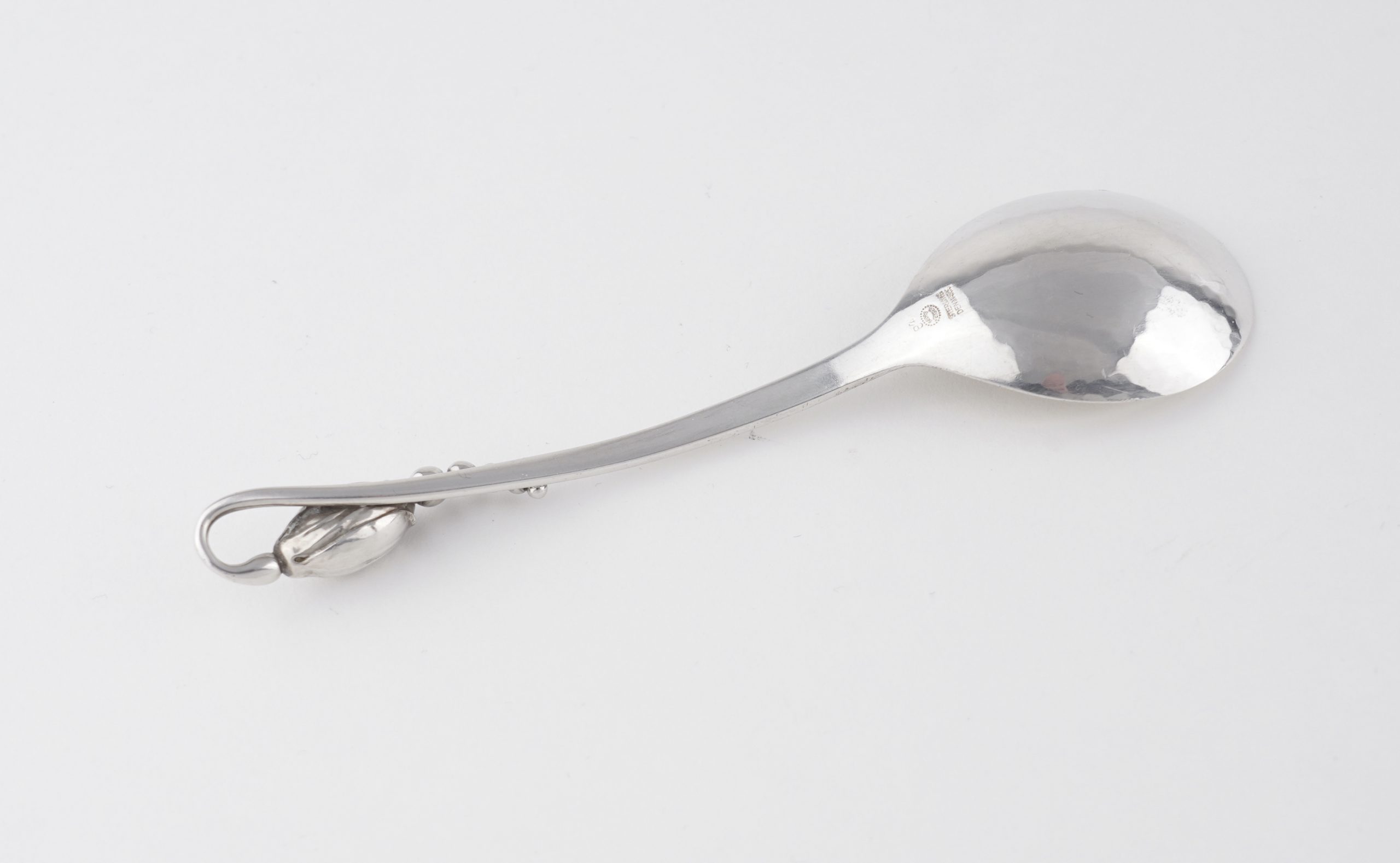 Ein Löffel (wohl kleiner Sahnelöffel) von Georg Jensen Modell „Magnolia / Blossom“ (Entwurf von 1919) gearbeitet in 925 Sterlingsilber.