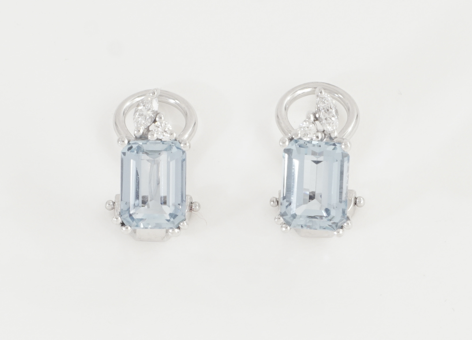 Ein Paar Aquamarin-Ohrclips mit Diamantbesatz in 18 Kt. Weissgold