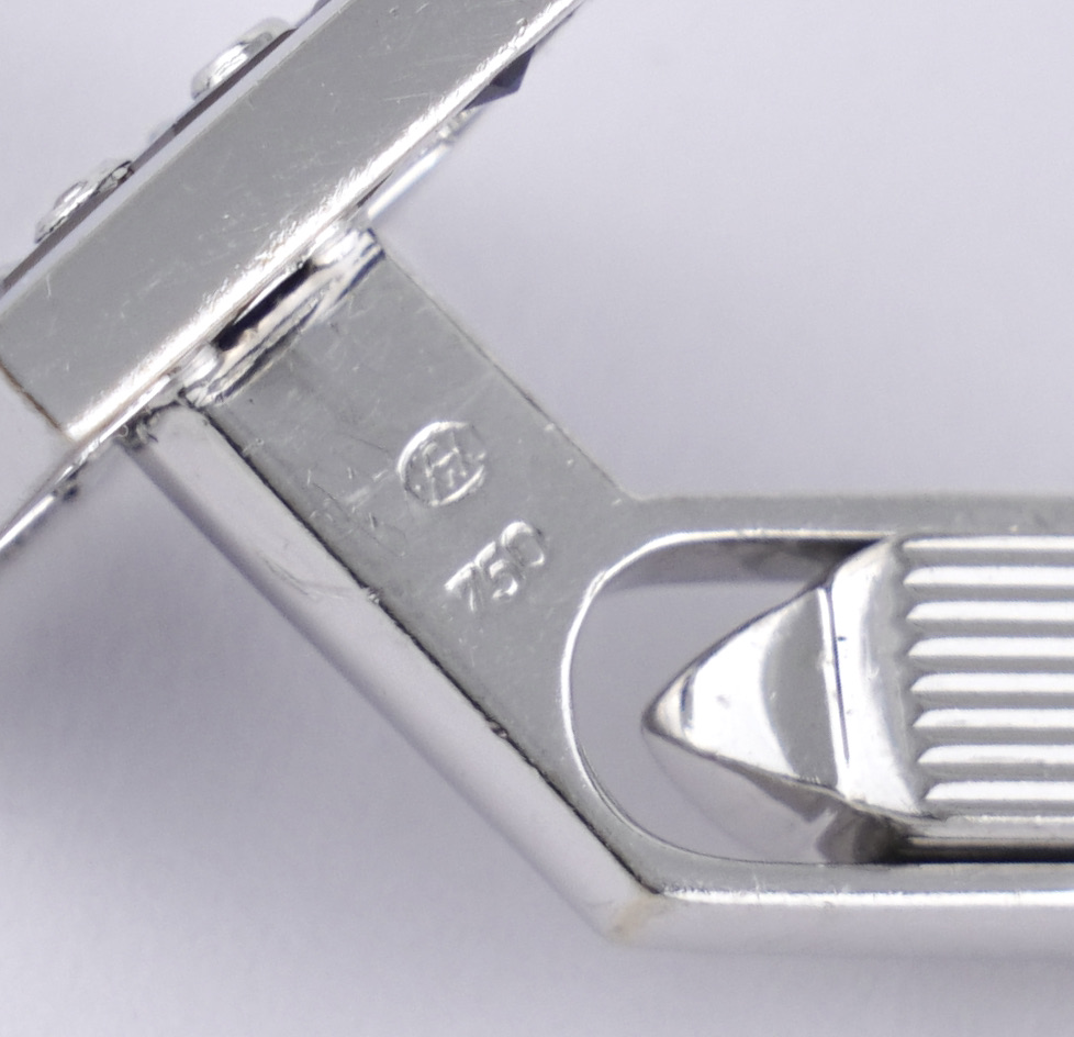 Ein Paar elegante quadratische Manschettenknöpfe in 18 Karat Weißgold mit 18 Saphir-Carrés