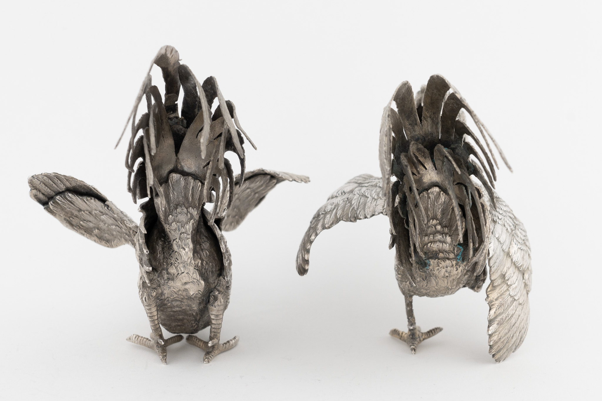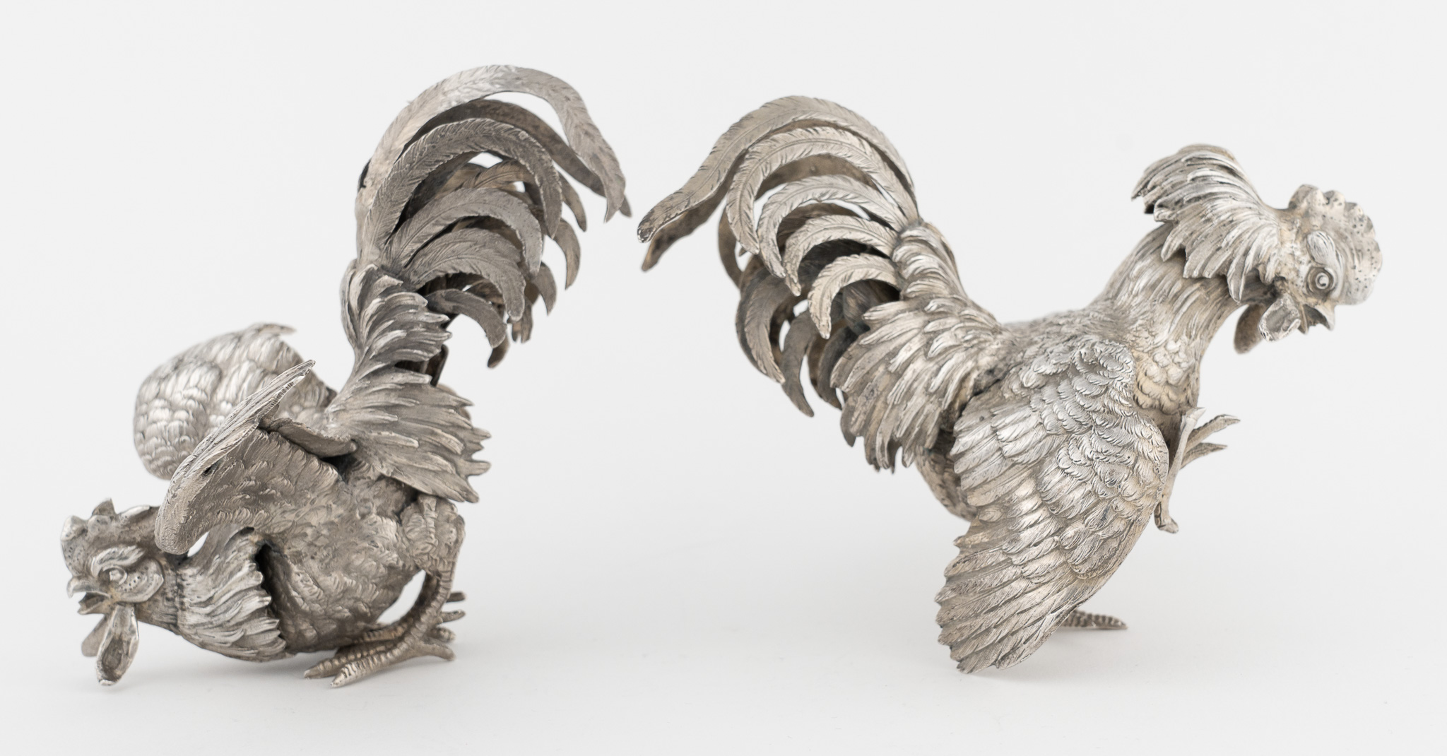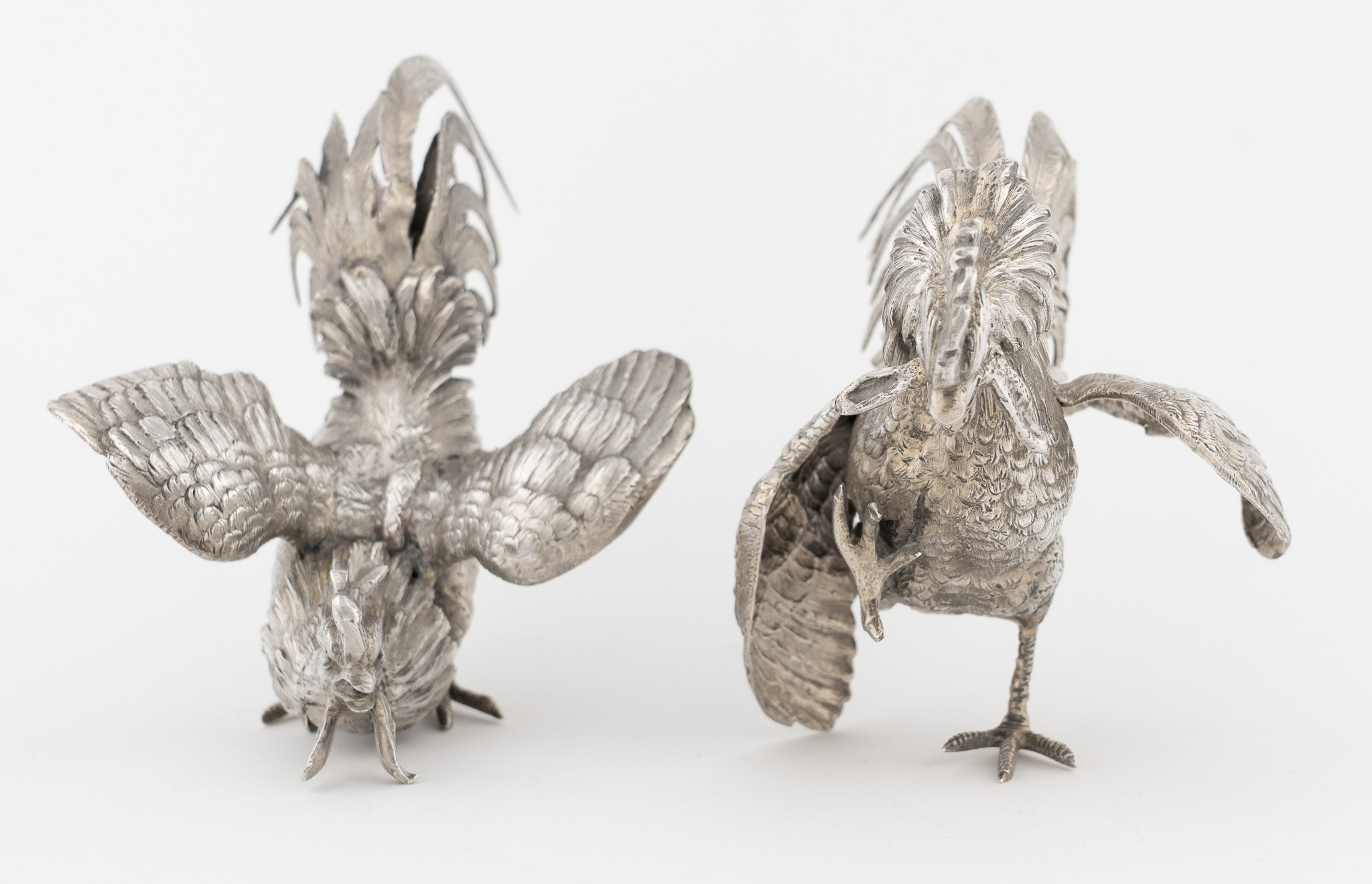 Ein Paar Kampfhähne in 925er Silber - Neresheimer Hanau