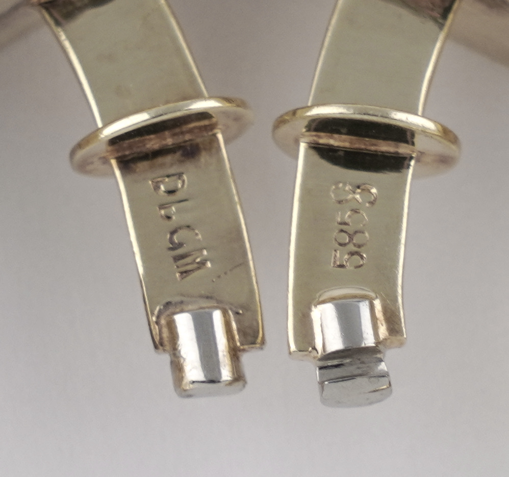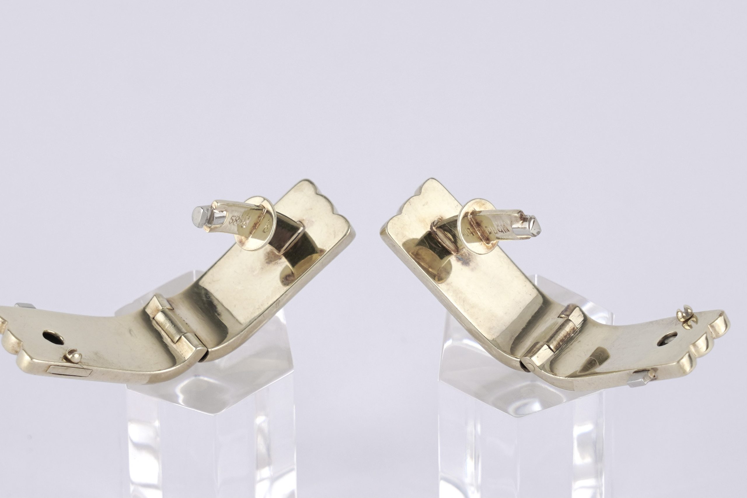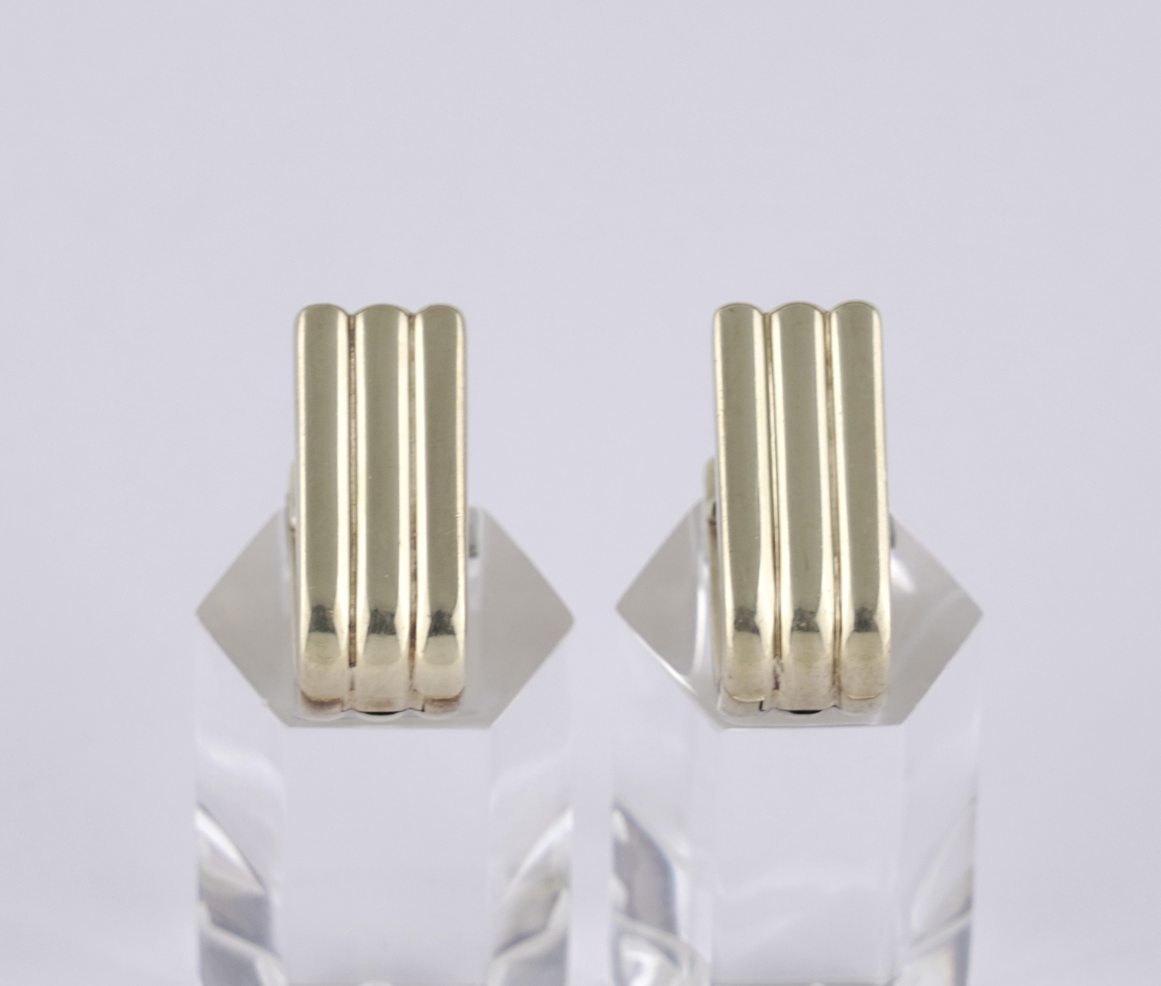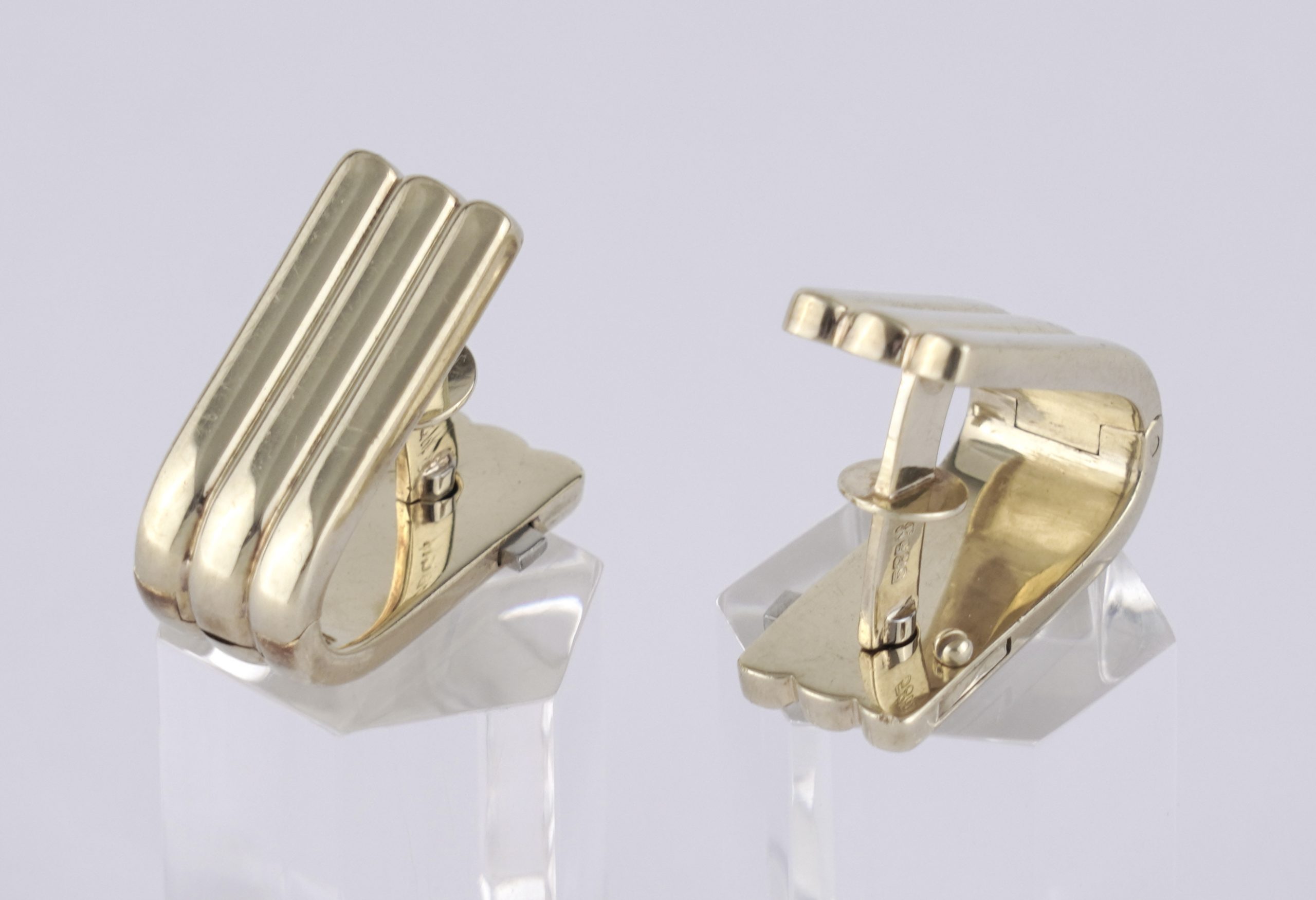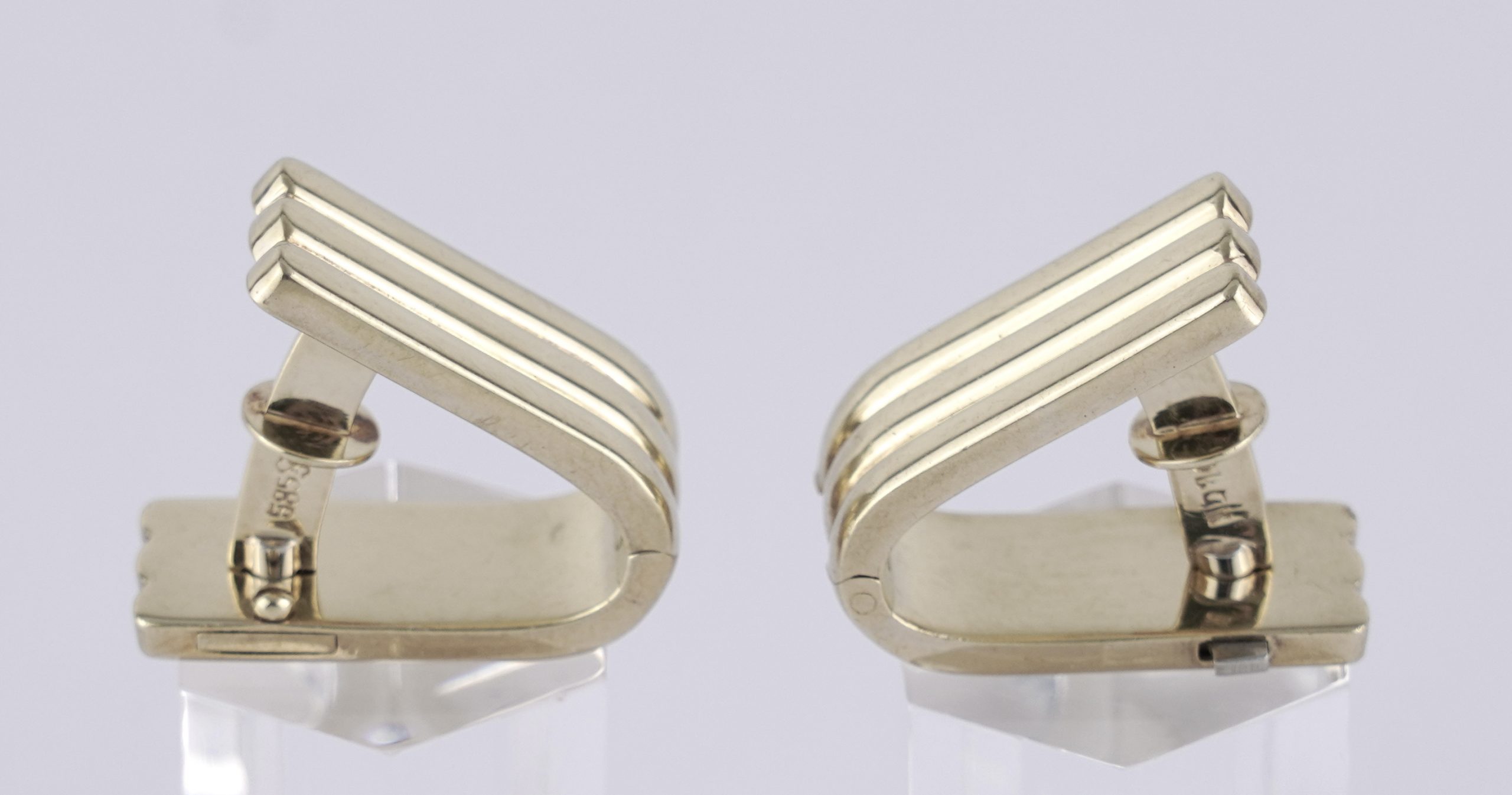 Ein Paar solide Manschettenknöpfe gearbeitet in 14 Karat (585/1000) Gelbgold, hochpoliert mit Rillen-Dekor.