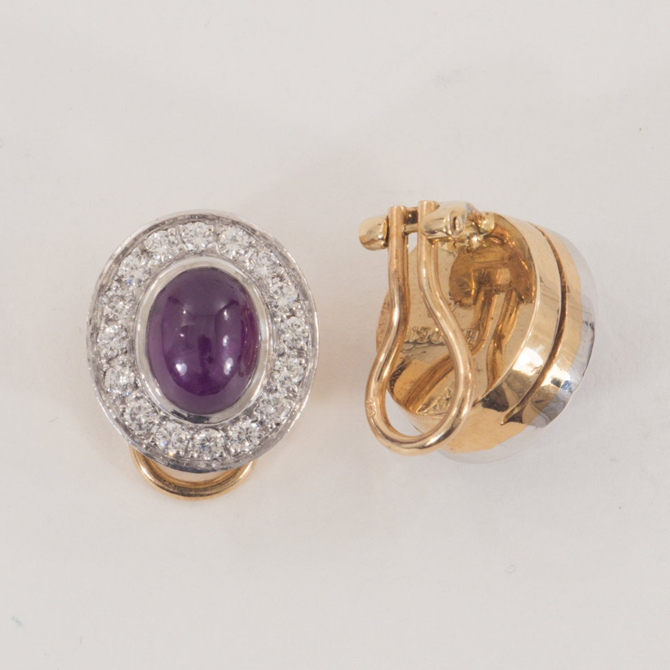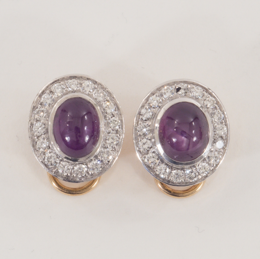 Ein Paar Sternrubin-Brilliant Ohrclips in 18 Karat Gold rhodiniert