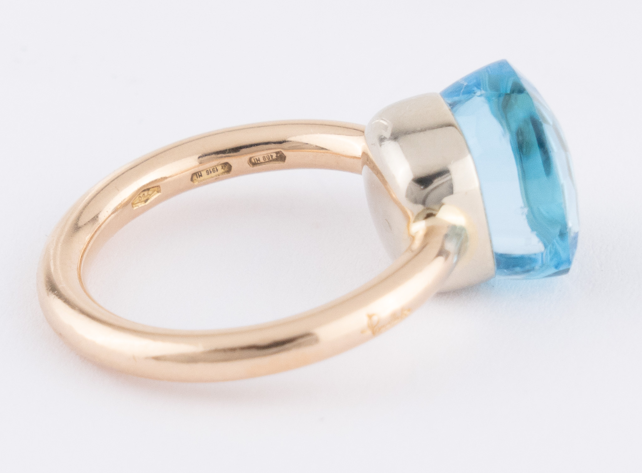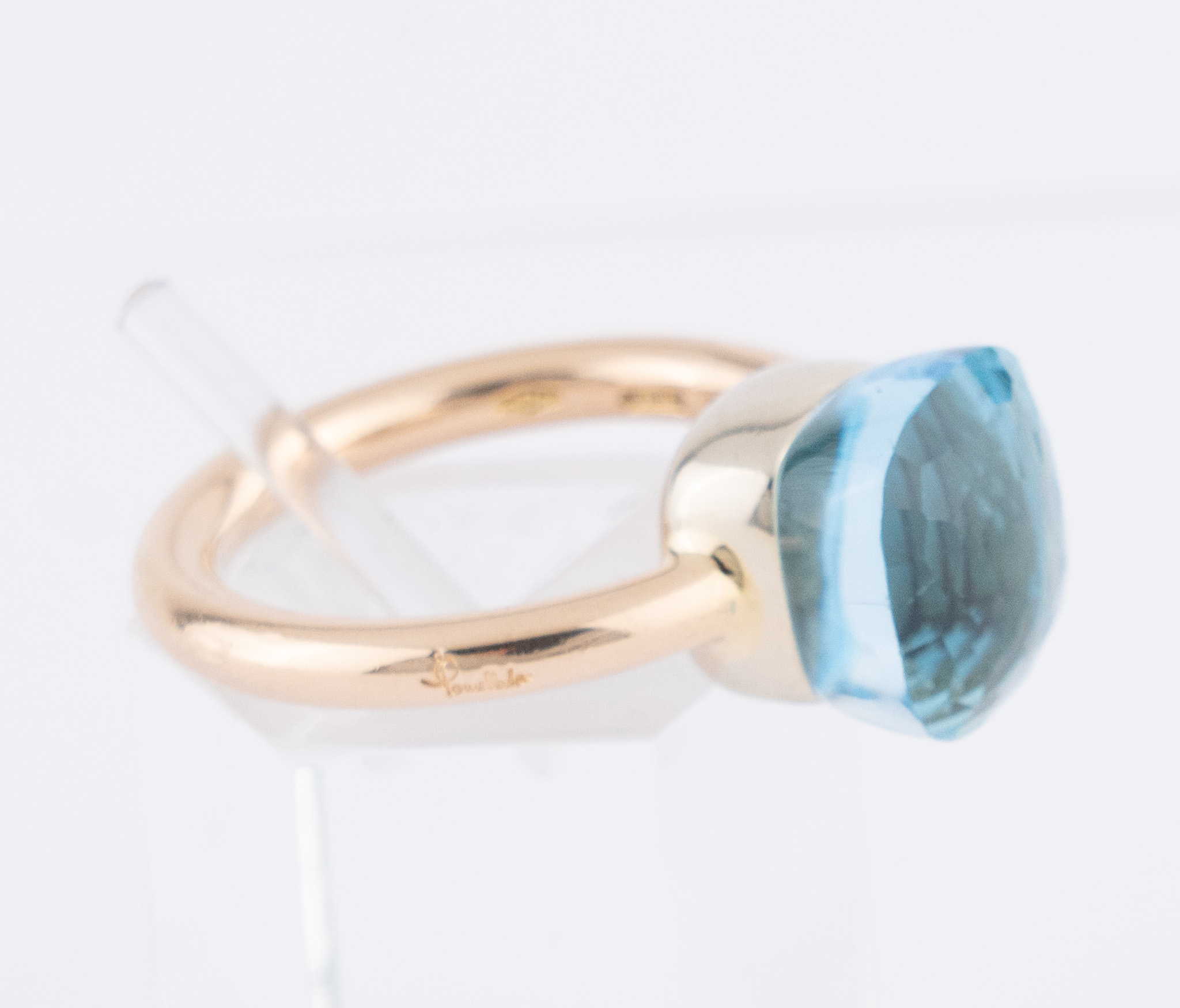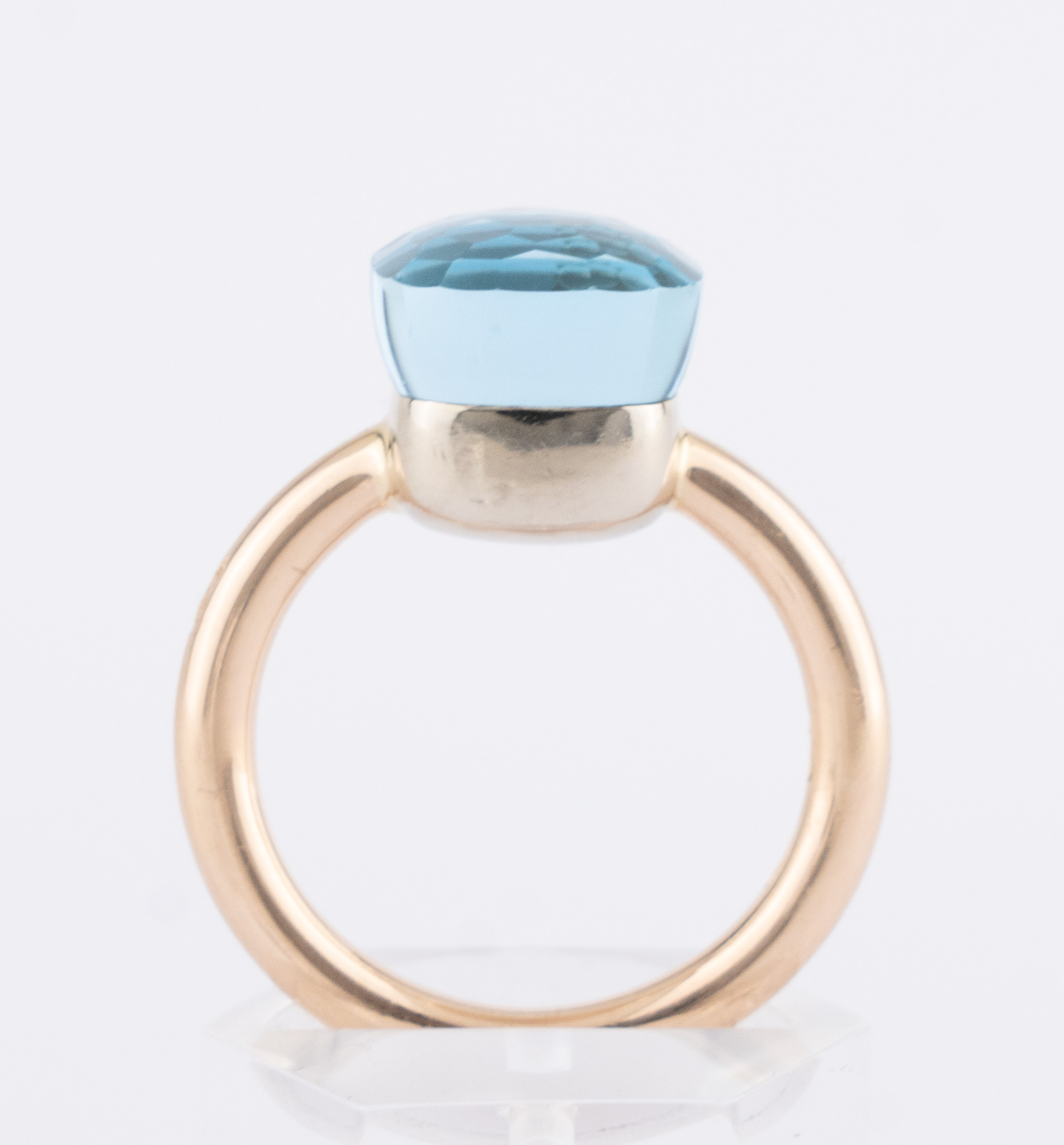 Ein Ring „Nudo Petit“ von Pomellato in 18 Kt. Gelbgold mit einem blauen Topas