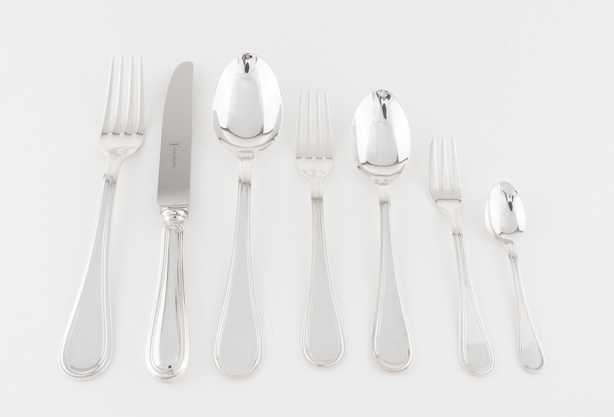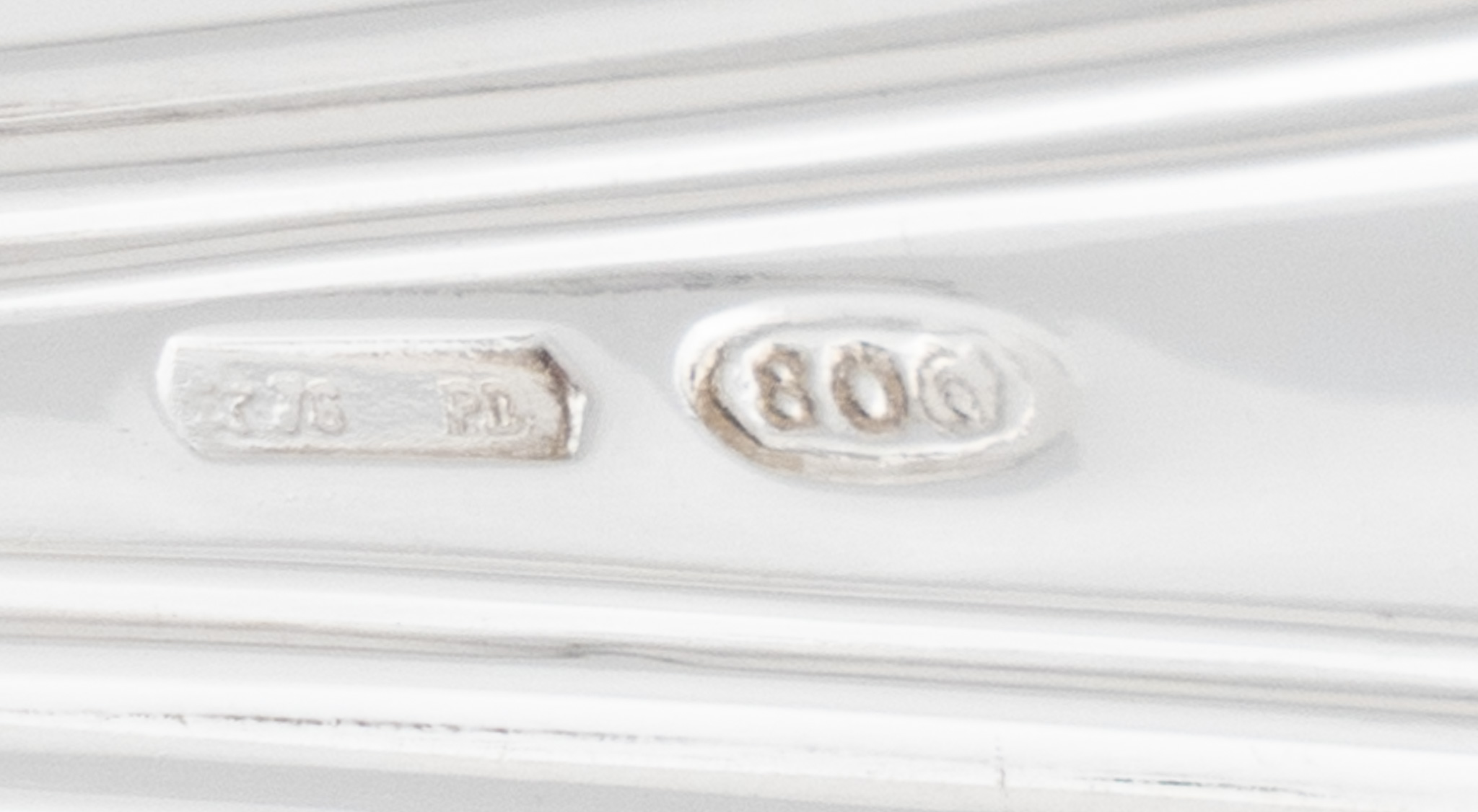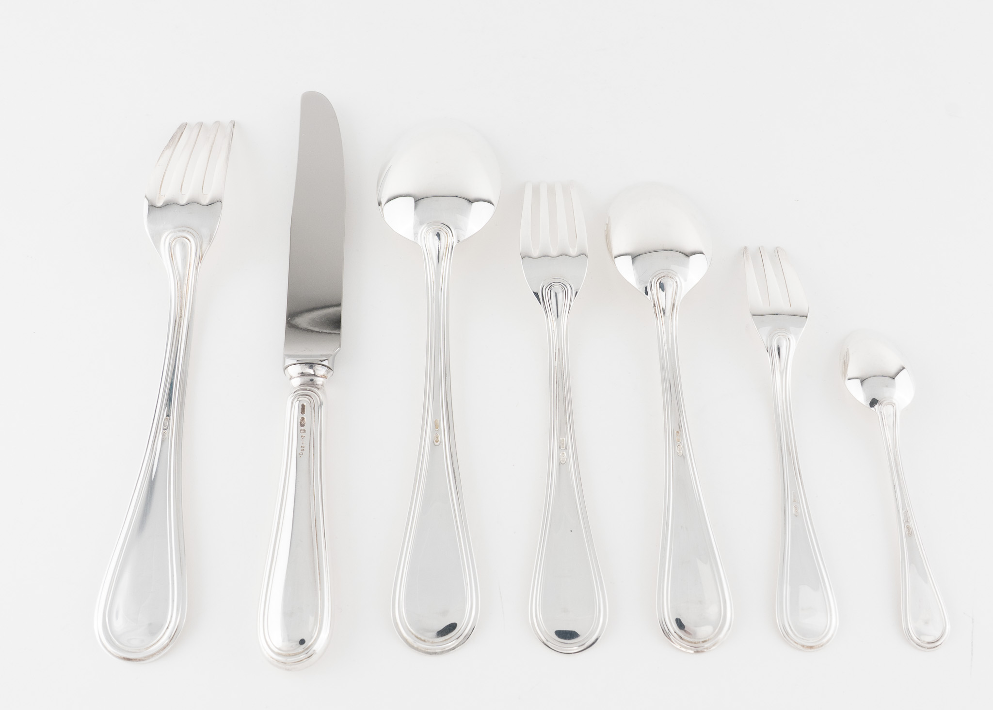 Ein Satz von 7 Bestecken in 800er Silber für eine Person im Dekor Rundfaden - Italien modern (Satz Nr. 1)