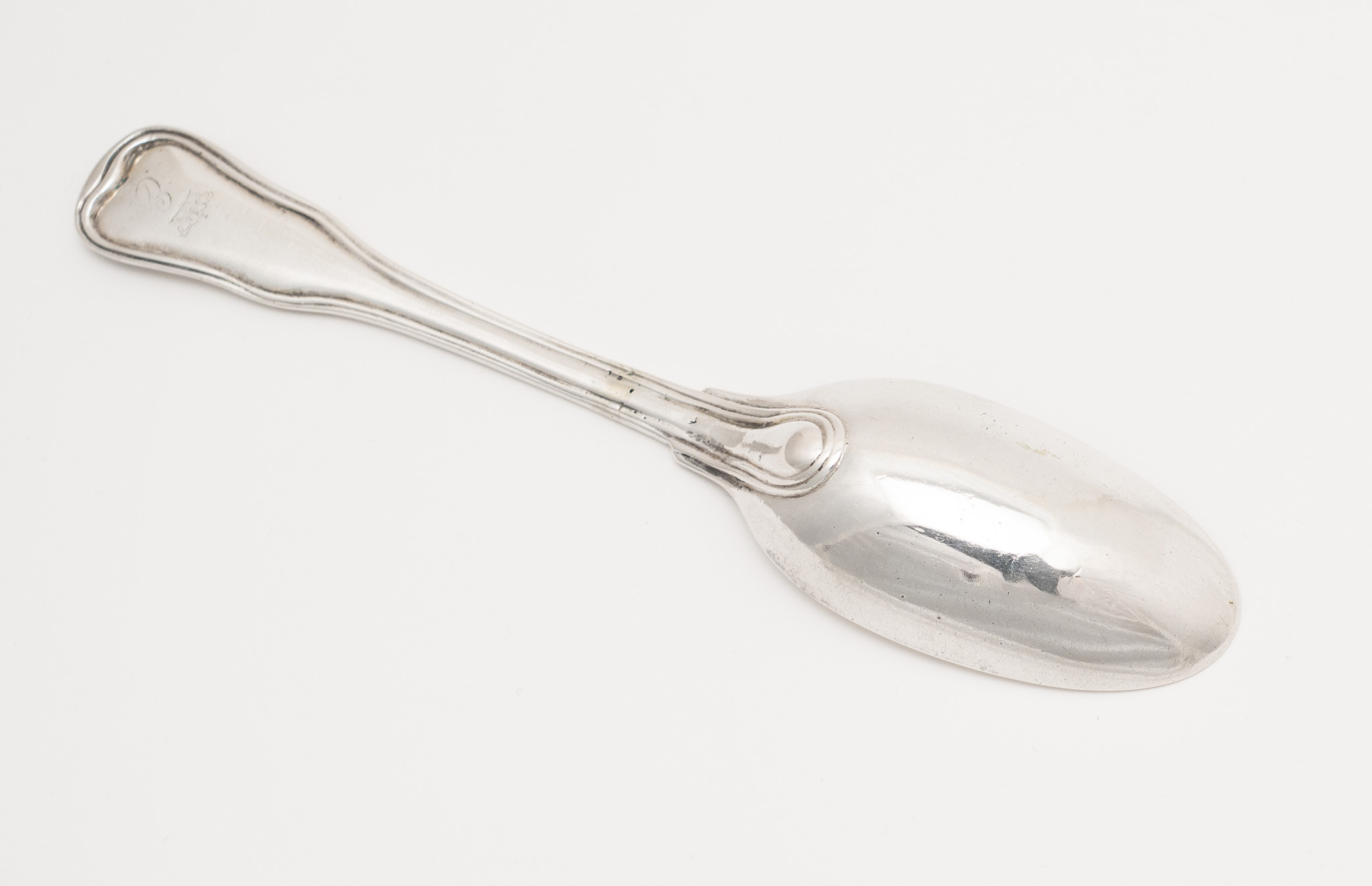 Anmerkung: Der Löffel stammt ursprünglich aus einem Service für Carl Christian Erdmann (1716–1792), Herzog zu Württemberg-Oels. Eugen von Württemberg vermerkte später, dass er dieses Service erbte und Teile davon mit seinem eigenen Monogramm versehen ließ.
