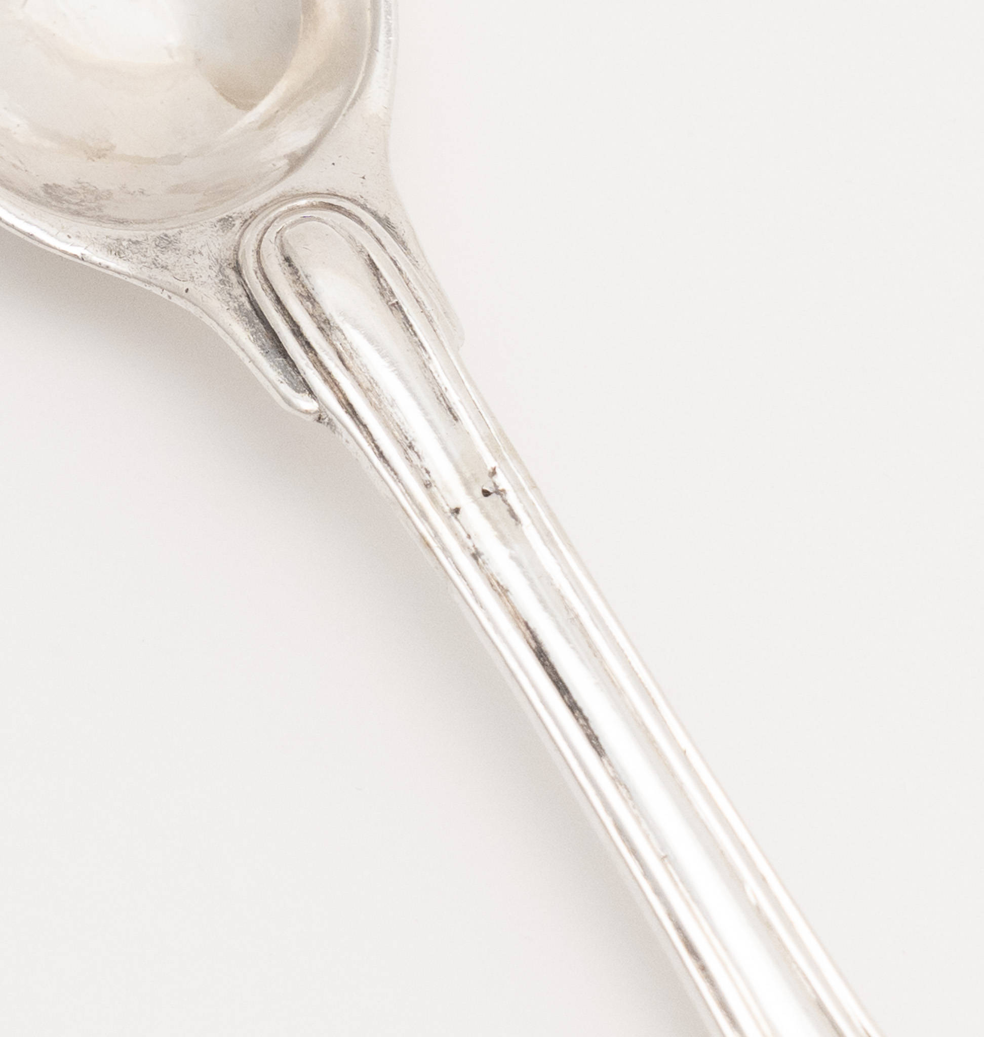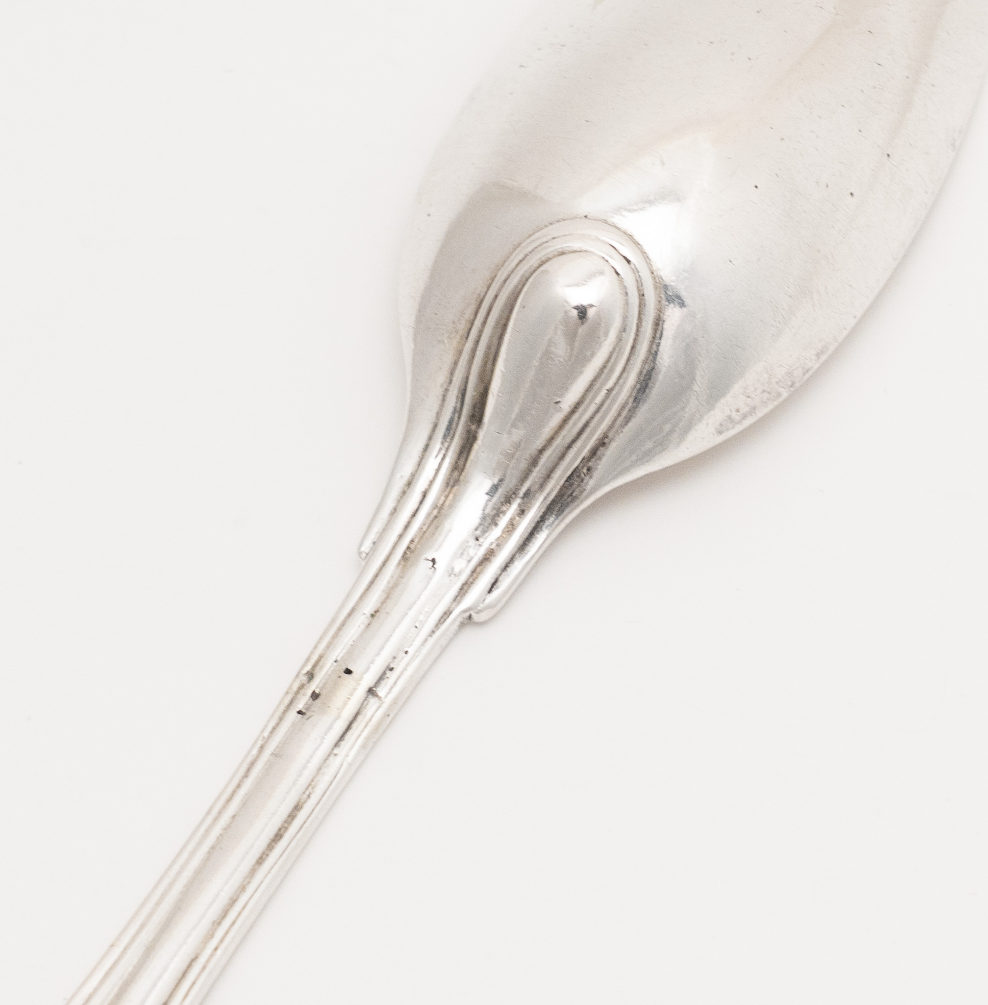 Der Löffelstiel in Geigenform mit Fadendekor entspricht der Stilform des Barock; typisch ist die langgezogene Laffe.