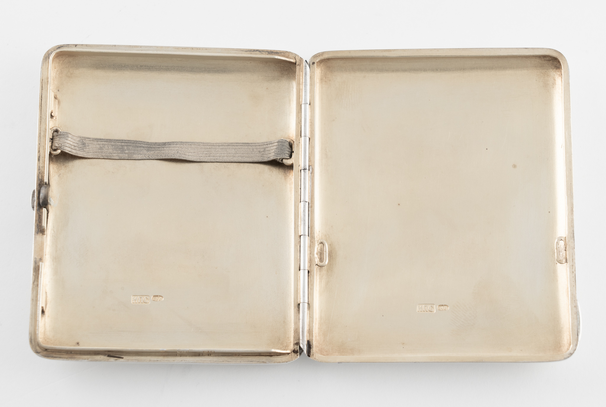 Ein Zigarettenetui gearbeitet in 84 Zolotnik Silber (875/1000) – mattiert und innenvergoldet.