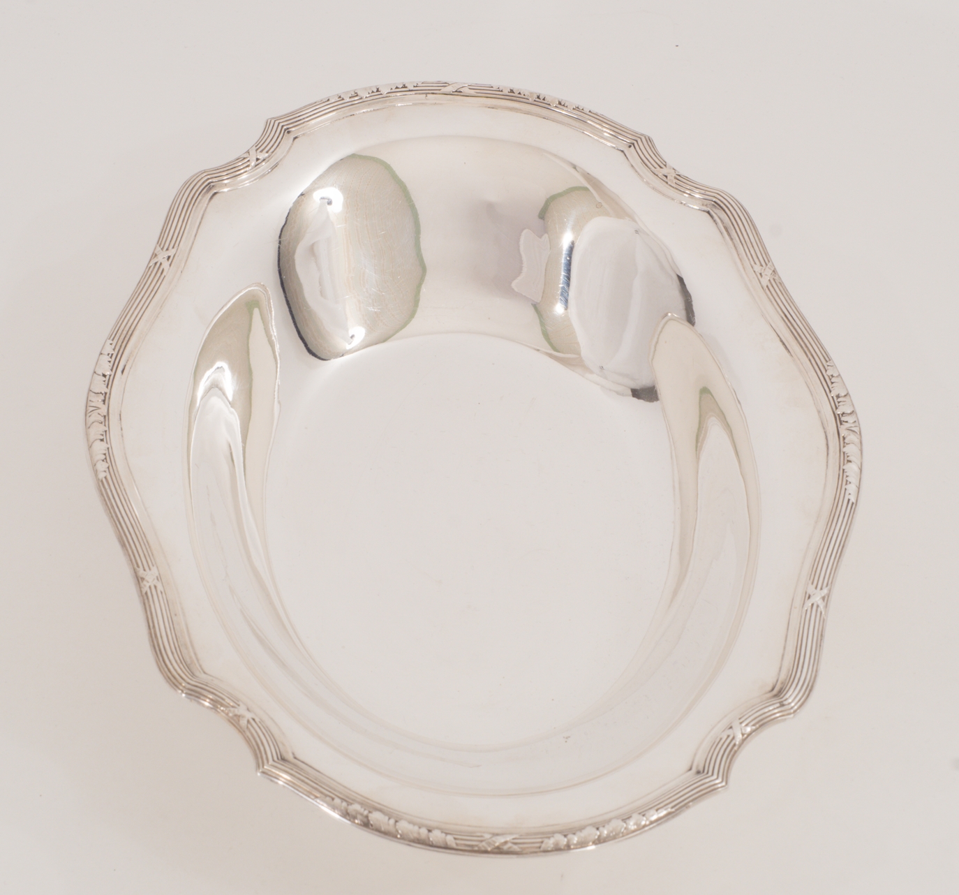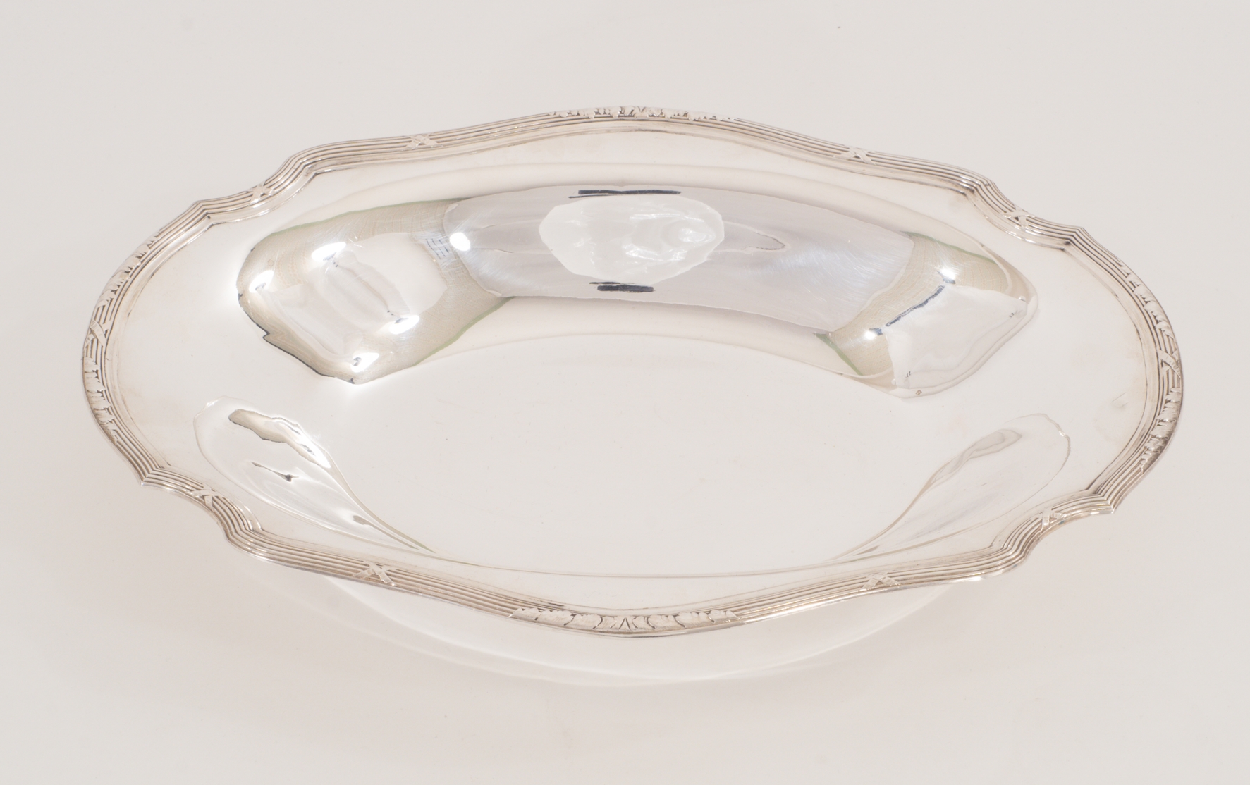 Eine elegante ovale Brotschale - gearbeitet in 800er Silber mit Kreuzbanddekor