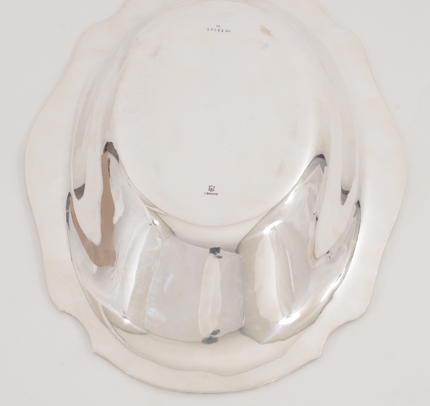 Eine elegante ovale Brotschale, gearbeitet in 800er Silber mit Kreuzbanddekor.