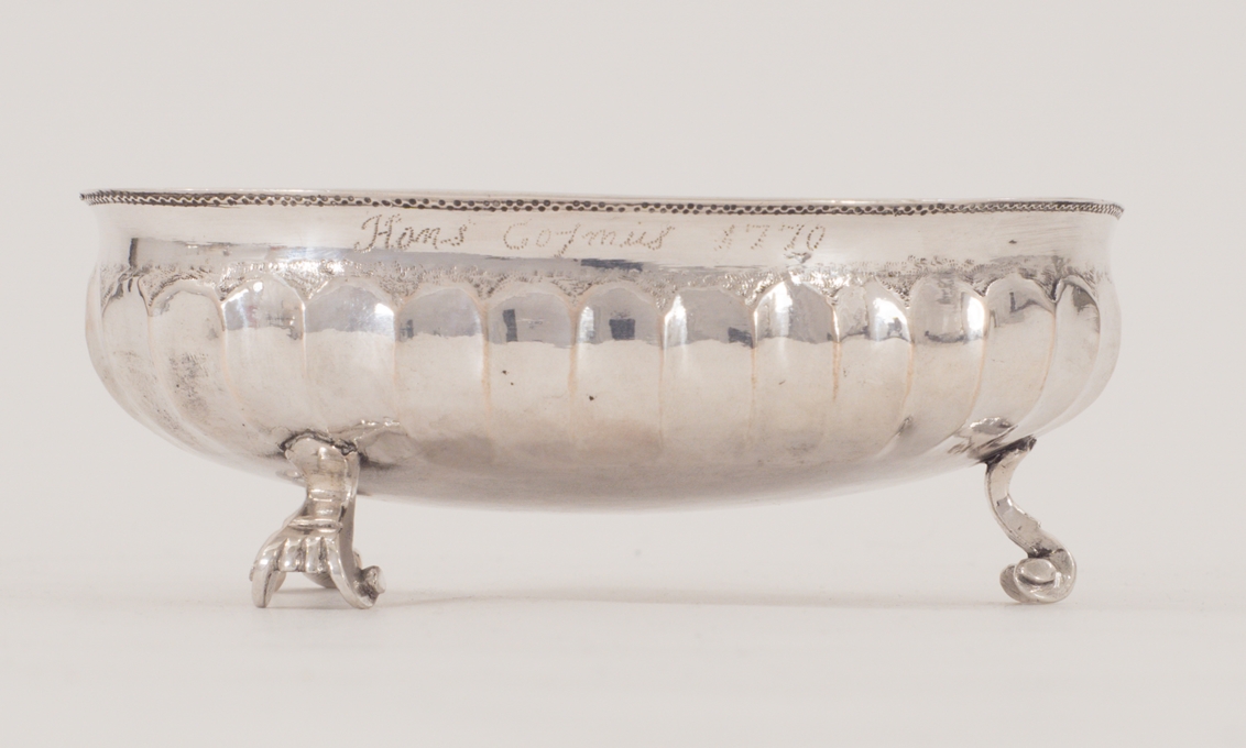 Eine aparte kleine Zuckerschale in massiv Silber gearbeitet auf drei Füßen, datiert 1770