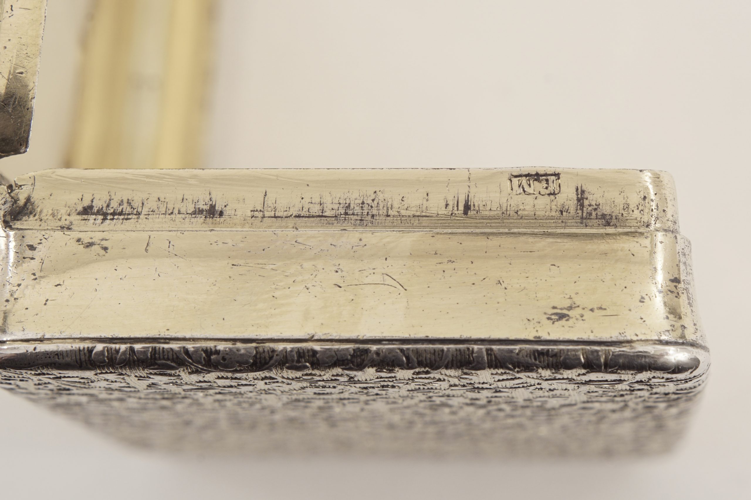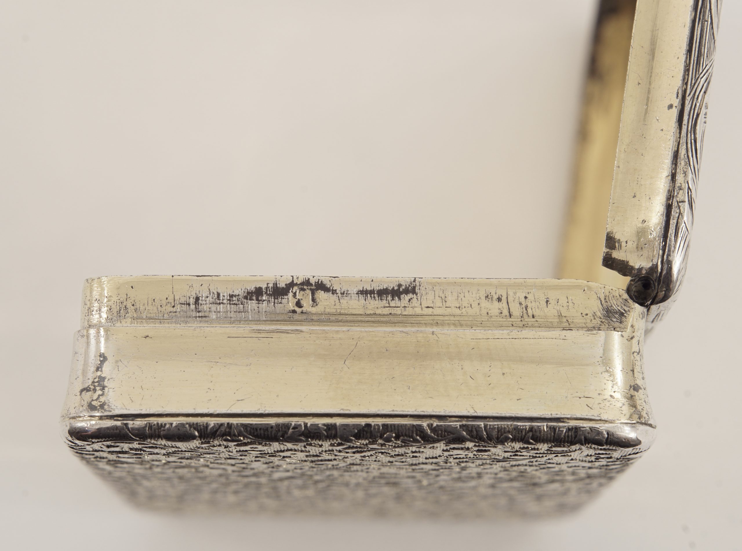 Eine feine kleine Tabatiere, gearbeitet in 13 Lot (812,5/1000) Silber, im Stil des 2. Rokokos um 1850.
