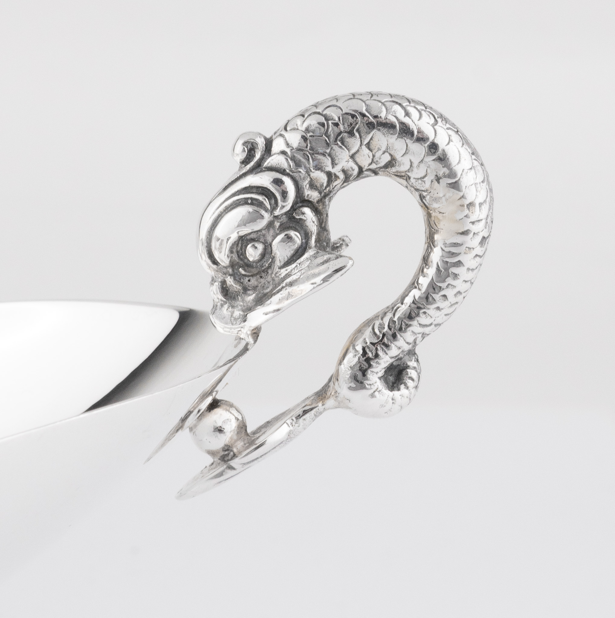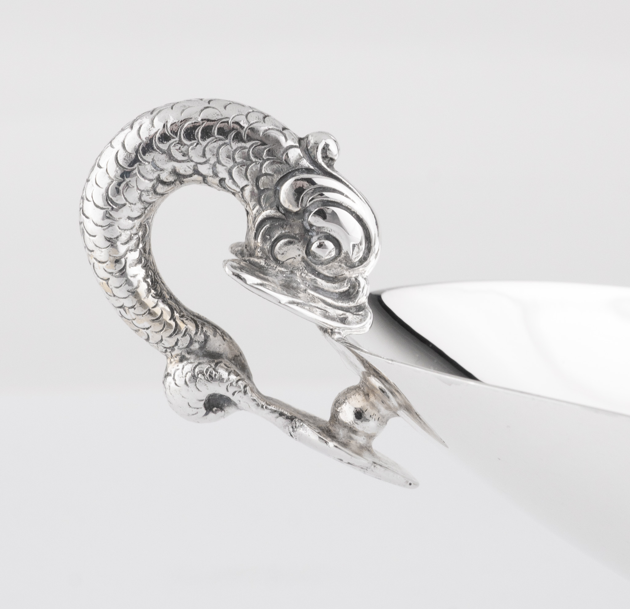 Eine Henkelschale mit Delphinen als Handhab in 925 Sterlingsilber - Gebrüder Deyhle - Schwäbisch Gmünd