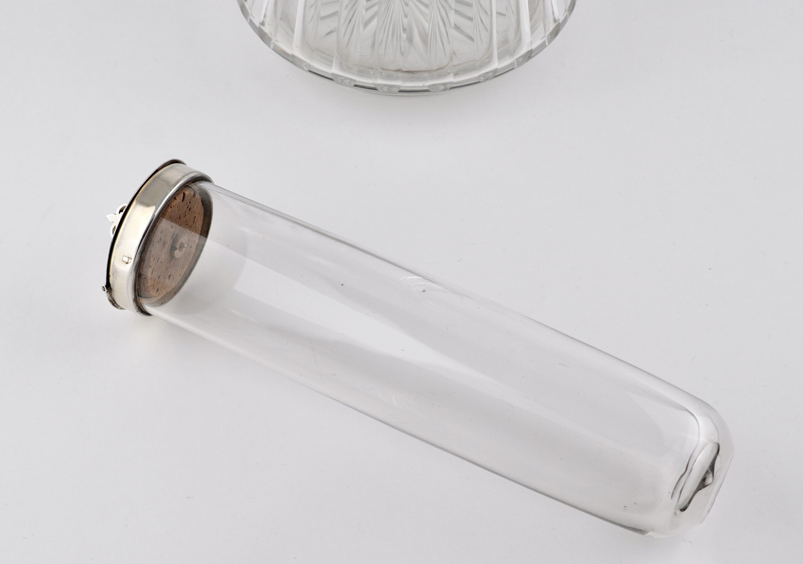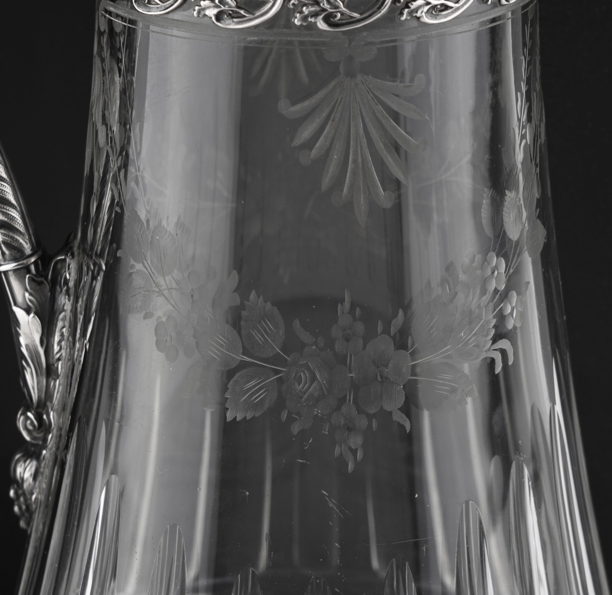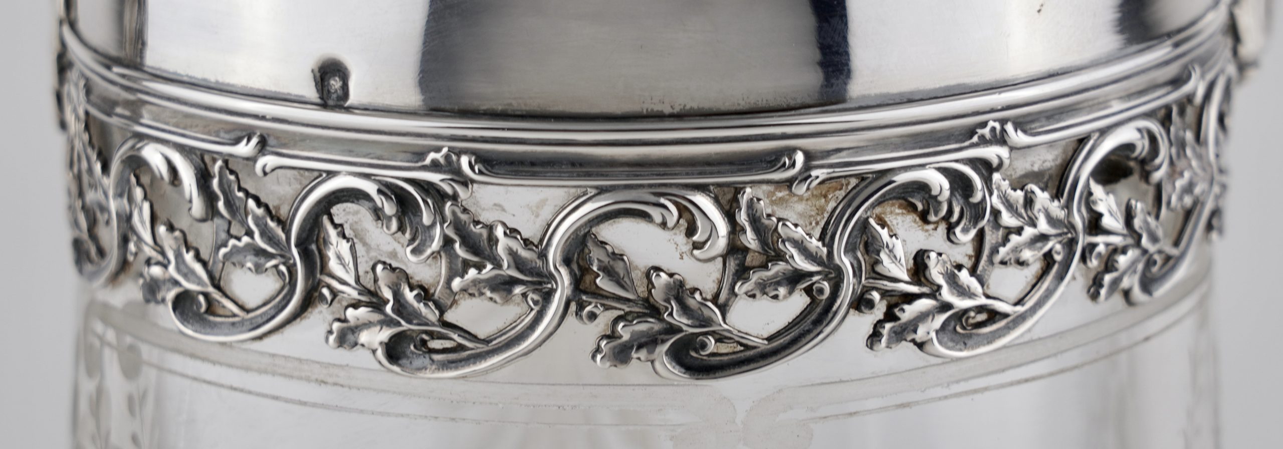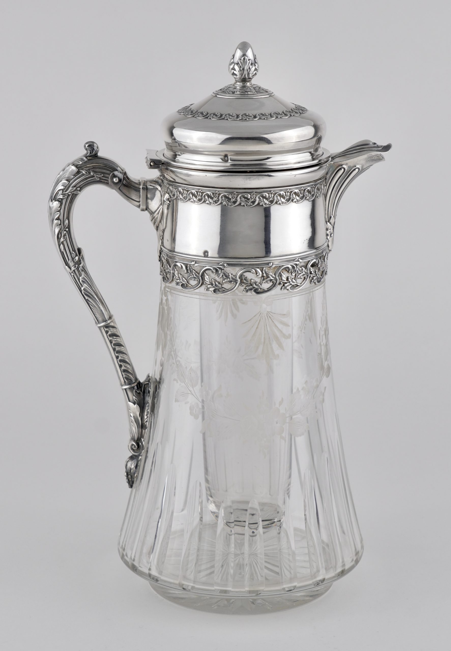 Eine aparte „Kalte Ente“ mit fein graviertem Glas und Silbermontierung, gearbeitet in 950er Silber – im Stil des Louis-seize
