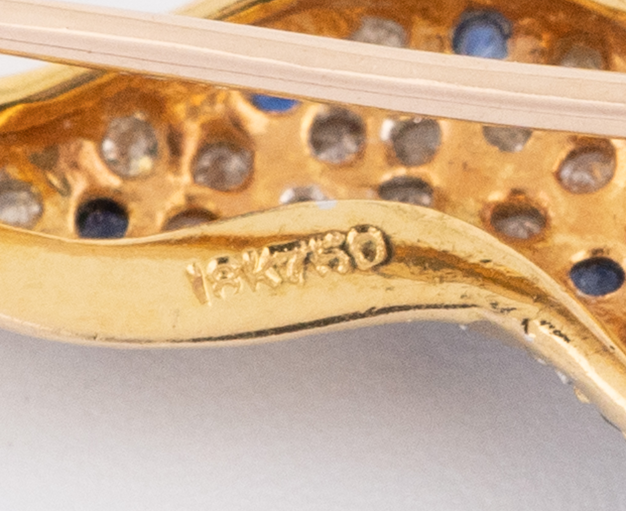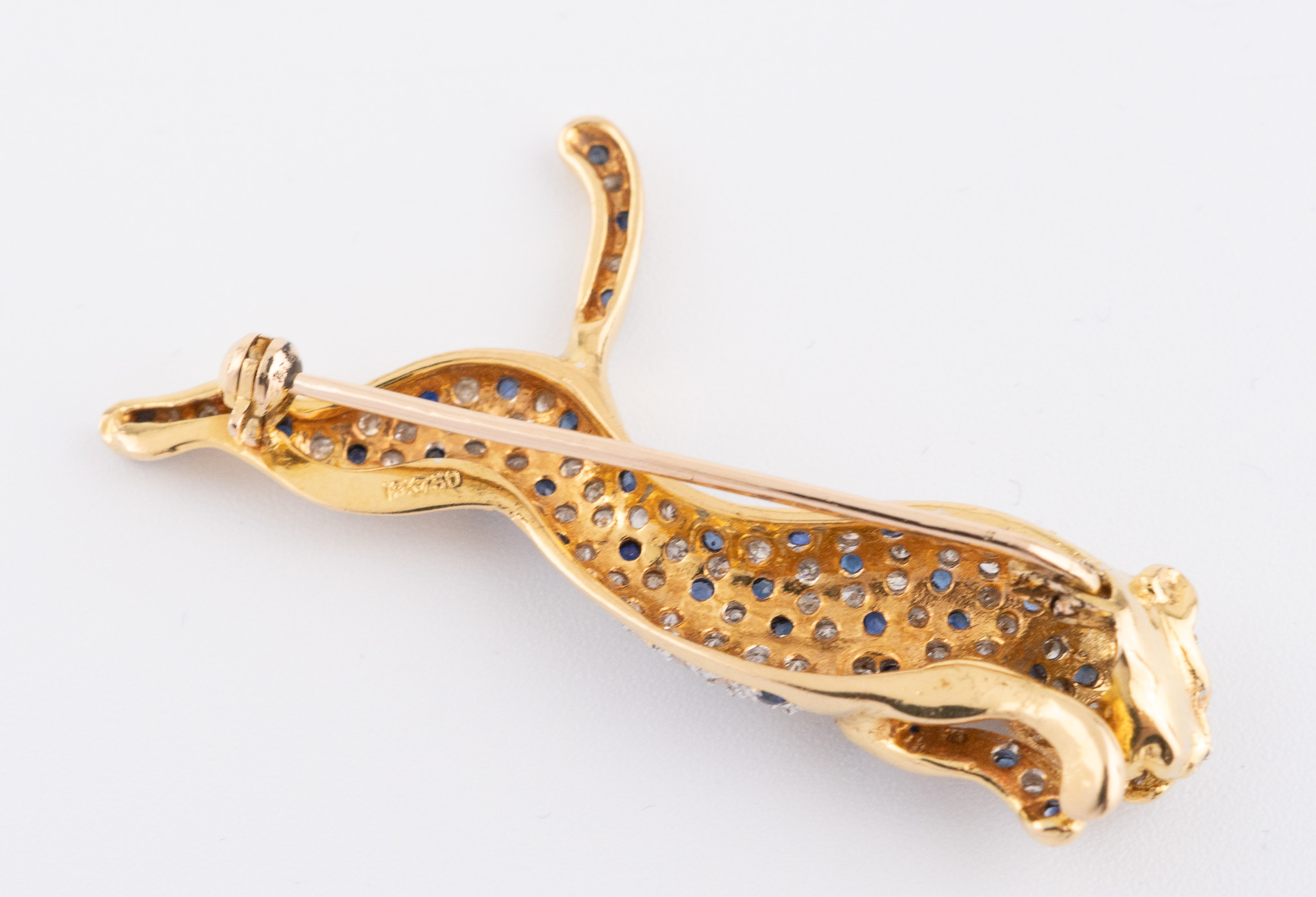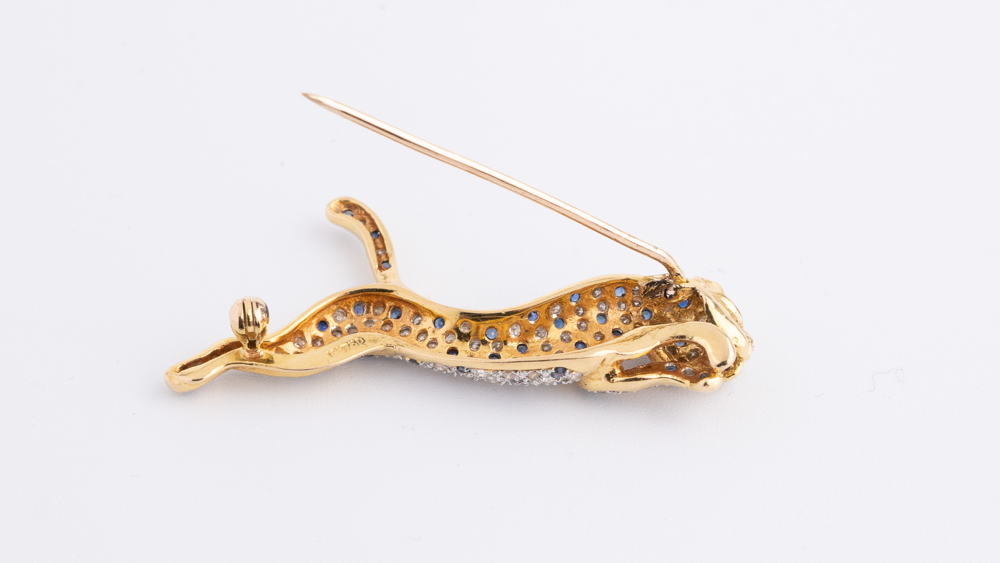 Eine Pantherbrosche aus 18 Karat Gelbgold mit Saphiren und Diamanten