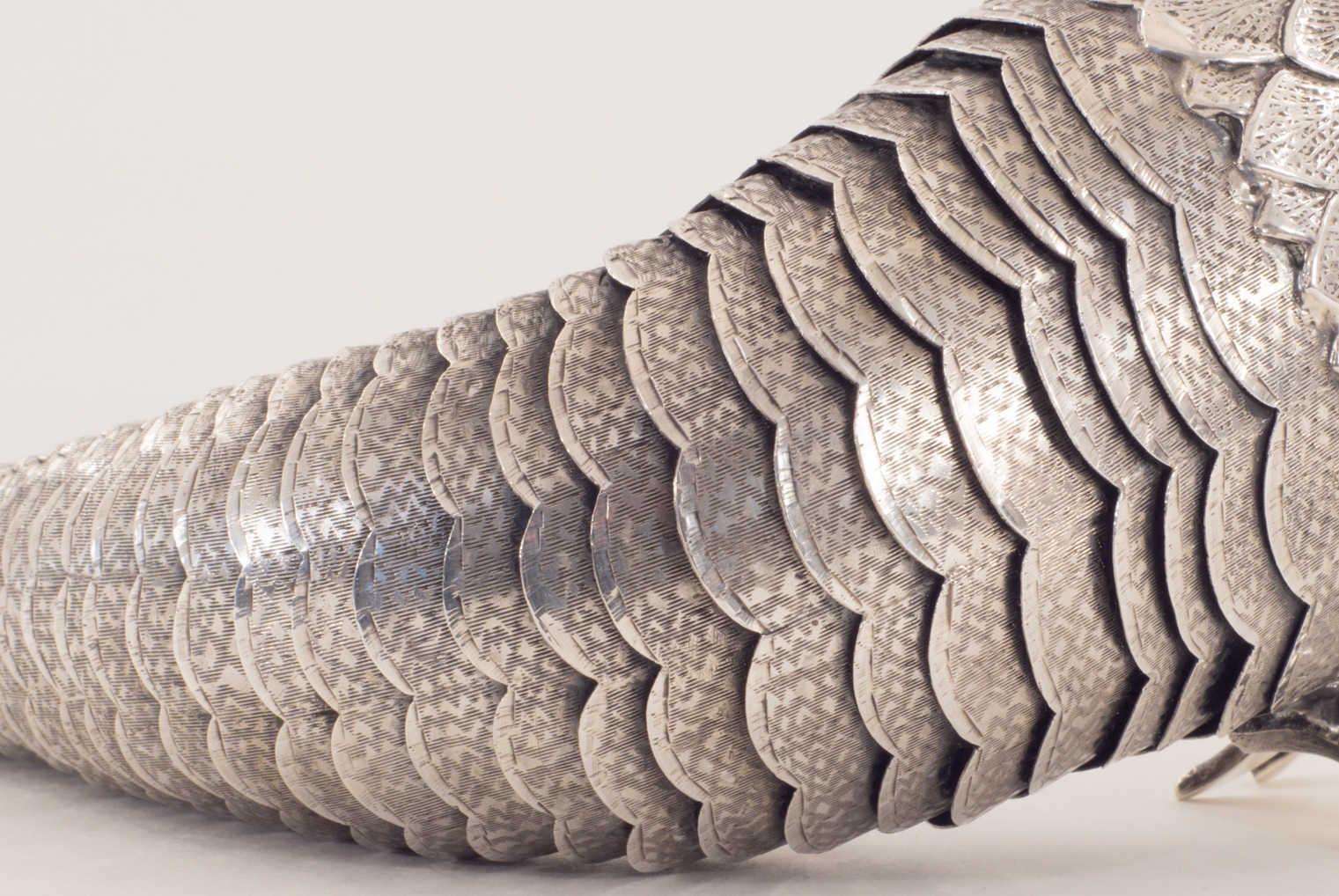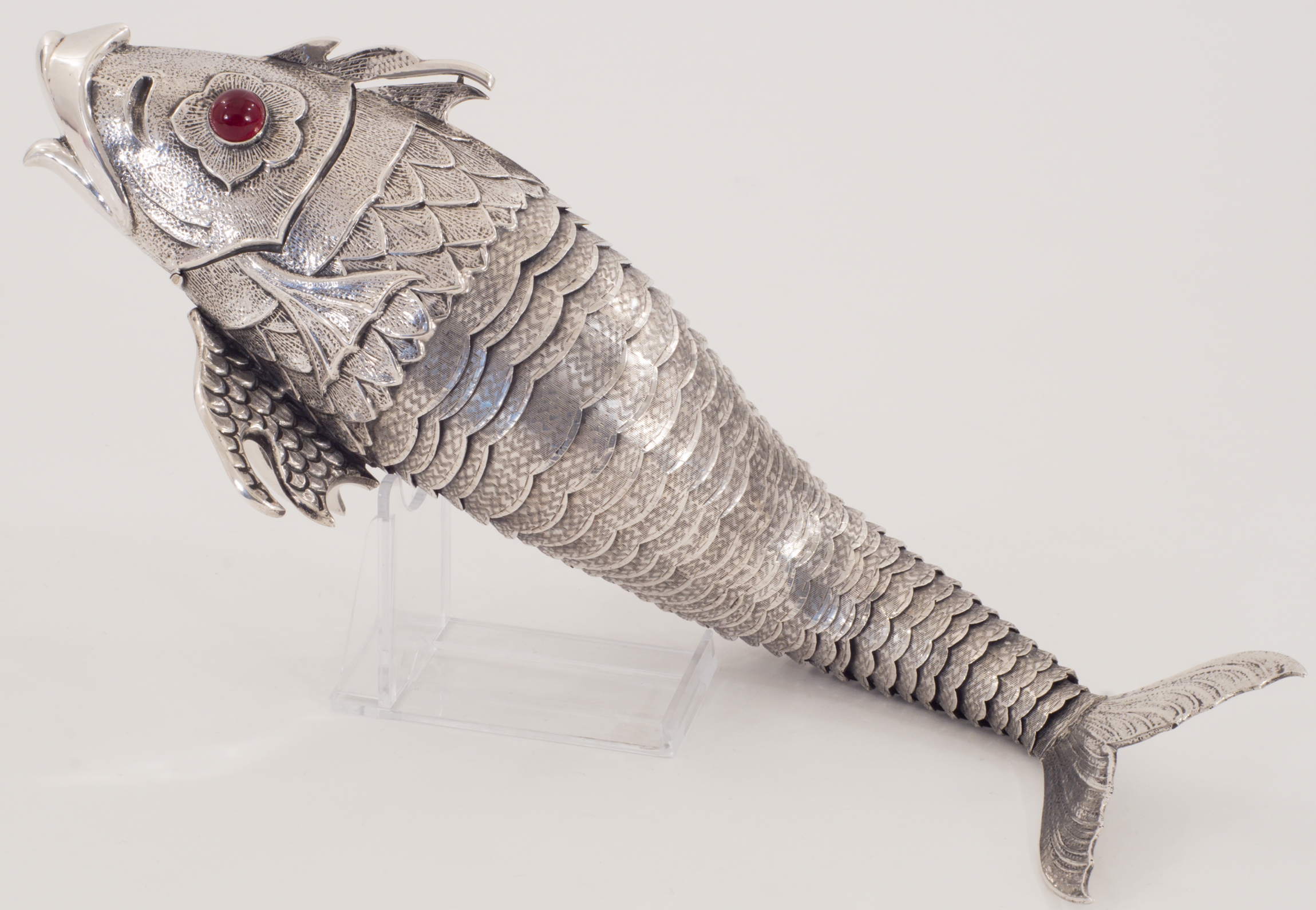 Eine seltene Besamimbüchse in Form eines beweglichen Fisches, 915er Silber