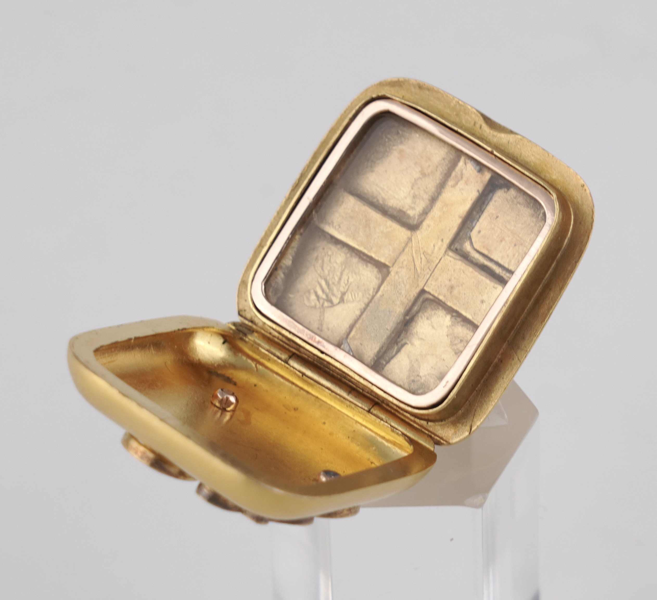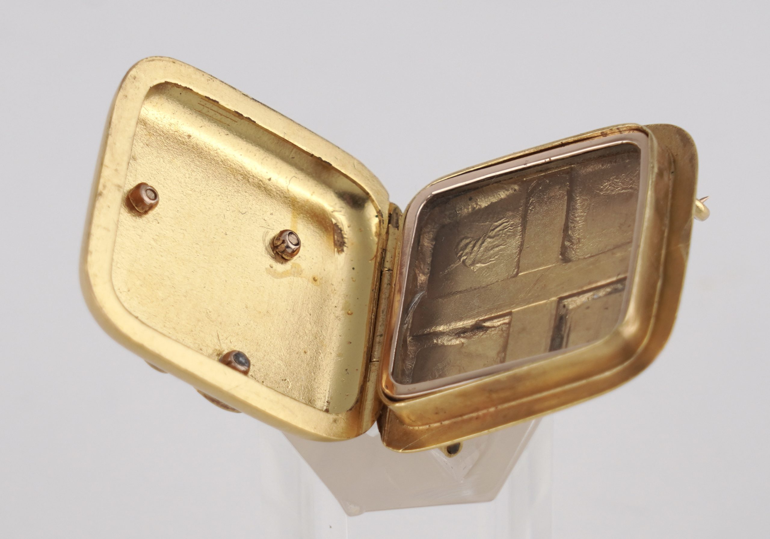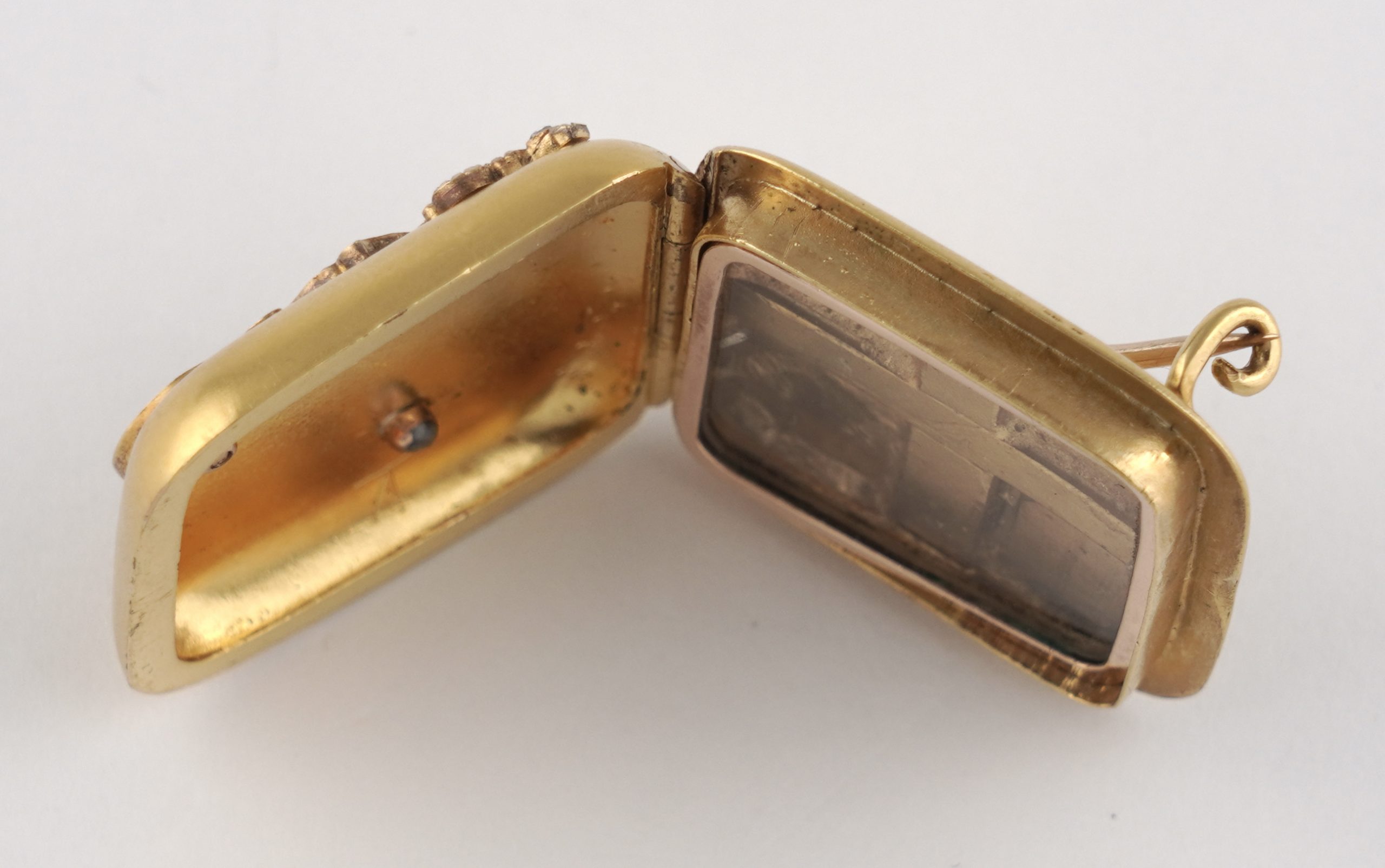 Eine seltene Medallion-Brosche, ein Geschenk des letzten König von Sachsen  Friedrich August III., gearbeitet in 14 (585/1000) Karat Gelbgold mit Feuervergoldung, mattiert.