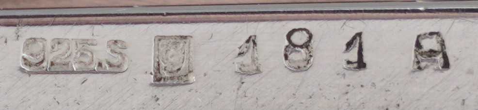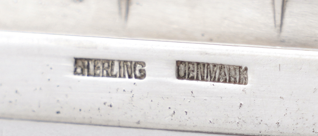Marken: Georg Jensen Punze (1933 bis 1944), 925S, Sterlingsilber, Dänemark und „181A“.