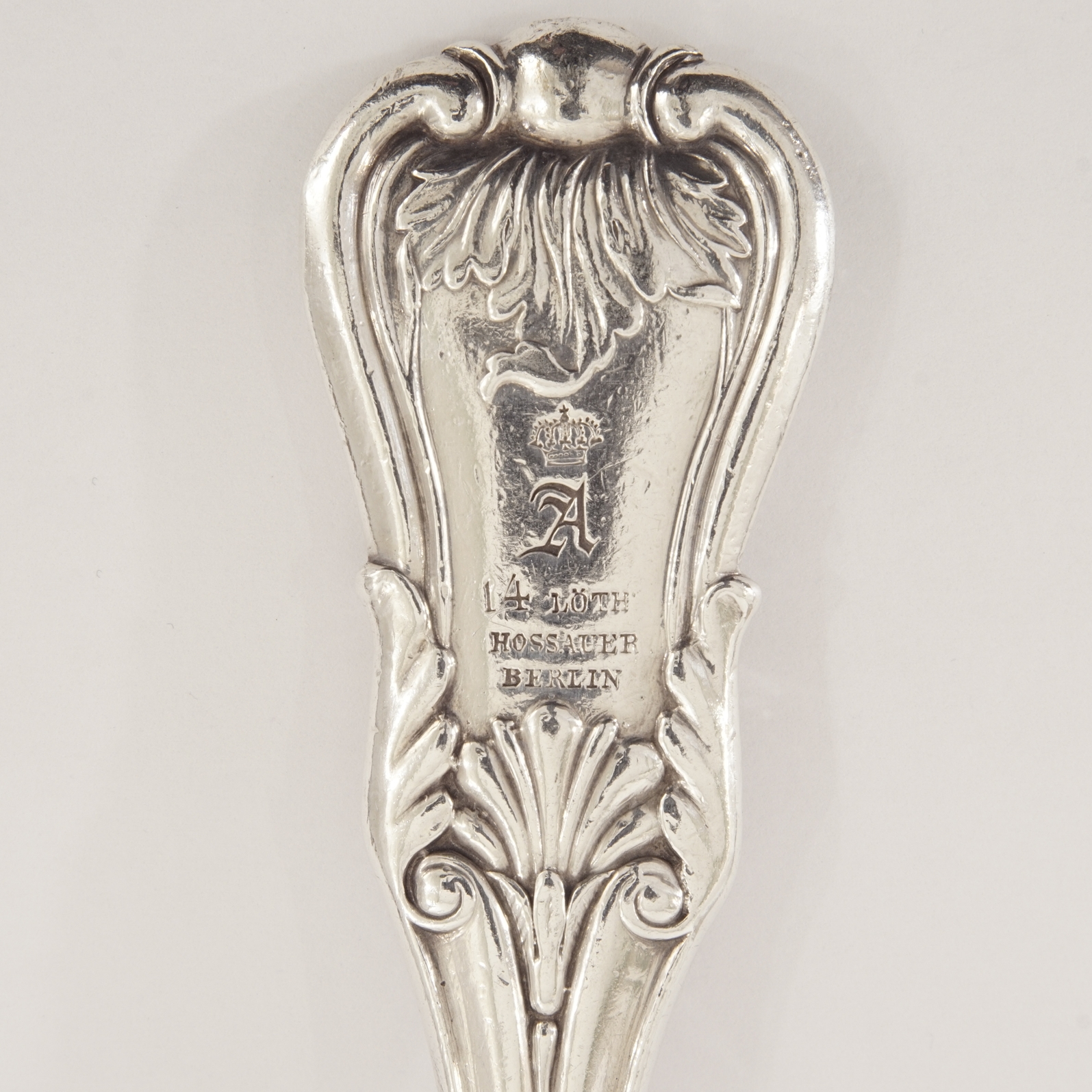 Schauseitig mit dem bekrönten Wappen des Hohen Orden vom Schwarzen Adler, Gabeln Rückseitig zusätzlich mit dem bekrönten Besitzermonogramm „A“.