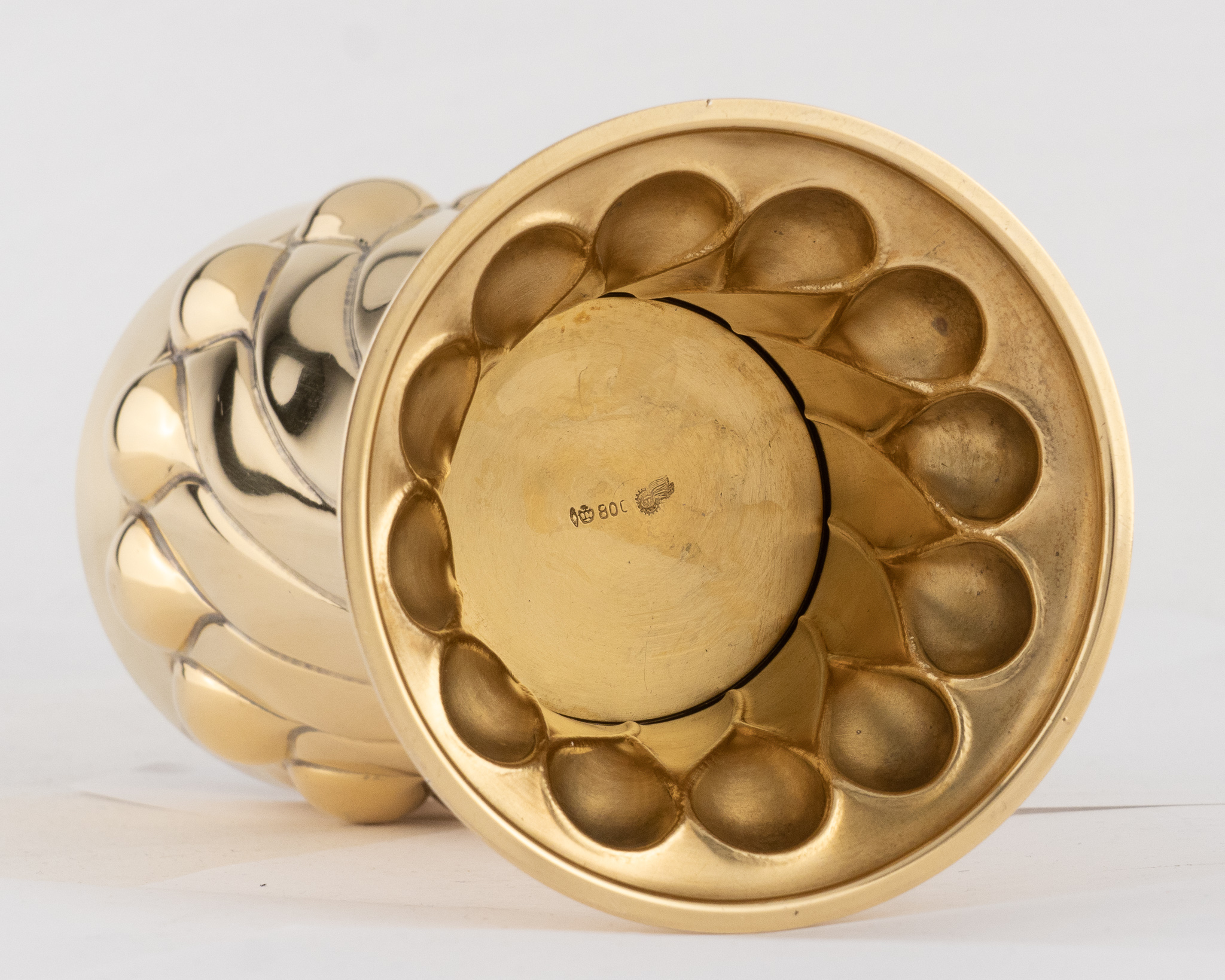 Ein feiner Berliner Jugendstil-Buckelbecher, gearbeitet in 800/1000 Silber und vergoldet.