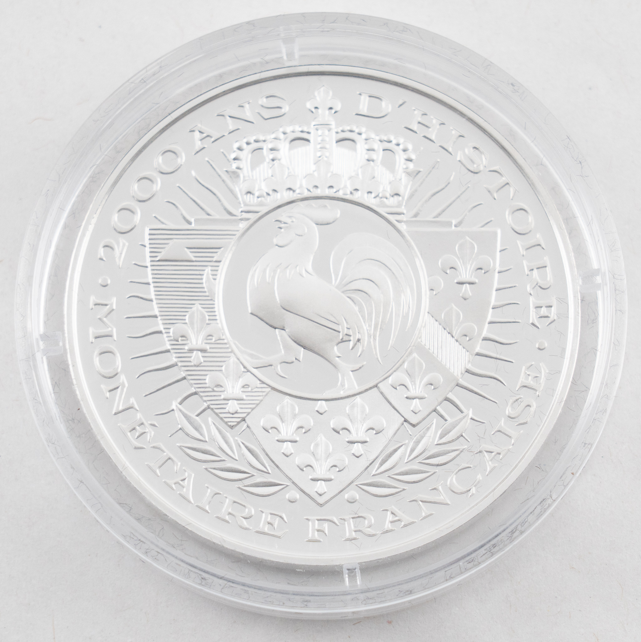 Ein Satz von 29 Medaillen, gearbeitet in 999/1000 Silber, der Serie „2000 ans d’histoire monétaire française“ ( 2000 Jahre französische Währungsgeschichte) mit Motiven französischer Währungen, vom goldenen Stater bis zur Euro Einführung.