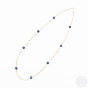 Ein Collier in 14 Karat Gelbgold mit acht Lapislazuli-Kugeln