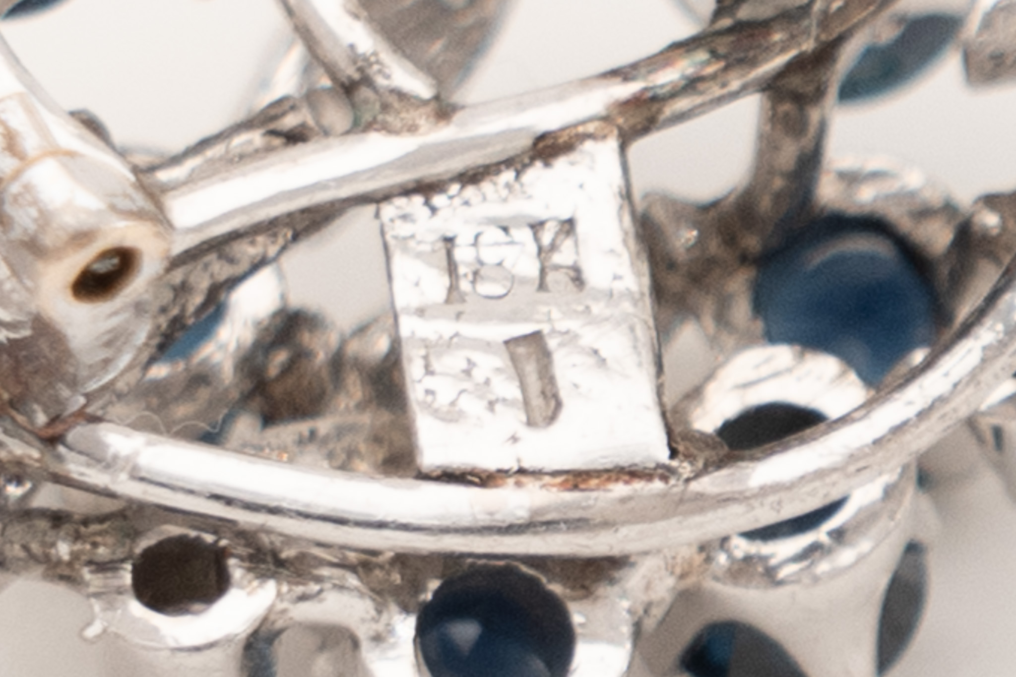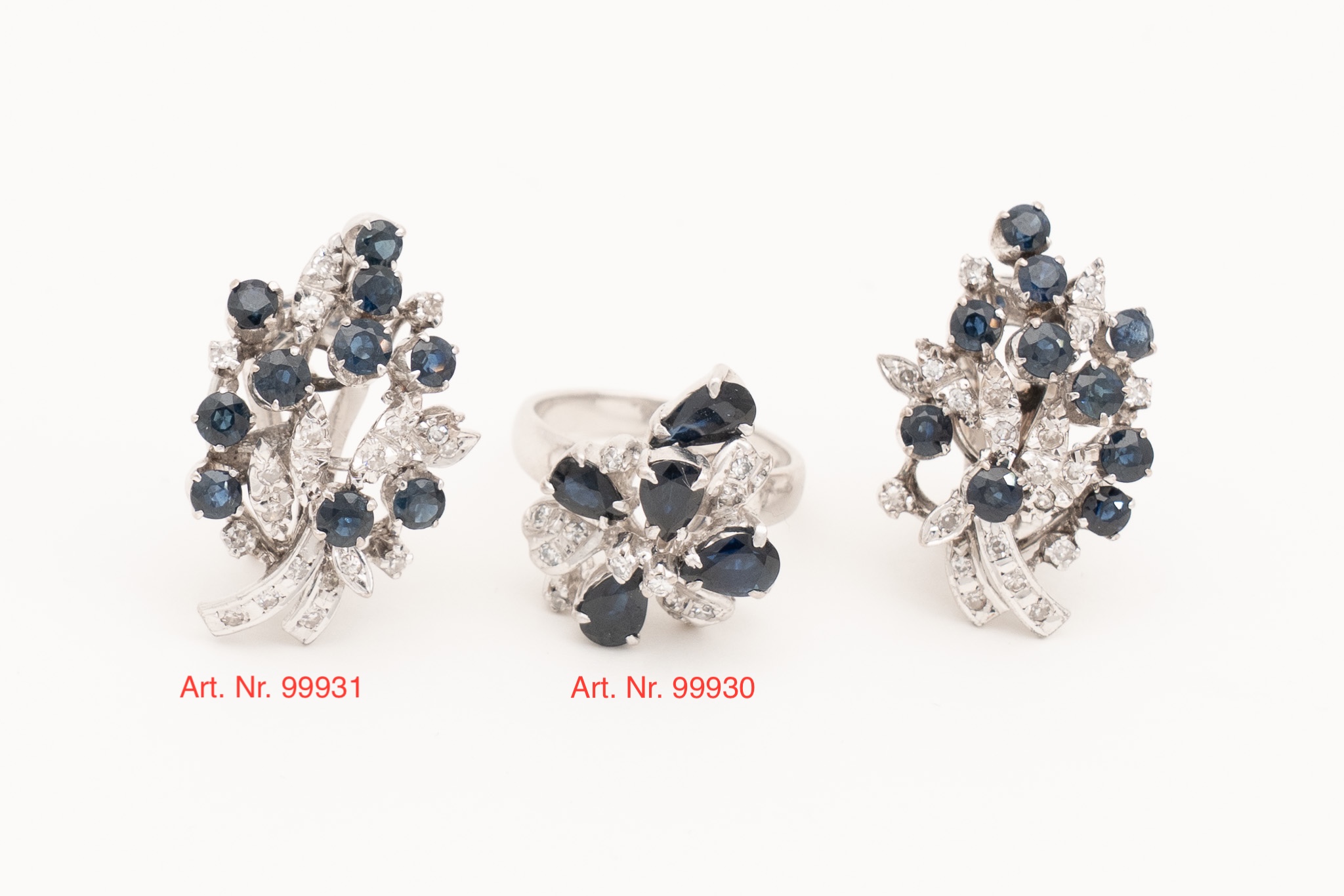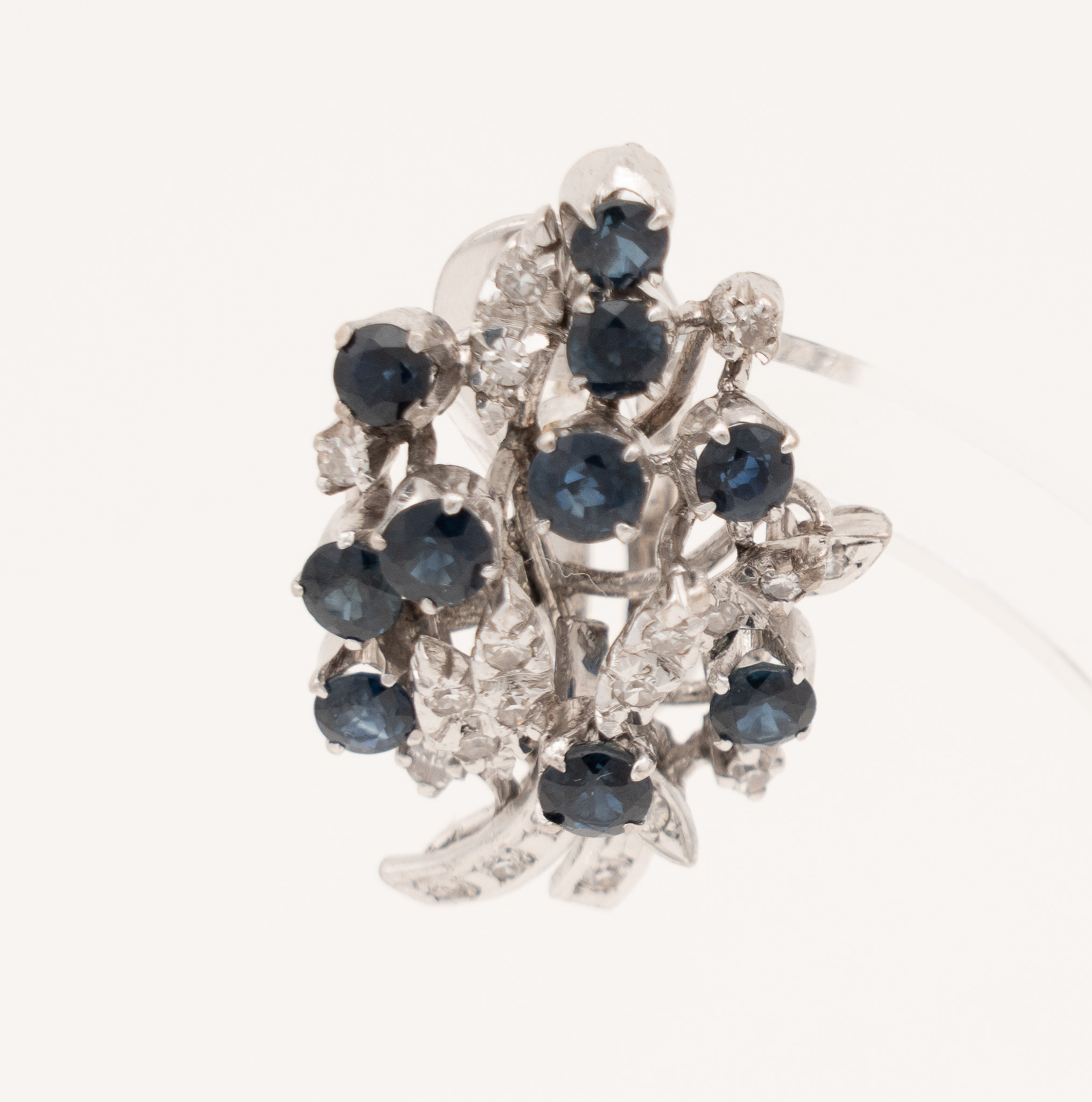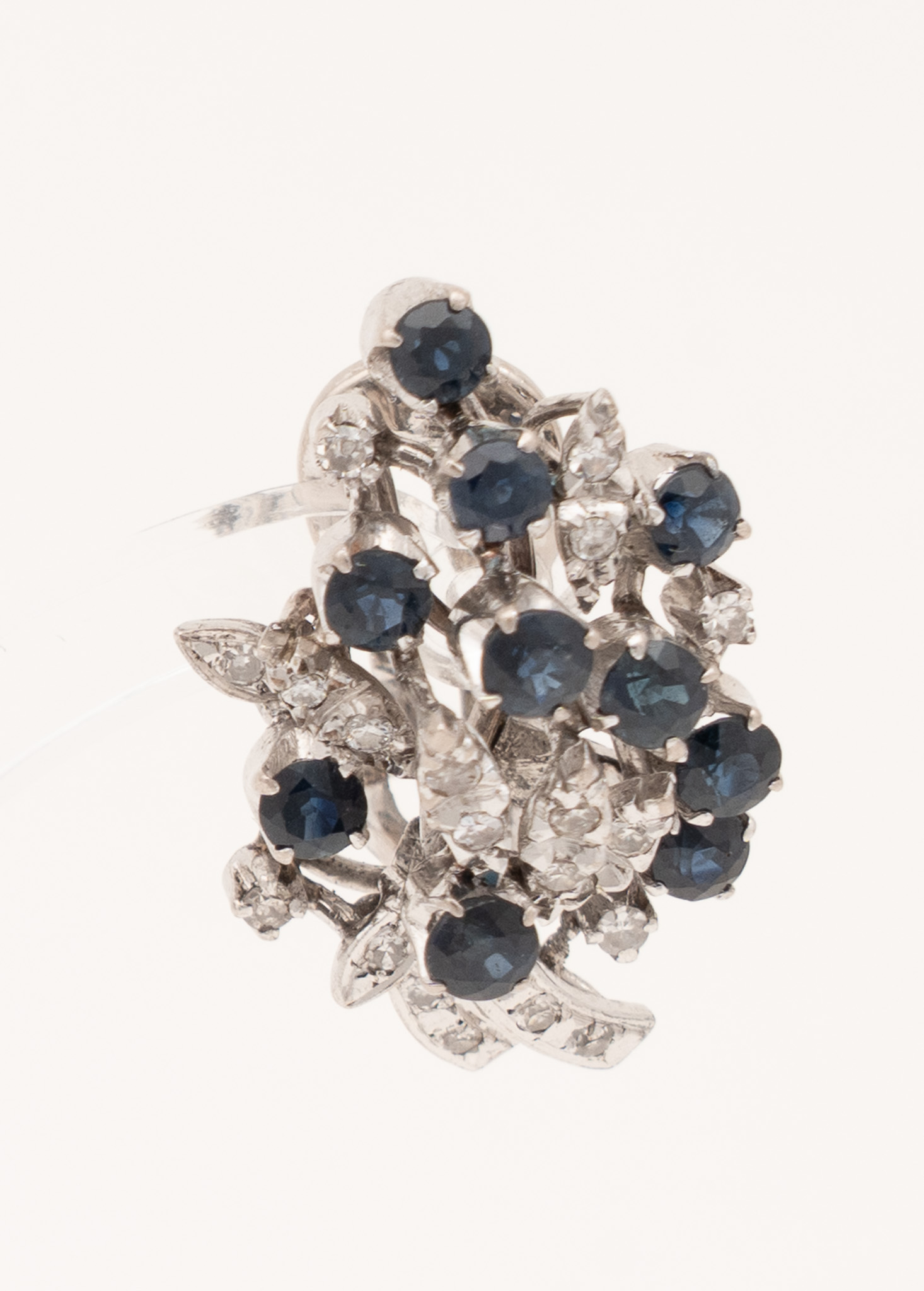 Ein Paar Ohrstecker in 18 Karat Weißgold (750/1000) mit zusammen 20 Saphiren von zusammen ca. 2,4 ct. und kleinen Diamanten. Um 1970.
