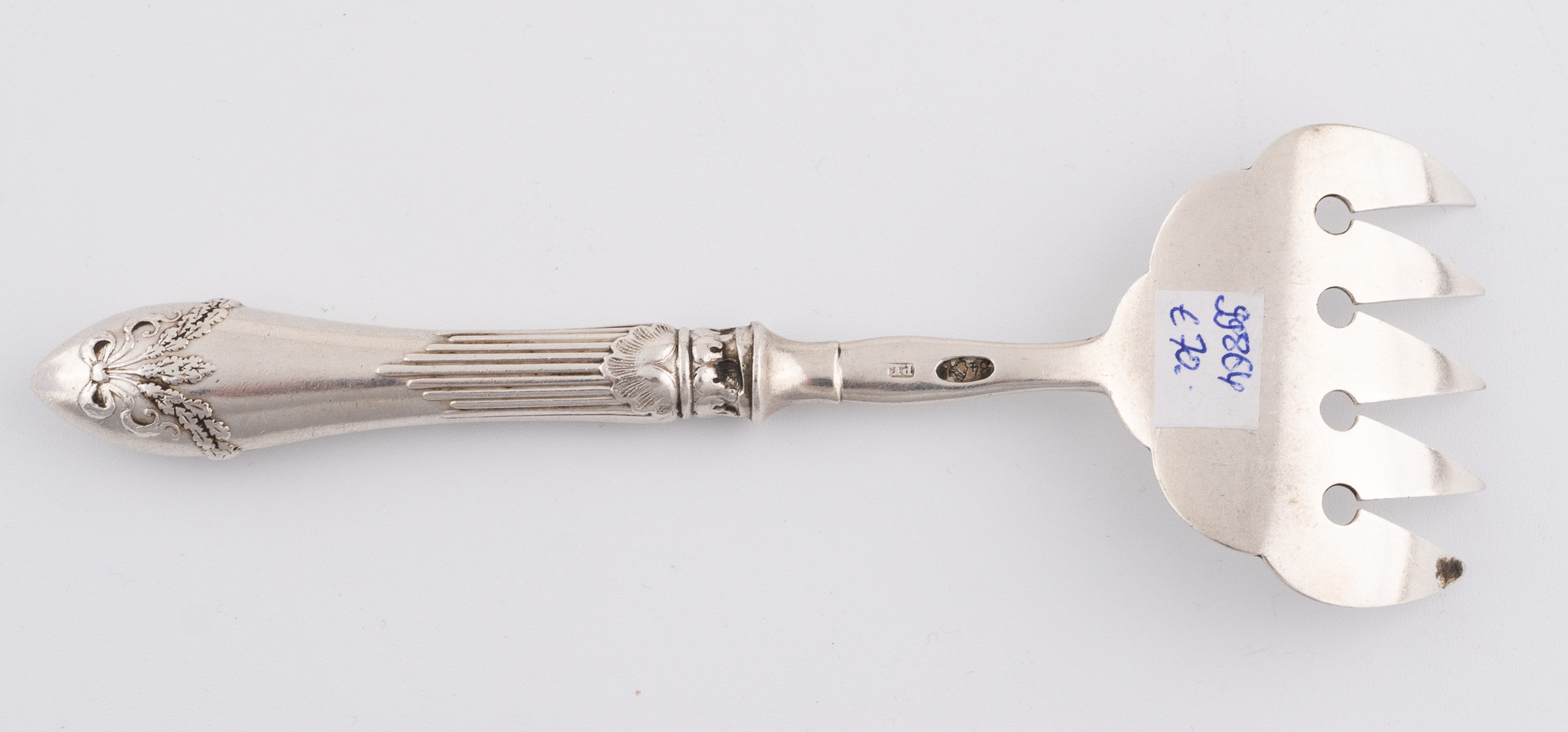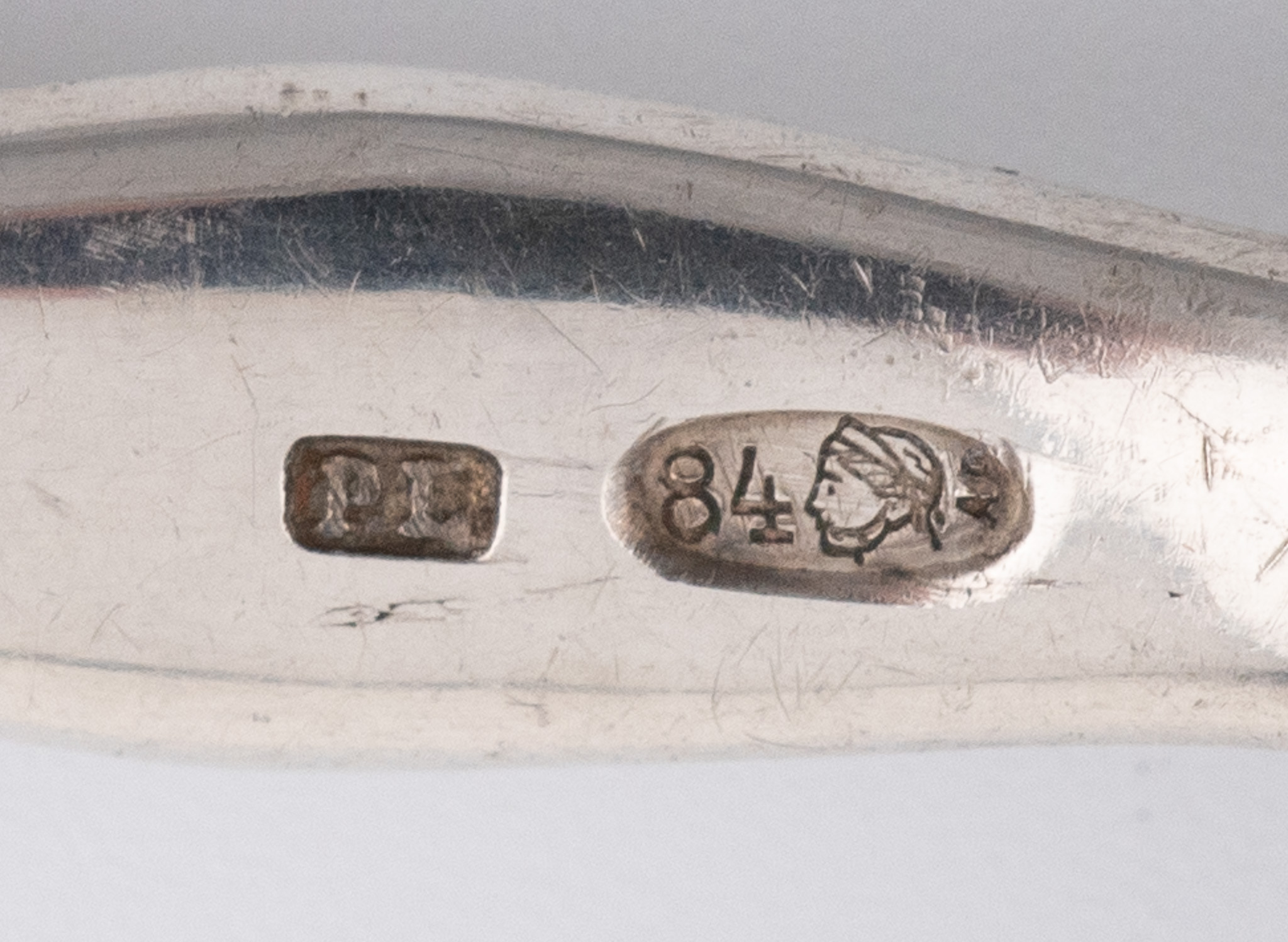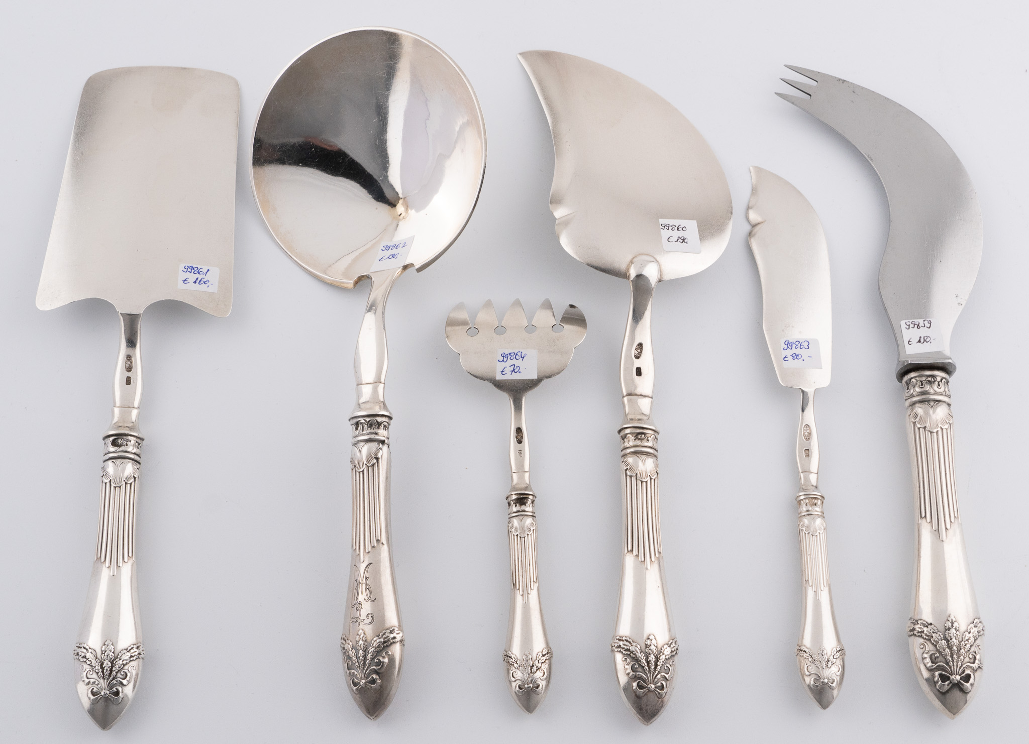 Sechs seltene russische Vorlegeteile Kiew/St. Petersburg 1896/1907 in 84er Zolotniki im Louis-seize Stil