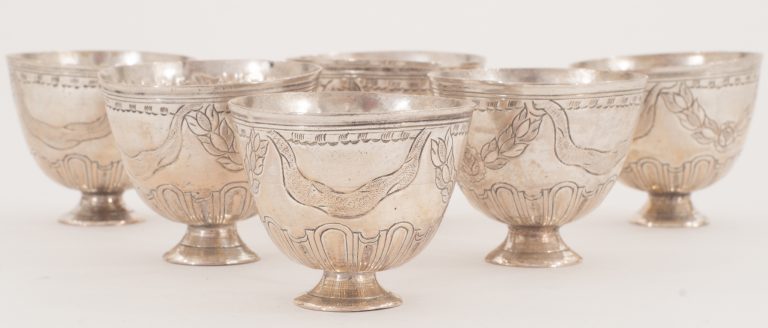Ein Satz von 6 Eierbechern für Gänseeier in Silber - VERKAUFT