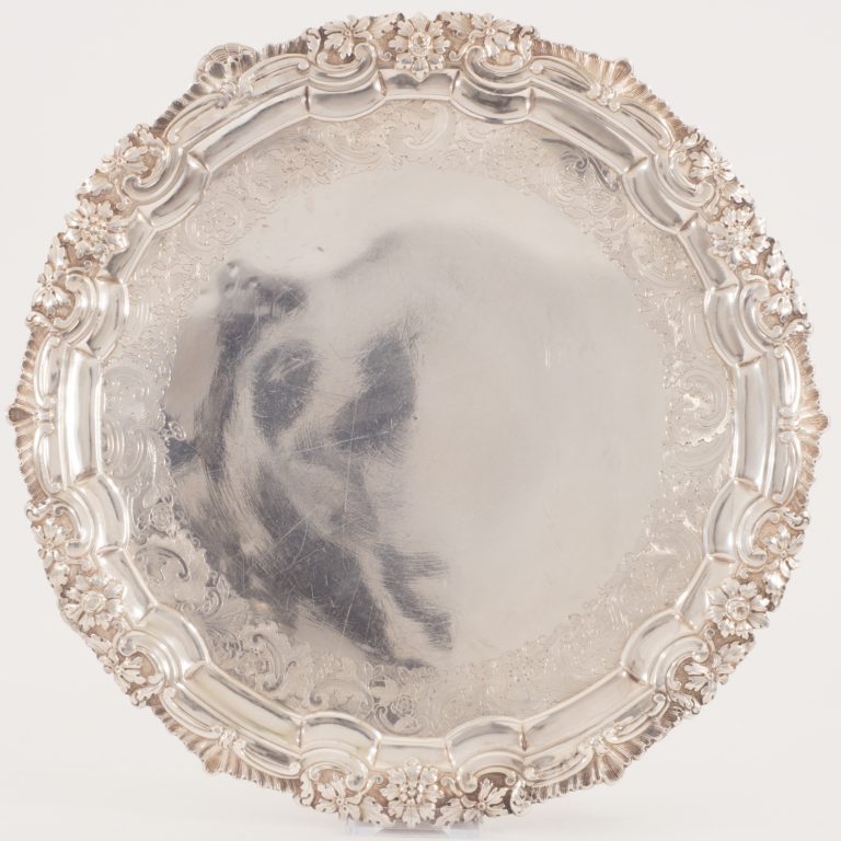 Eine silberne Tortenplatte auf vier Füßen im Stil des Rokoko - VERKAUFT