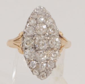 Ein beeindruckender Marquise Ring mit 20 Altschliff-Diamanten, 18 Karat Gelbgold - VERKAUFT